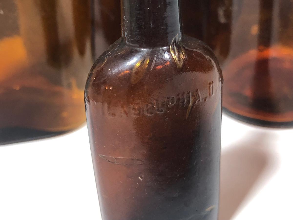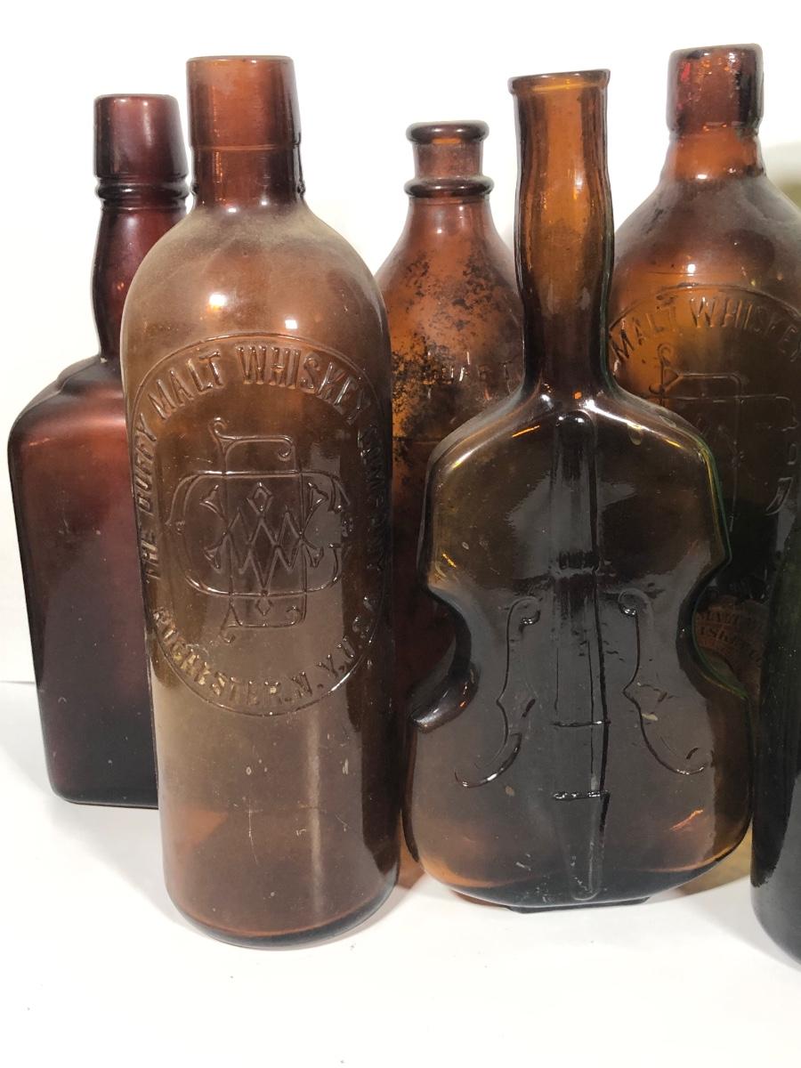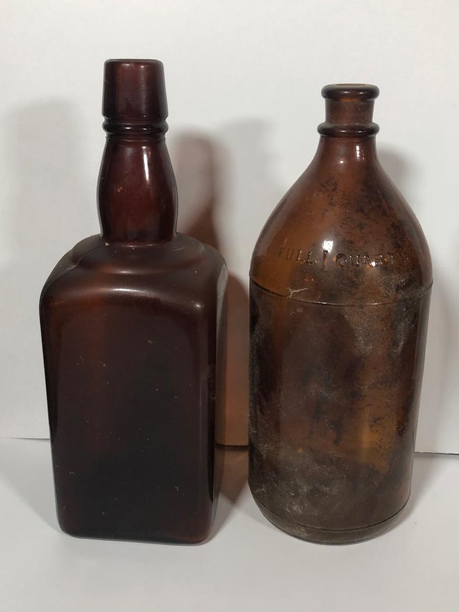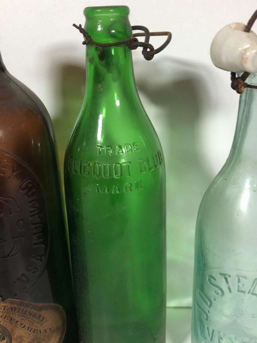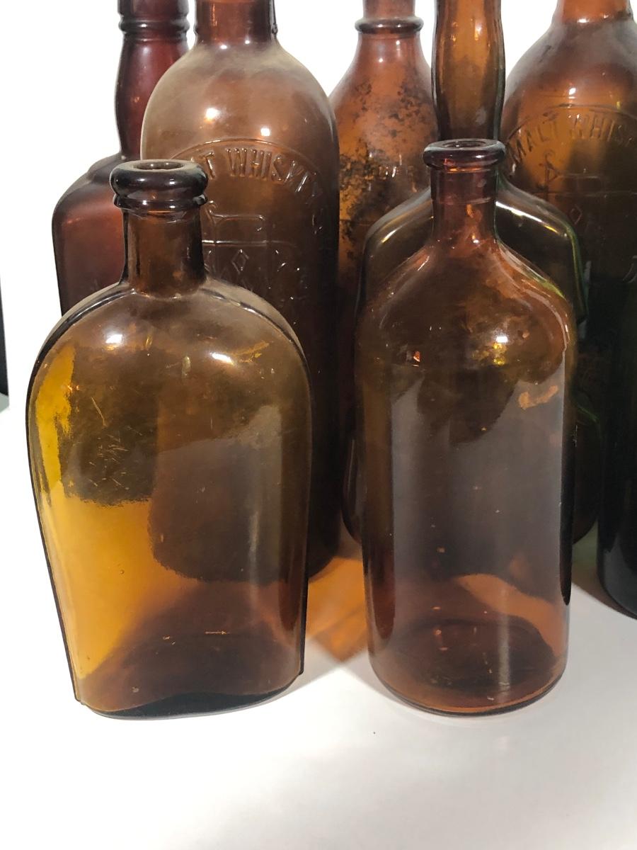 LOT 12L: Vintage Blue, Green & Brown Glass Bottles