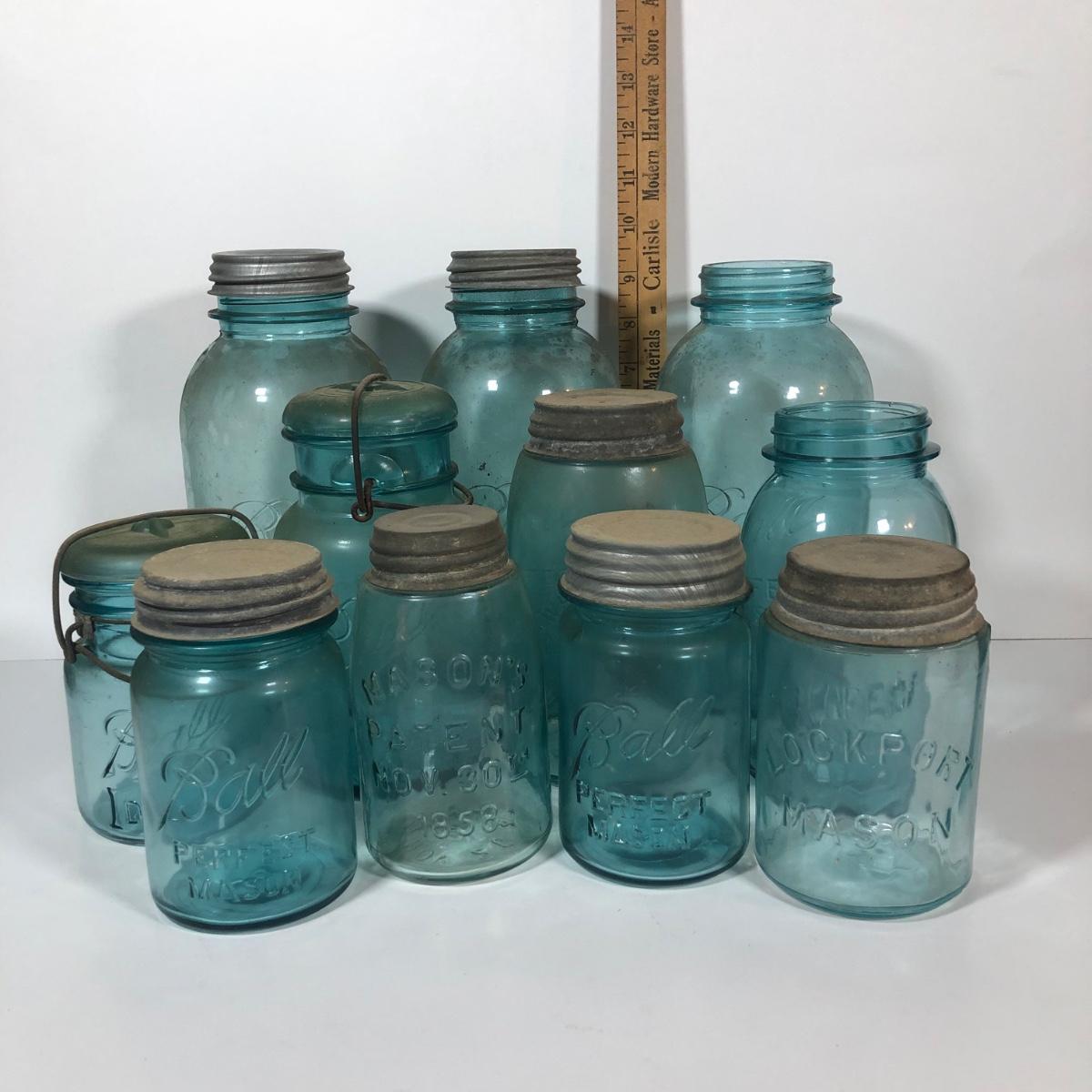 LOT 14L: Vintage Blue Mason & Canning Jars - Ball, Lockport & More