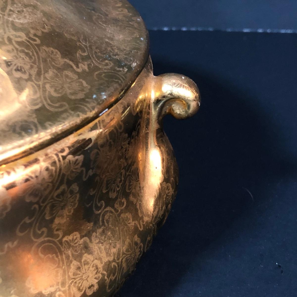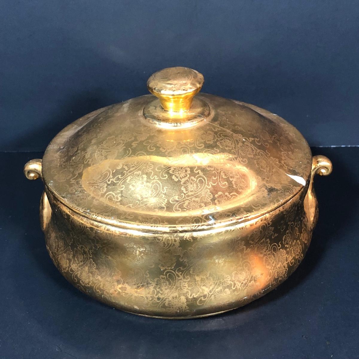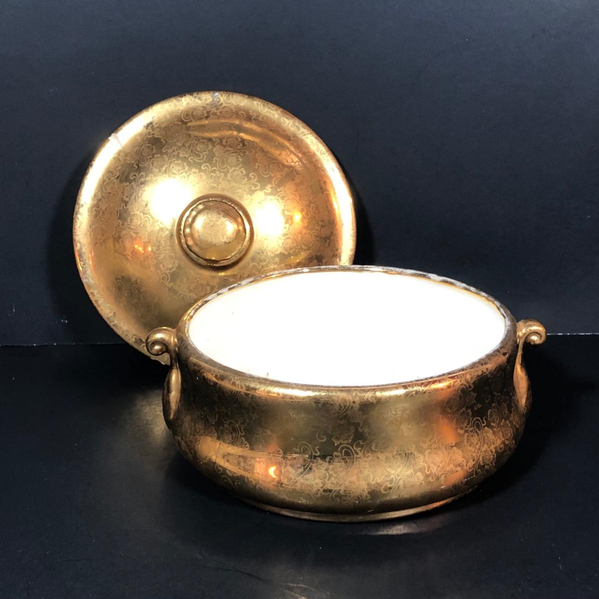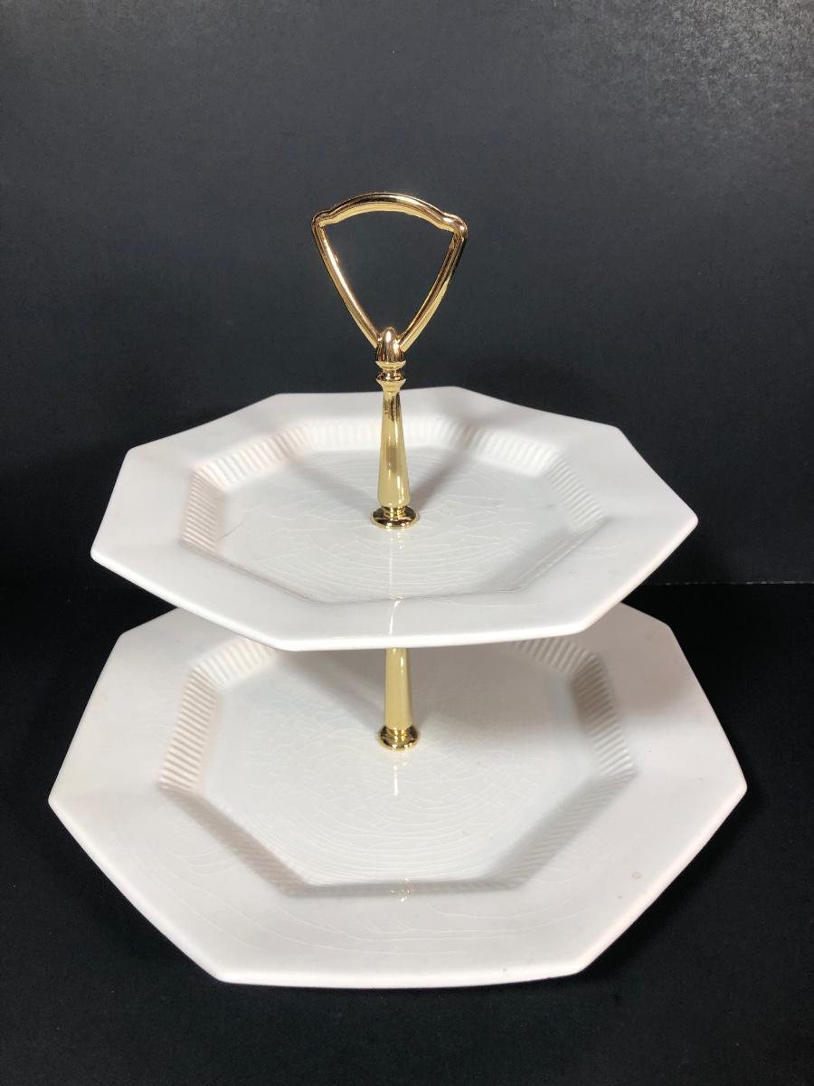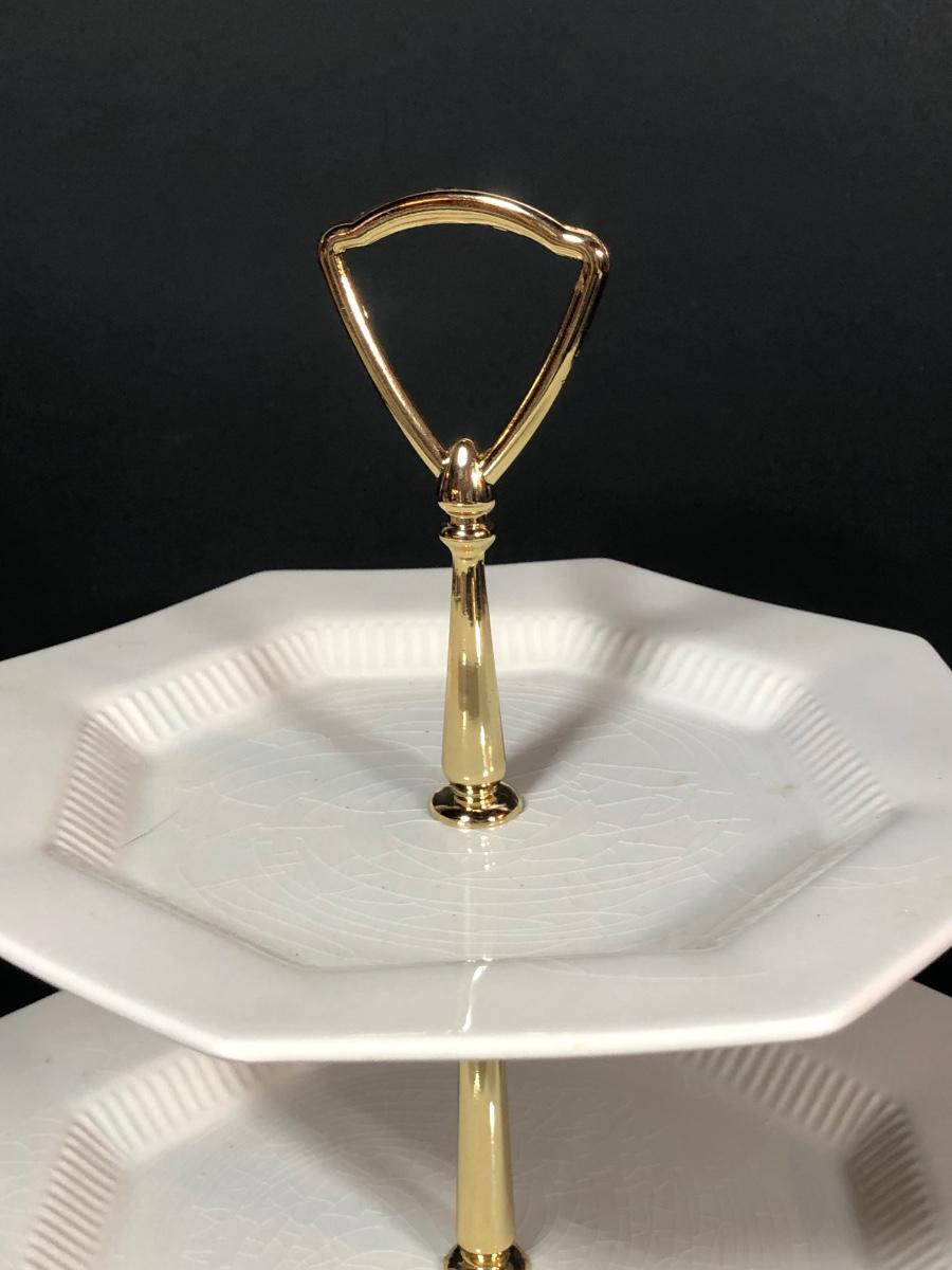 LOT 17L: Vintage Gold Rim Cocktail Glasses, Independence Ironstone Interpace Tiered Tray, Tall Teapot, Lady Hamilton 22kt Gold Painted Serving Dish & More