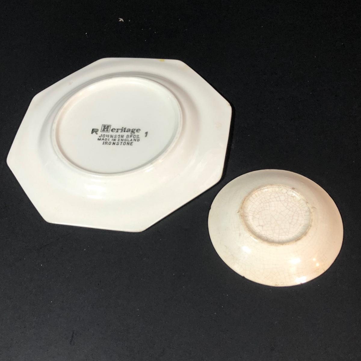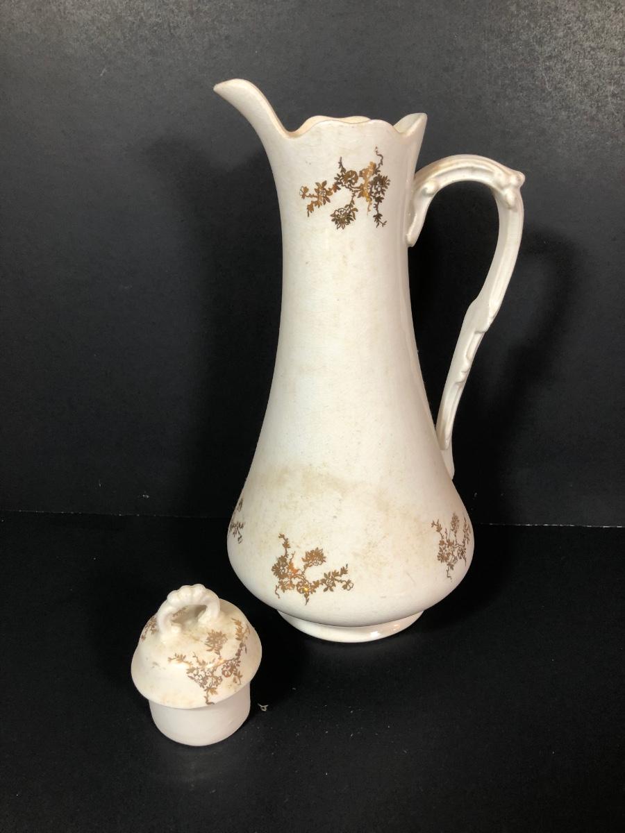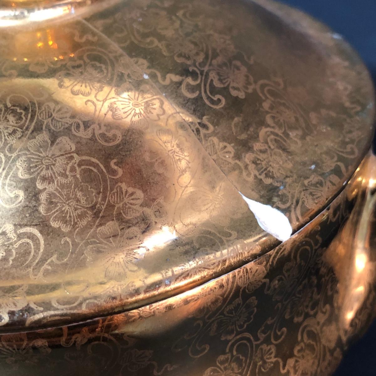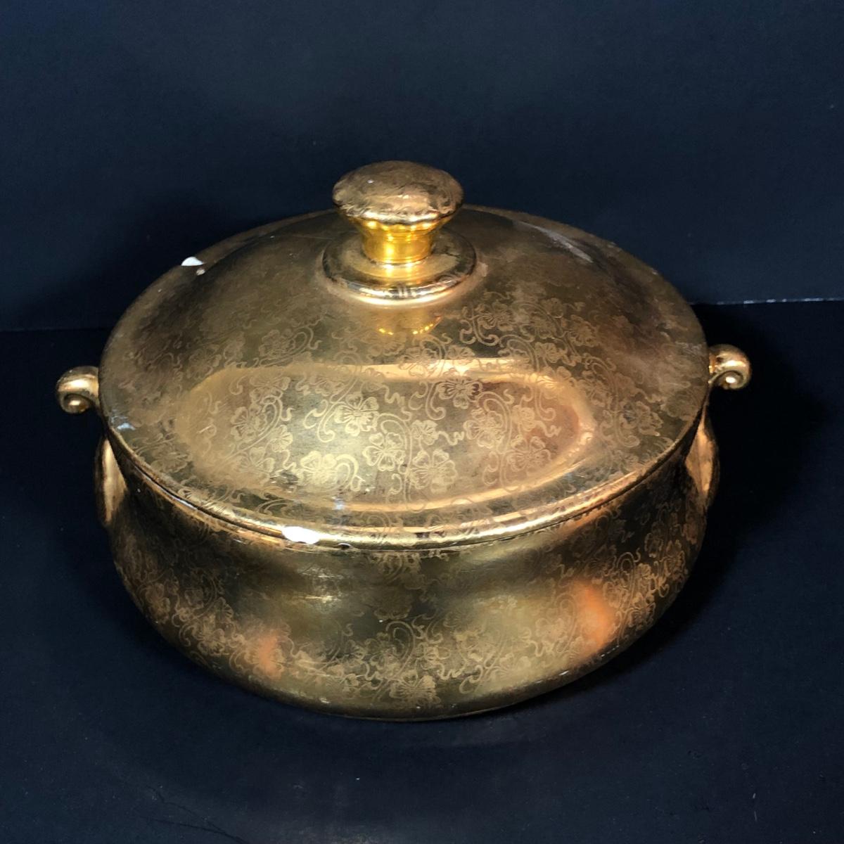LOT 17L: Vintage Gold Rim Cocktail Glasses, Independence Ironstone Interpace Tiered Tray, Tall Teapot, Lady Hamilton 22kt Gold Painted Serving Dish & More