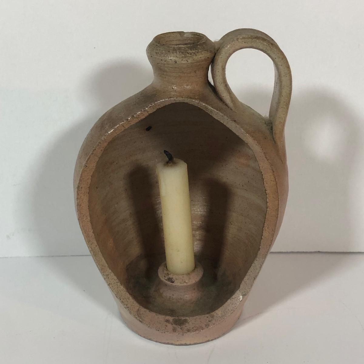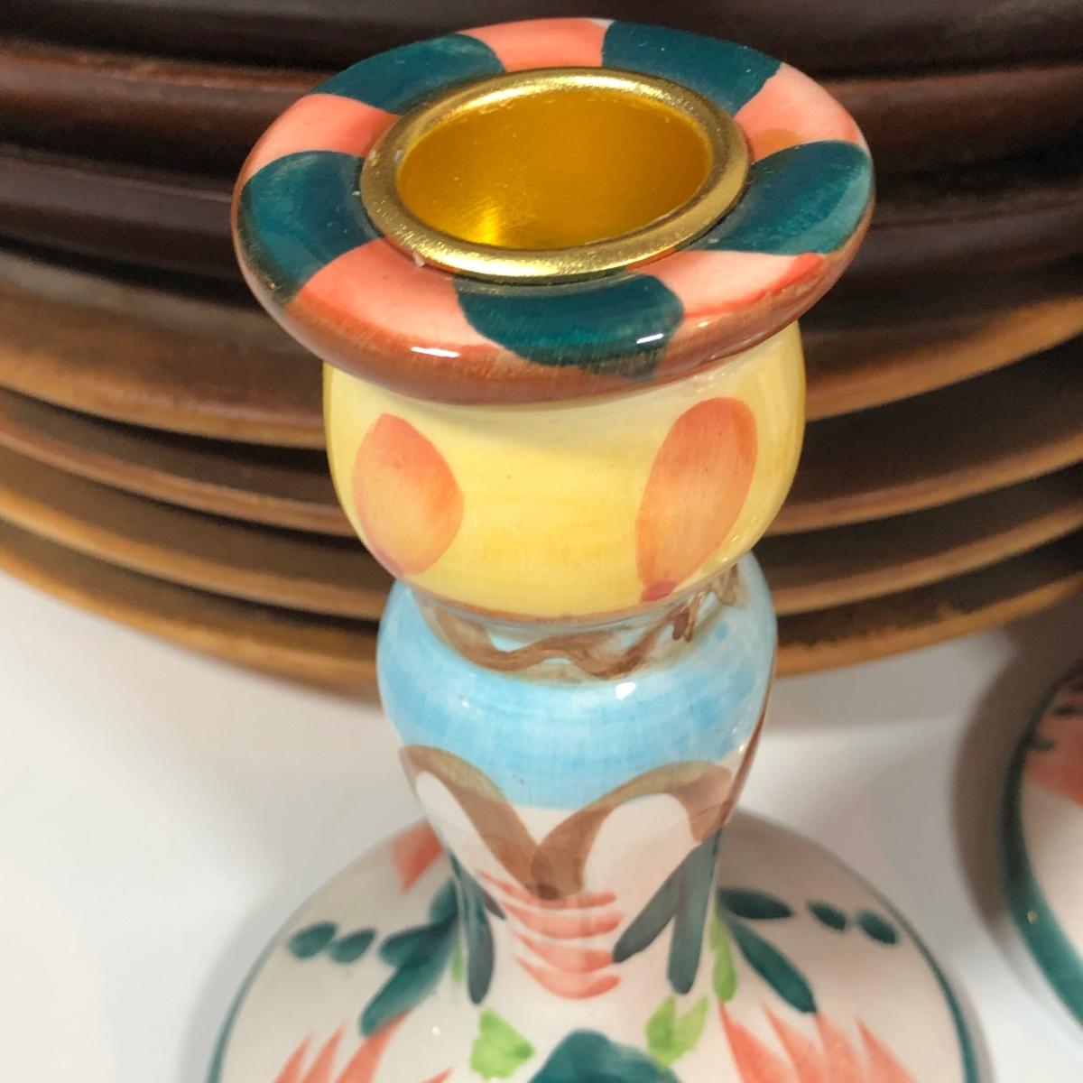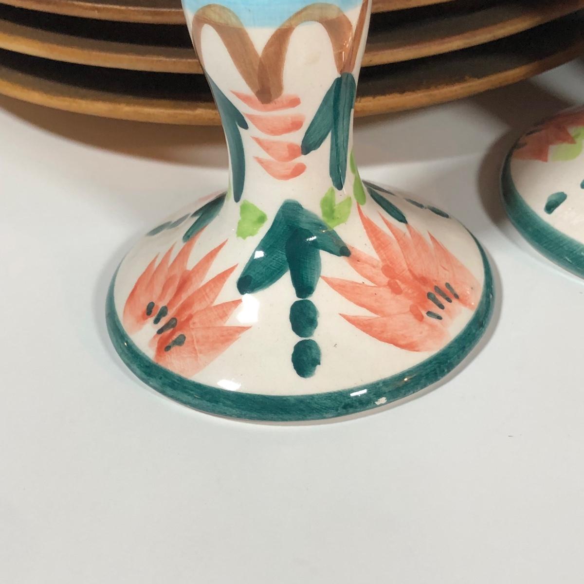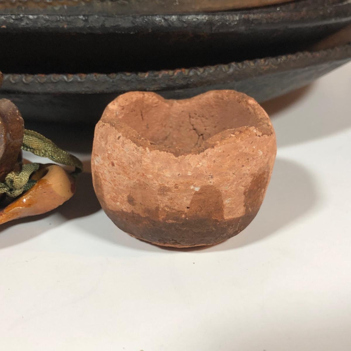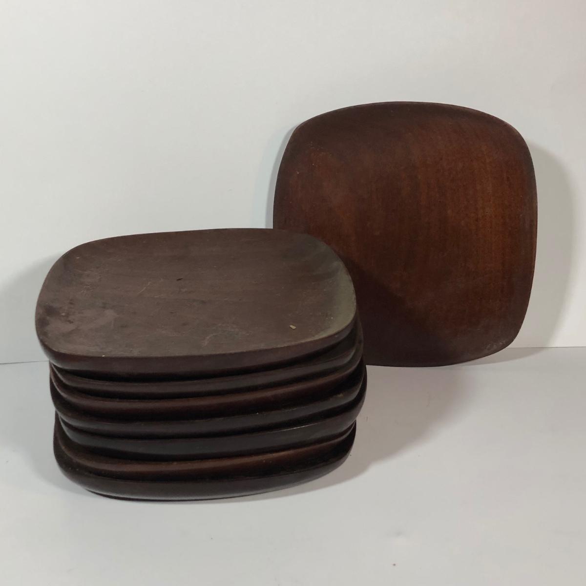 LOT 18L: Vintage Earthy Kitchen Collection - Stangl Pottery Mini Jug Candle Holder, Caribicraft Solid Mahogany Wooden Plates, Mini Pottery, Wooden Cup Made in USSR & More