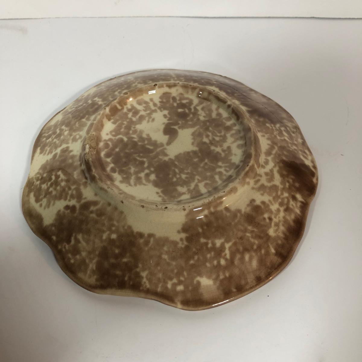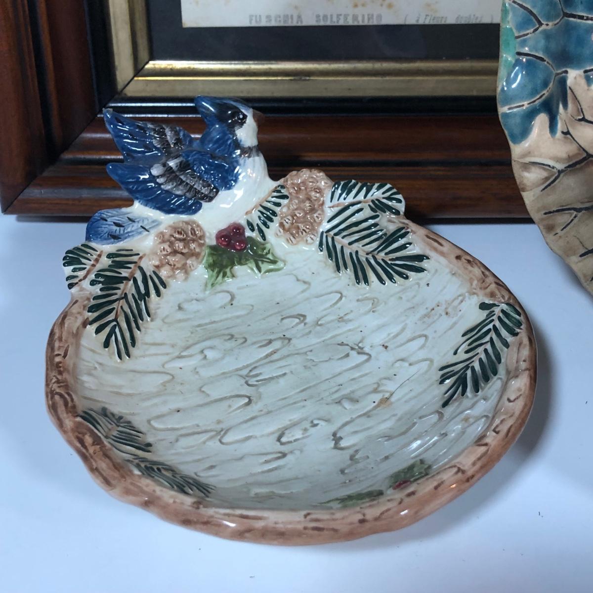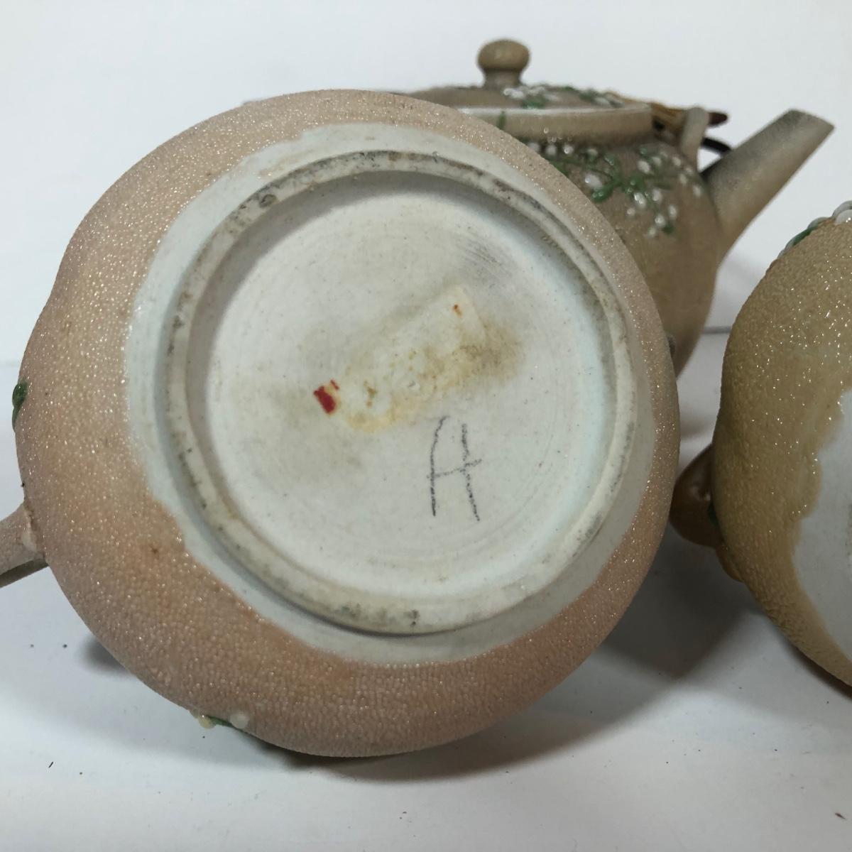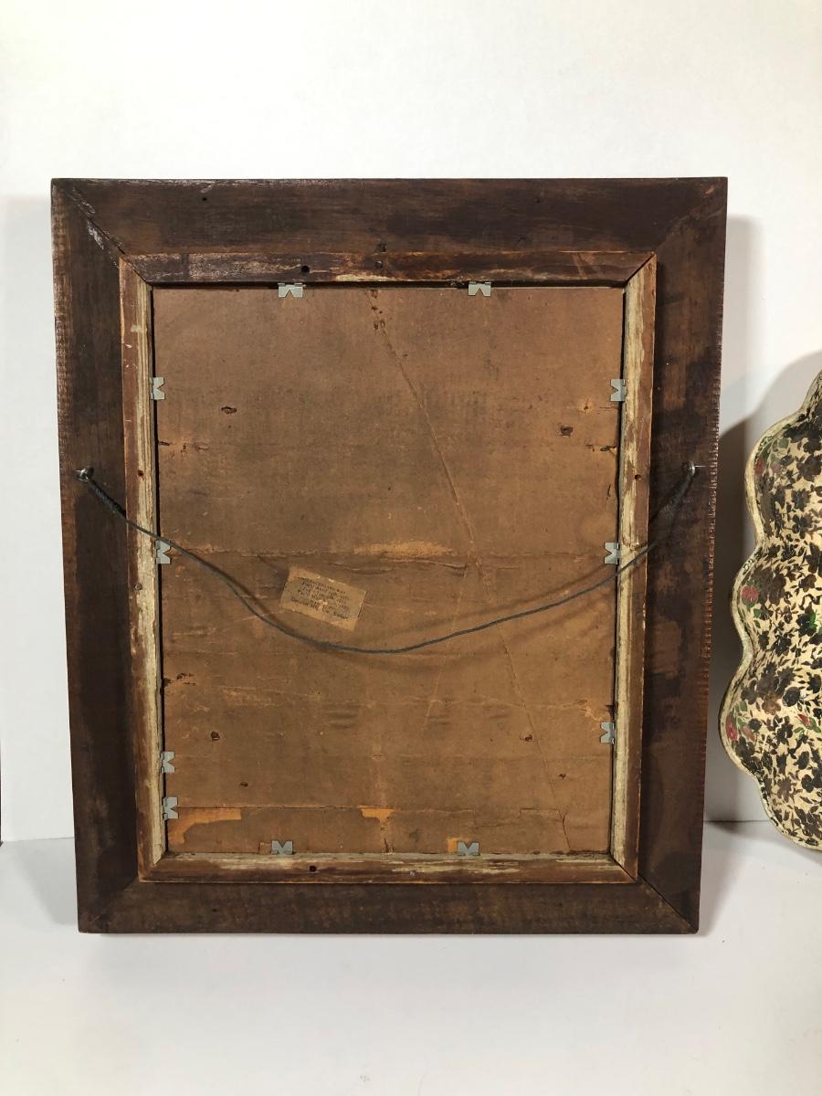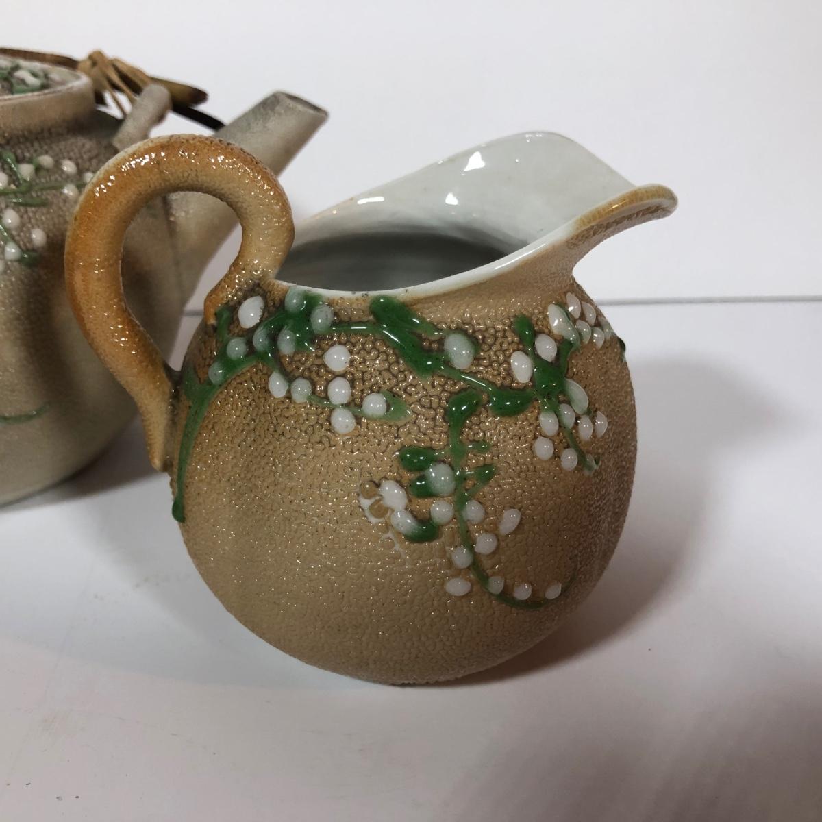 LOT 20L: Antique/Vintage Maple Leaf Majolica Plate, Vintage Japanese Majolica Plate, Japanese Moriage Meiji Teapot w/ Matching Sugar Bowl & Creamer, Framed Vintage Fuschia Solferino Print & More