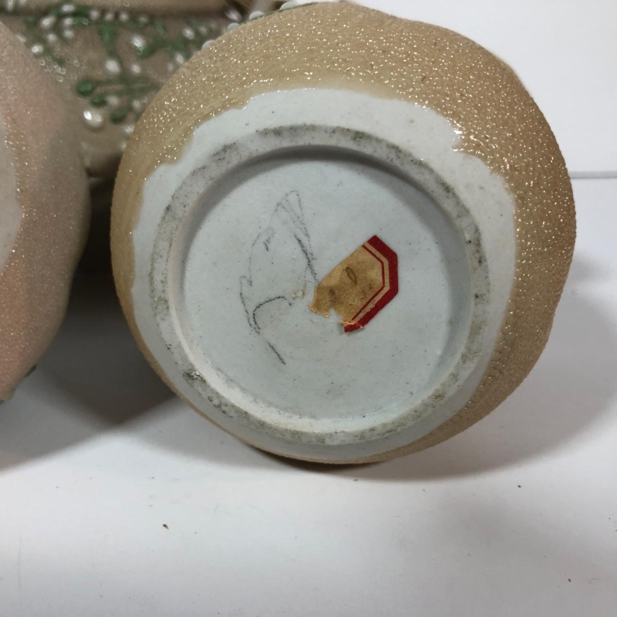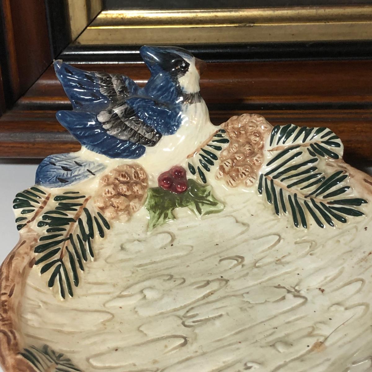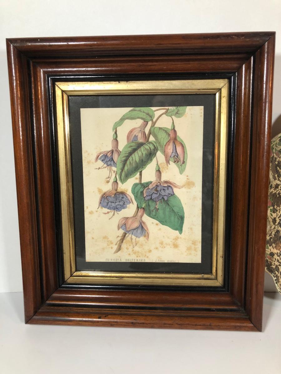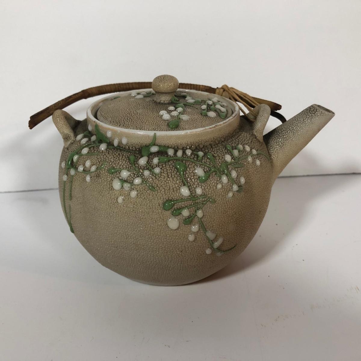 LOT 20L: Antique/Vintage Maple Leaf Majolica Plate, Vintage Japanese Majolica Plate, Japanese Moriage Meiji Teapot w/ Matching Sugar Bowl & Creamer, Framed Vintage Fuschia Solferino Print & More