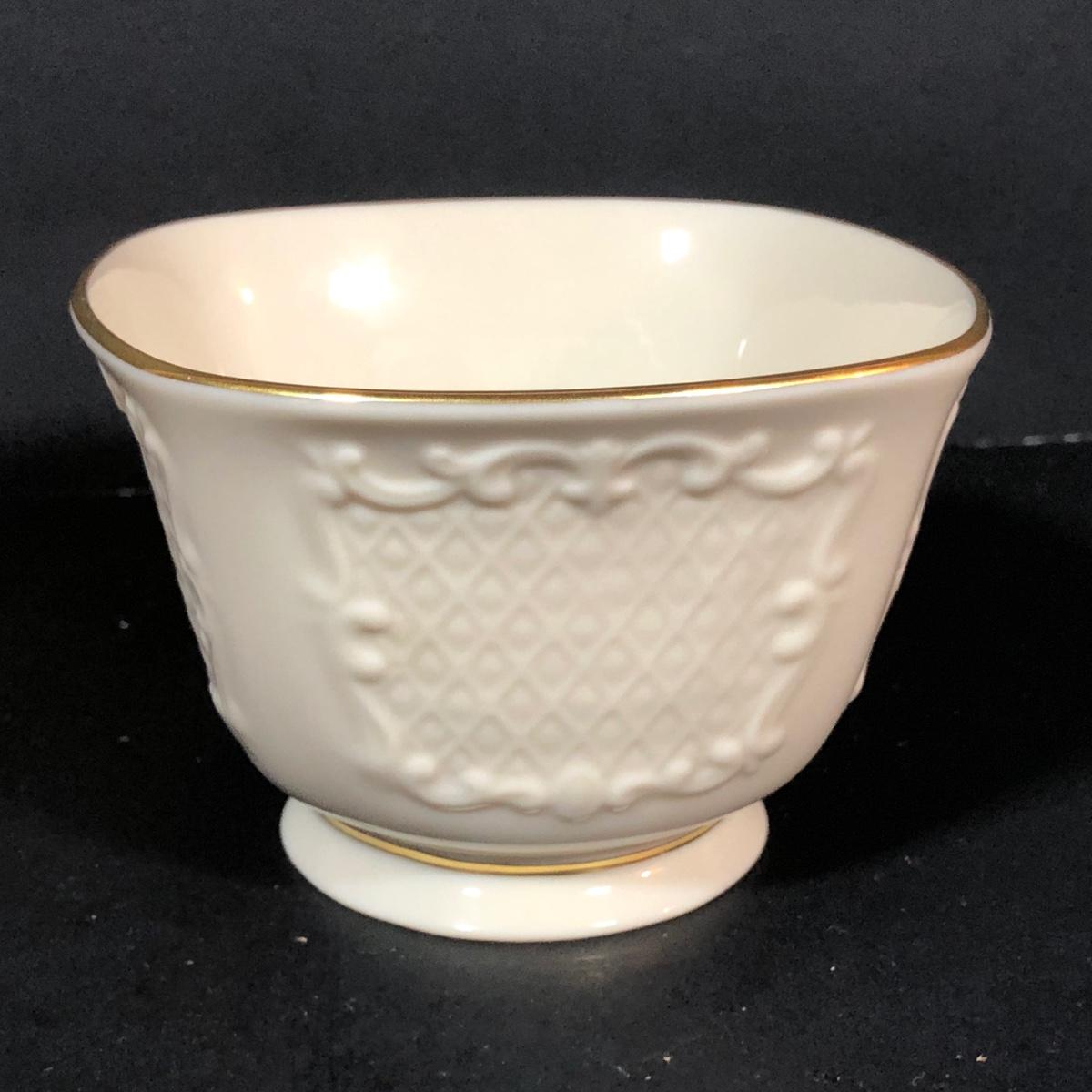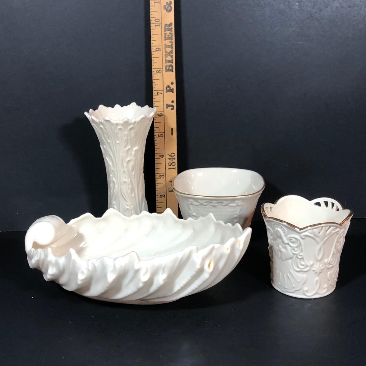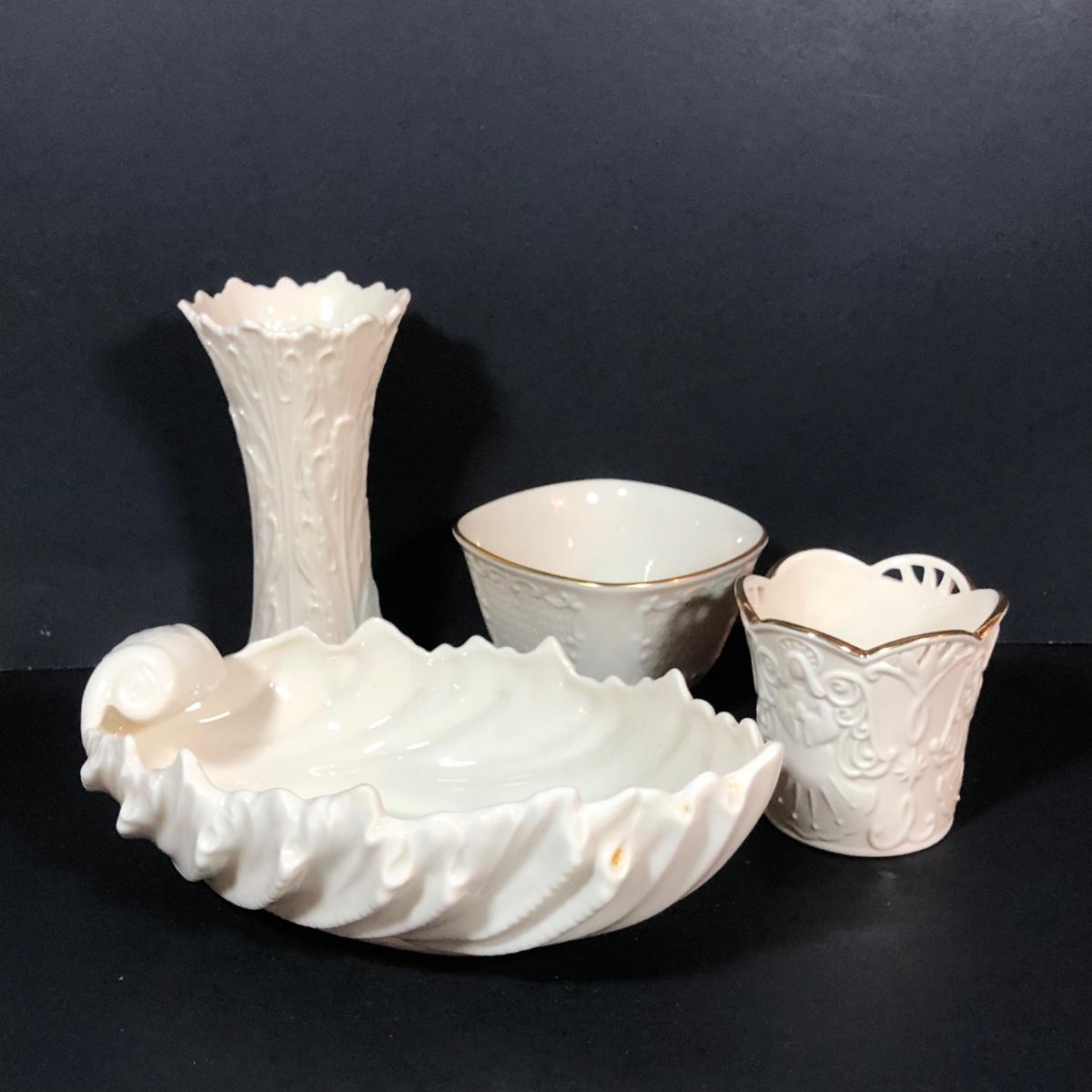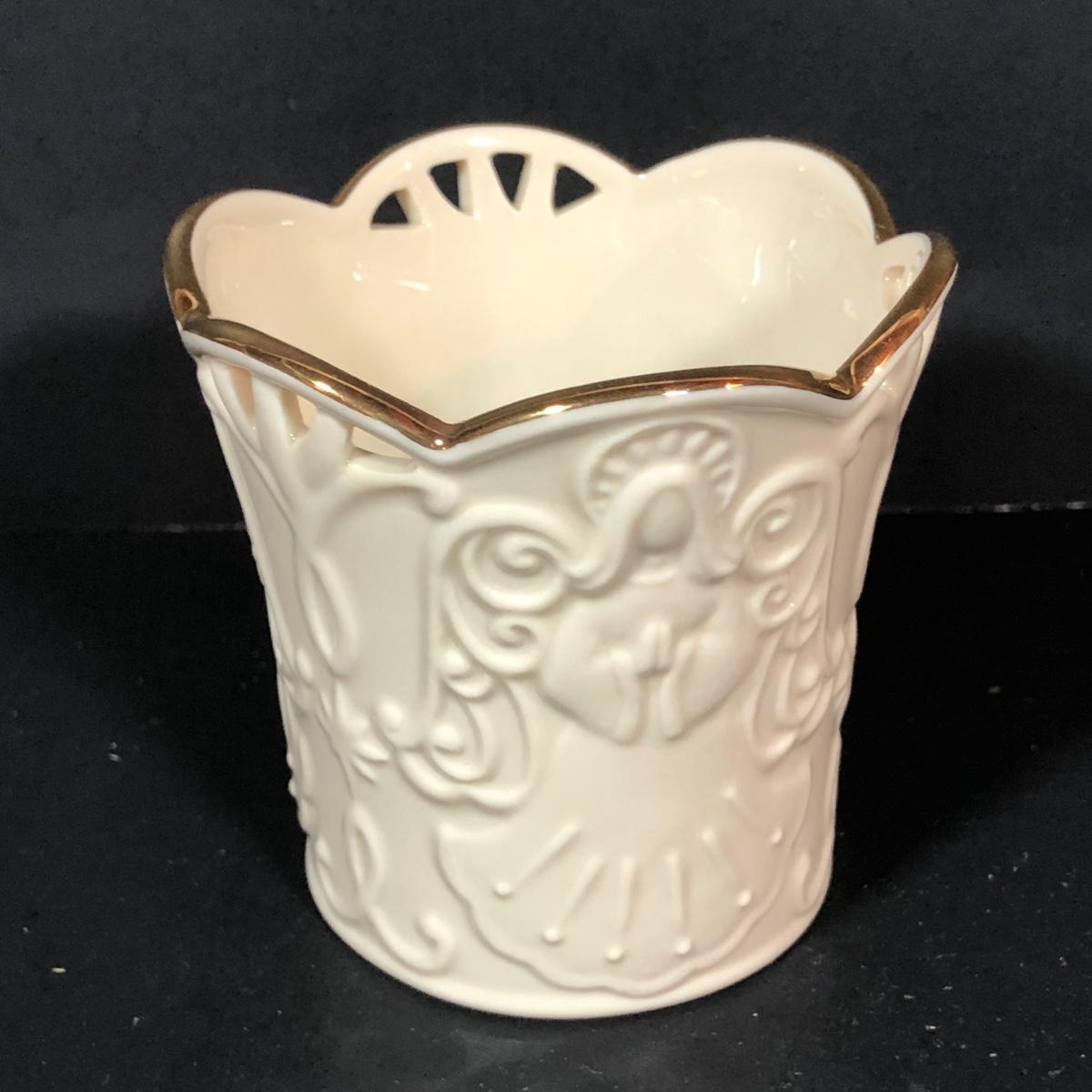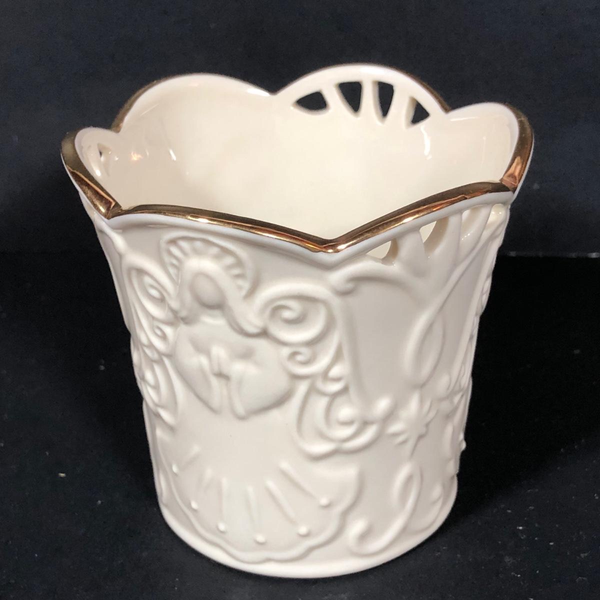 LOT 25L: Vintage Lenox Collection - Merry Lights Angel Votive, Woodland Vase, Canterbury Square Footed Bowl & Acanthus Leaf Candy Bowl