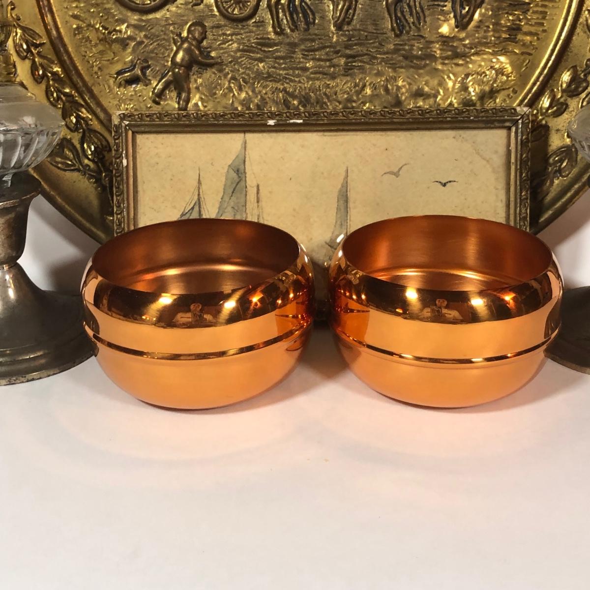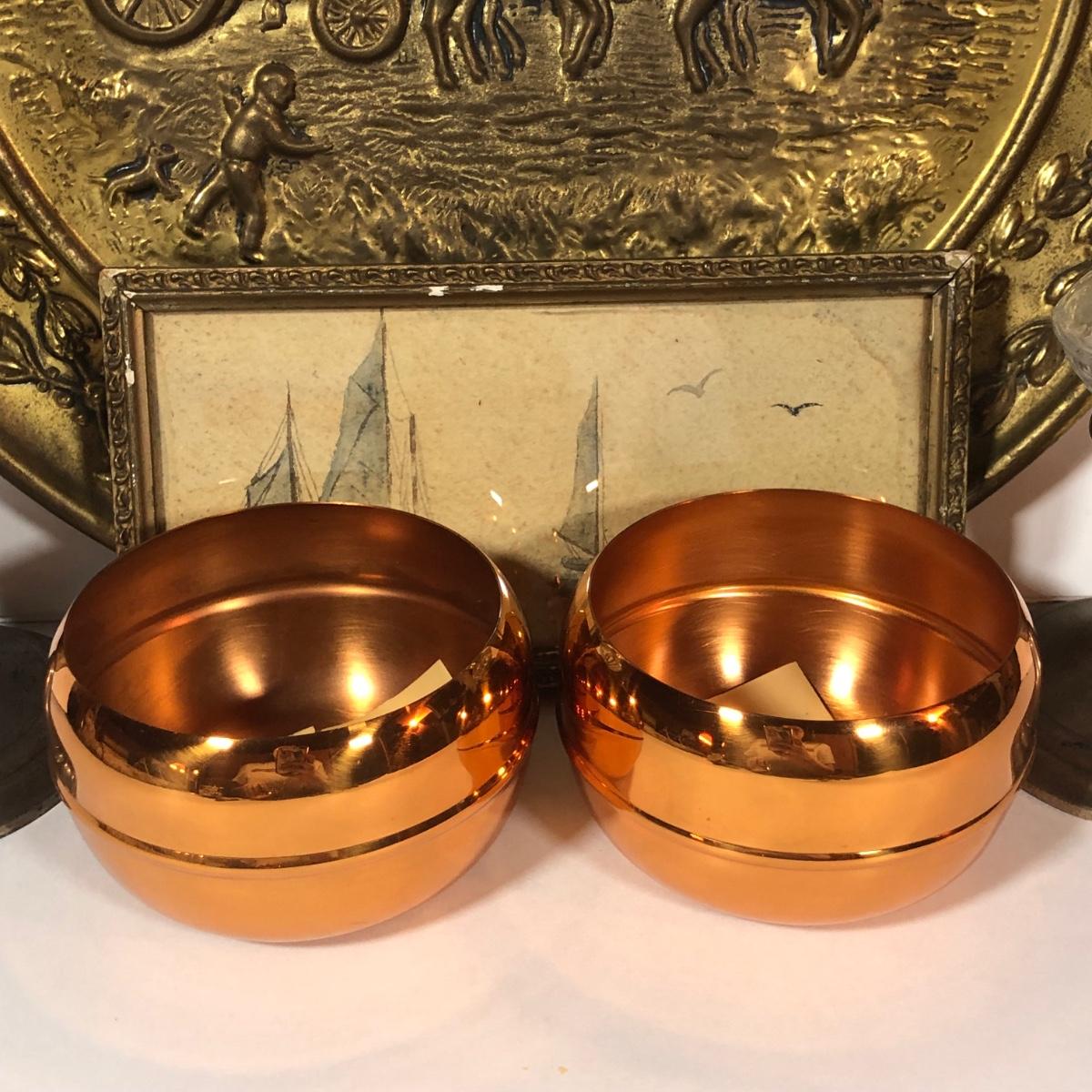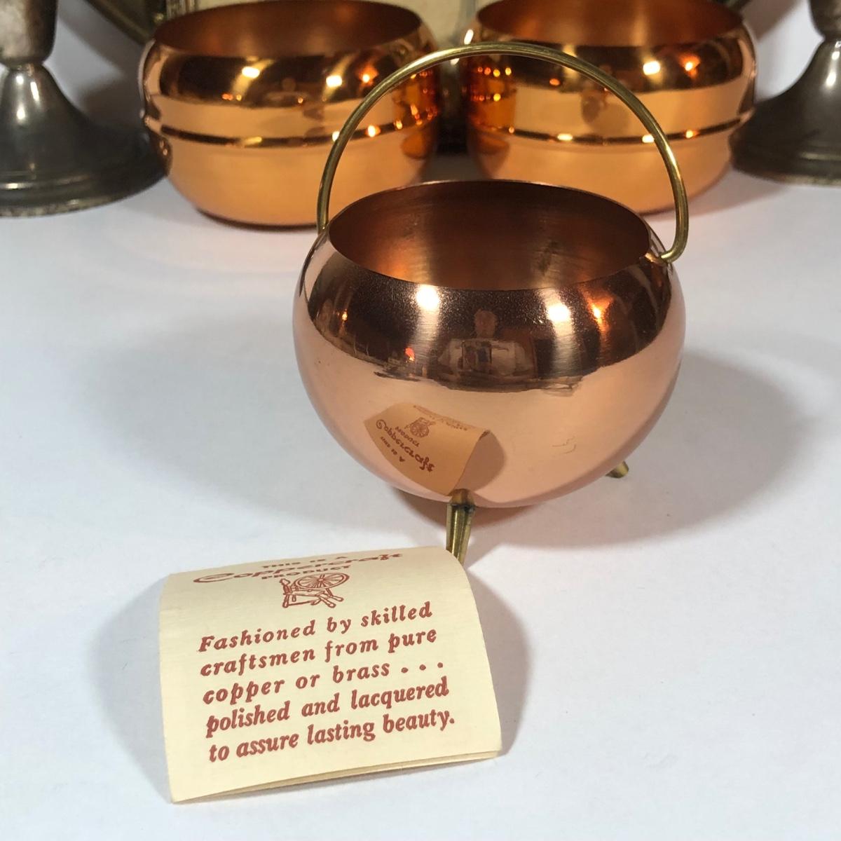 LOT 28L: Home Decor - Gorham Weighted/Reinforced Sterling Silver Candle Holders w/ Lamplight Farms Glass Oil Lamp Toppers, Coppercraft Mini Couldron, More Copper Pieces, Large Decorative Plate & More