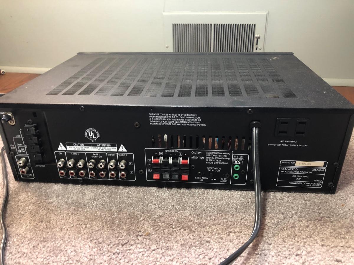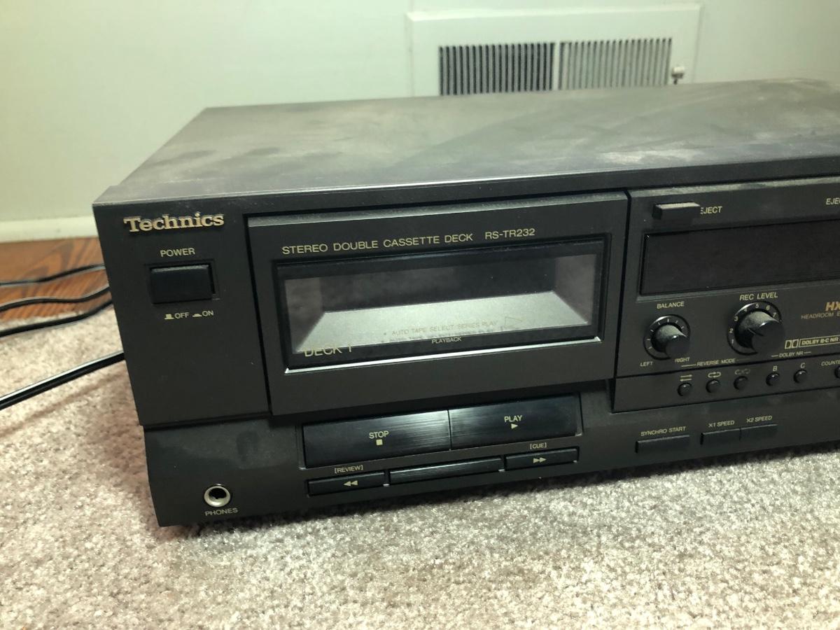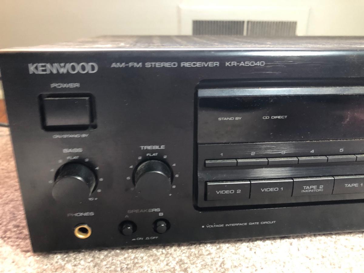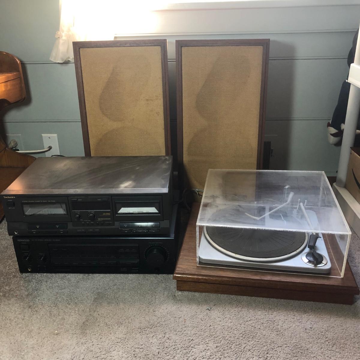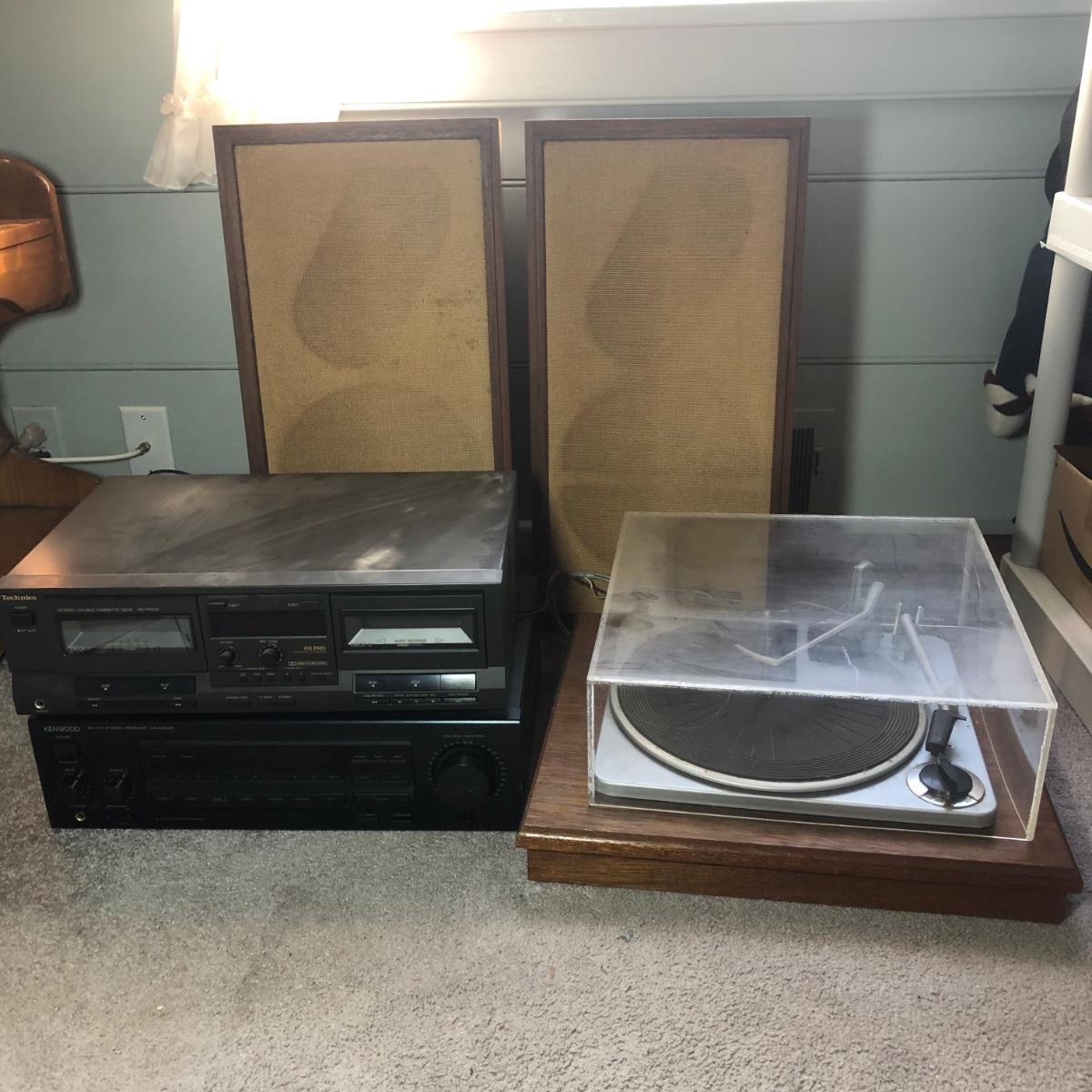LOT 40L: Vintage Unbranded Turntable, Realistic Optimus-1 Speakers, Technics Stereo Double Cassette Deck Model RS-TR232 & Kenwood AM-FM Stereo Receiver KR-A5040