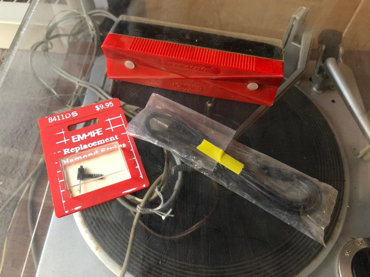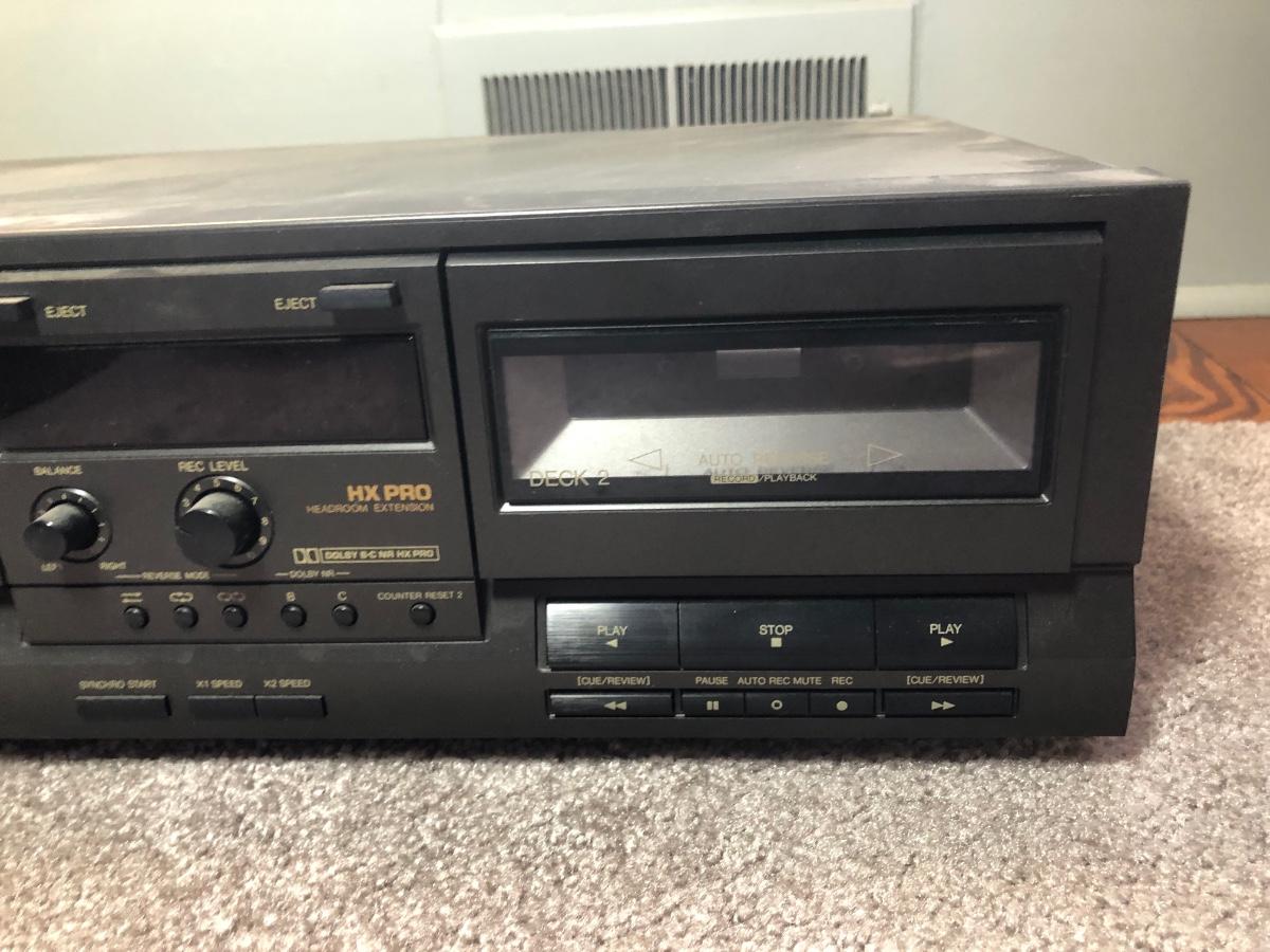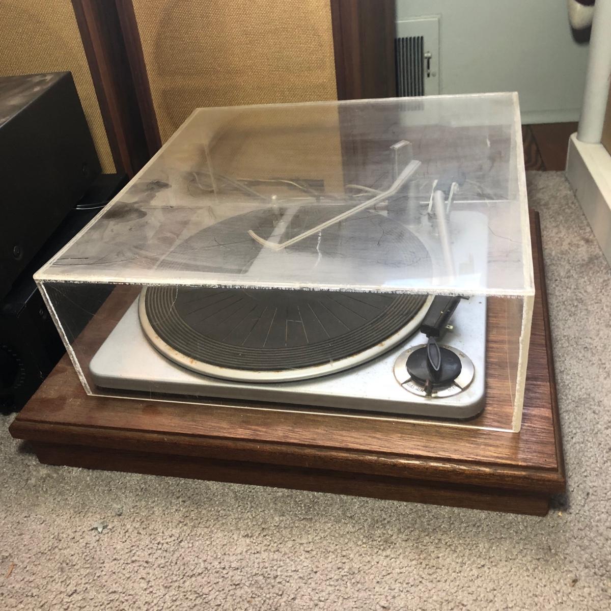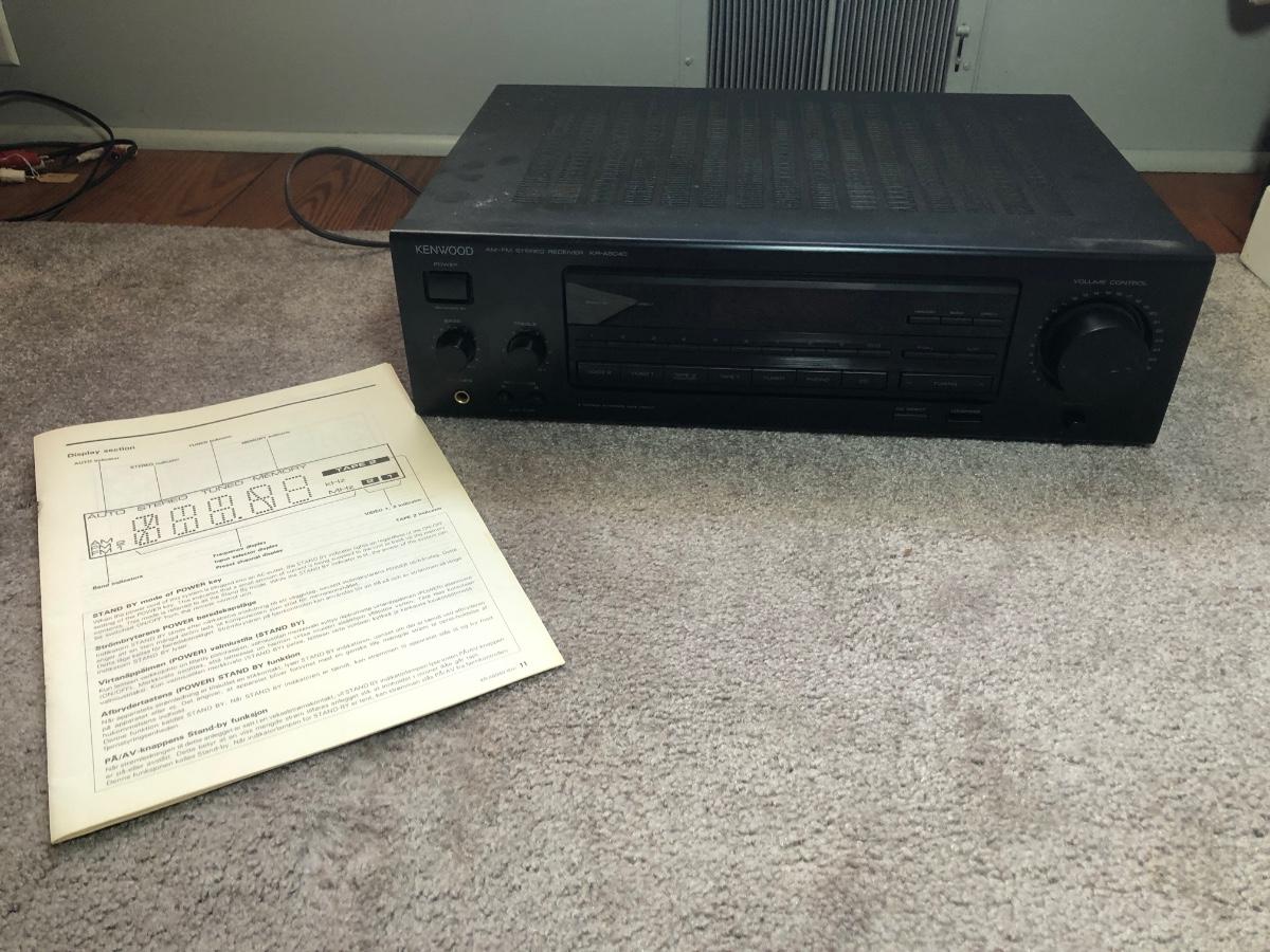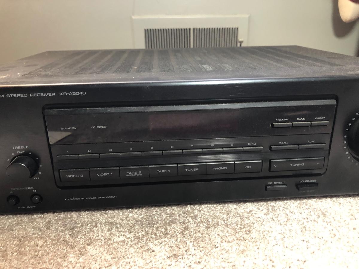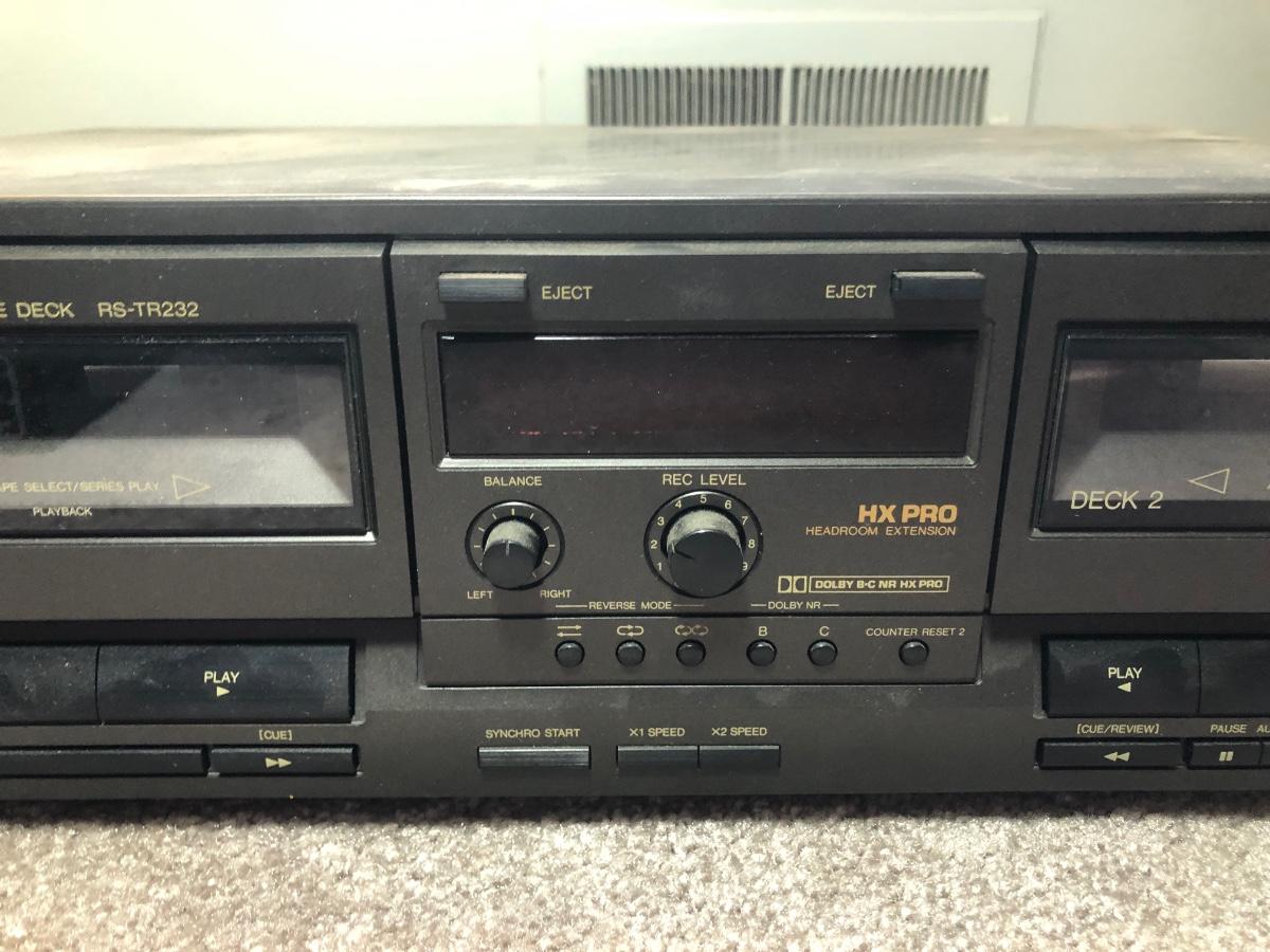LOT 40L: Vintage Unbranded Turntable, Realistic Optimus-1 Speakers, Technics Stereo Double Cassette Deck Model RS-TR232 & Kenwood AM-FM Stereo Receiver KR-A5040
