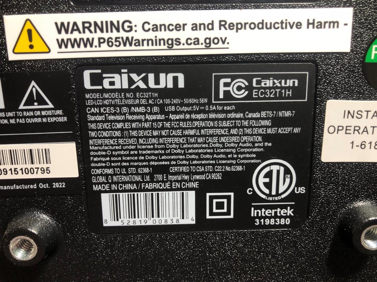 LOT 41L: 32" Caixun TV w/ Remote Model EC32T1H