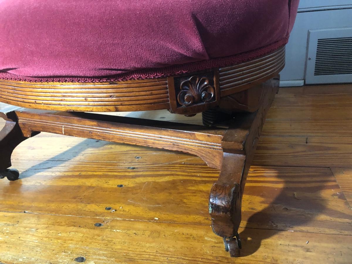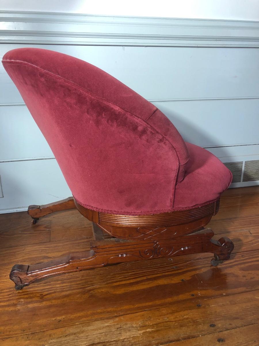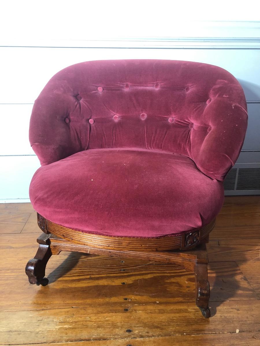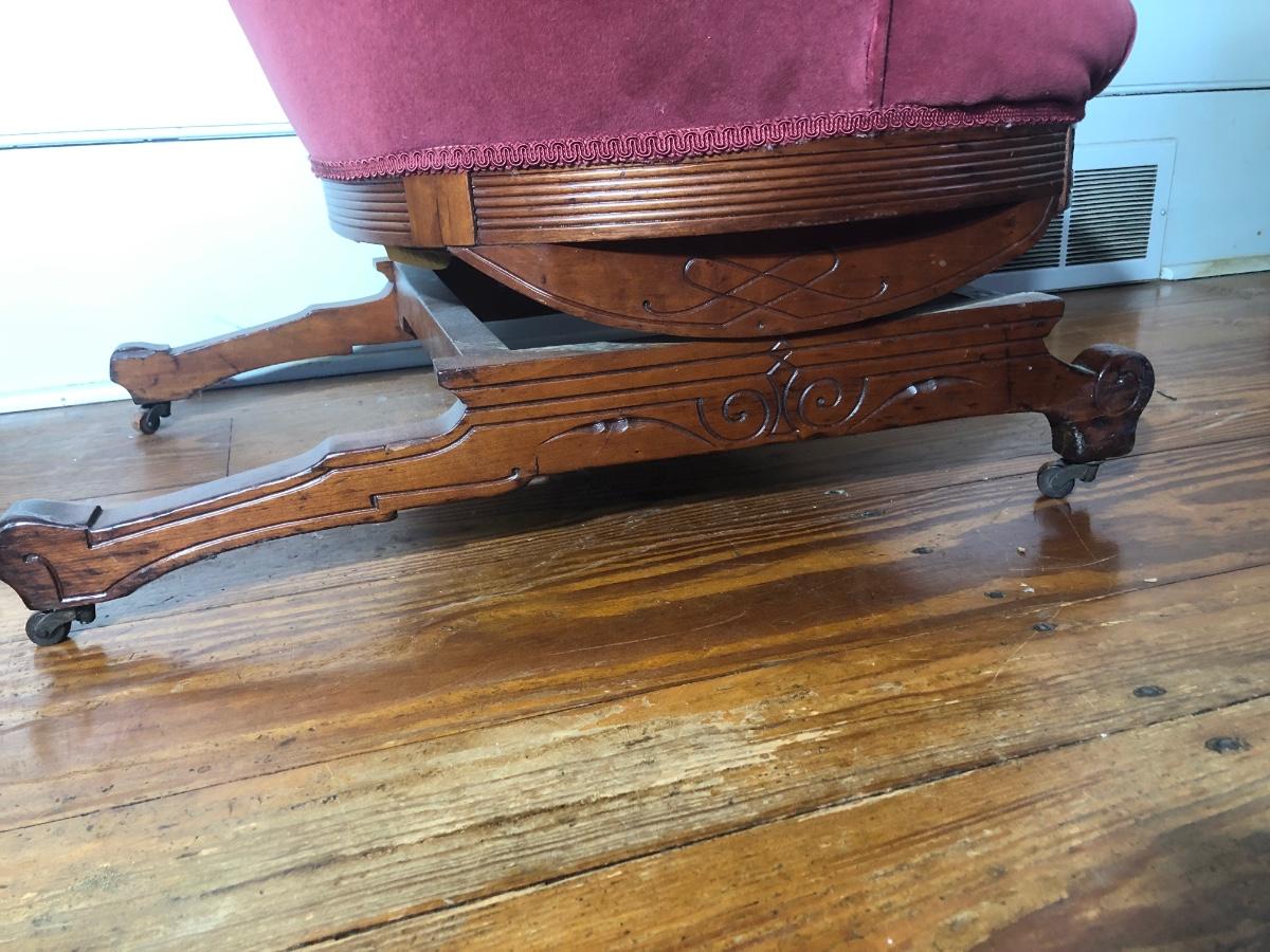 LOT 60L: Vintage Round Red Rolling Chair w/ Rocking Chair & Rolling Wooden Char