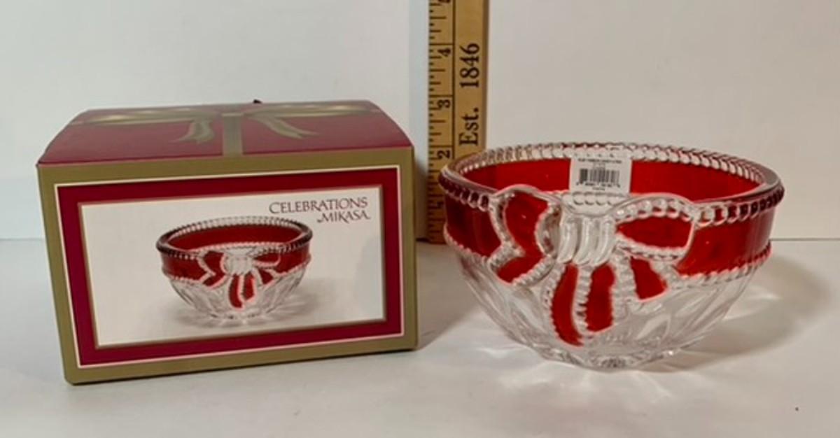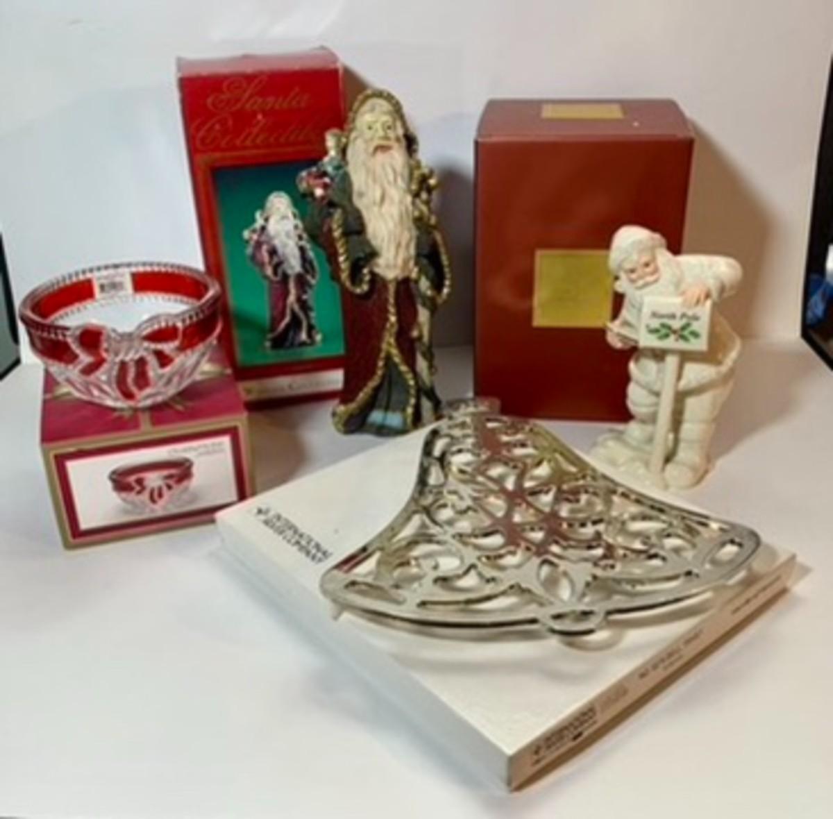 LOT 79L: Christmas Collection - Lenox Santa, Windsor Santa, Mikasa Crystal Bowl, International Silver Company Bell