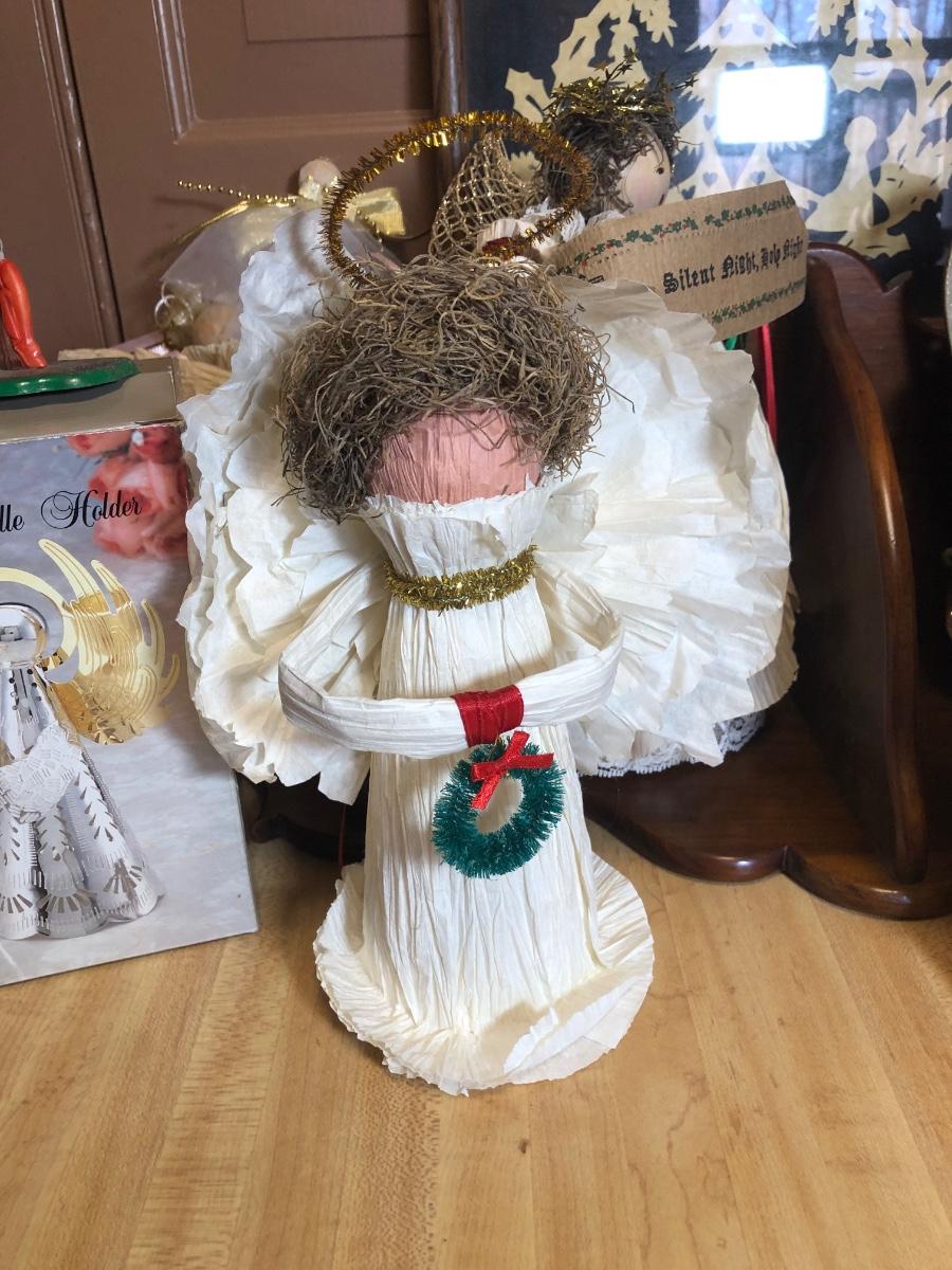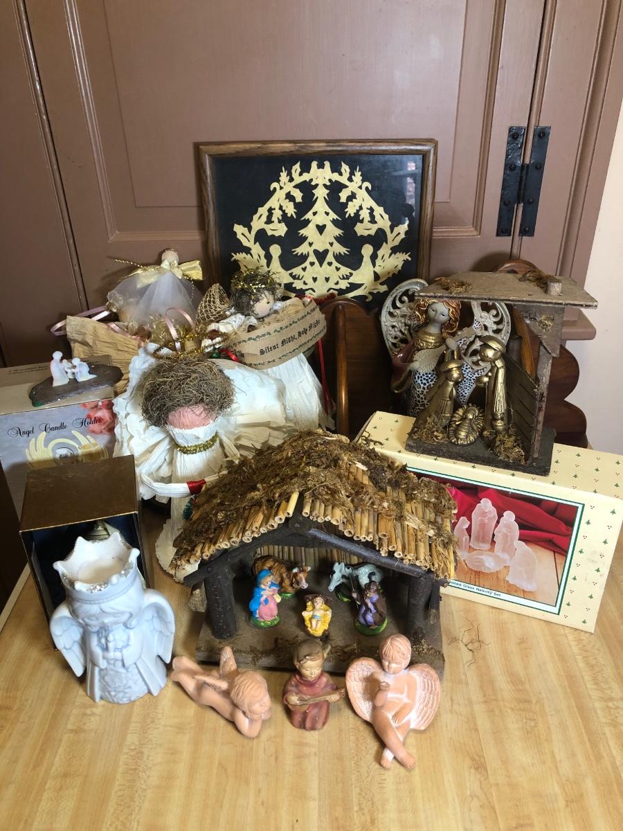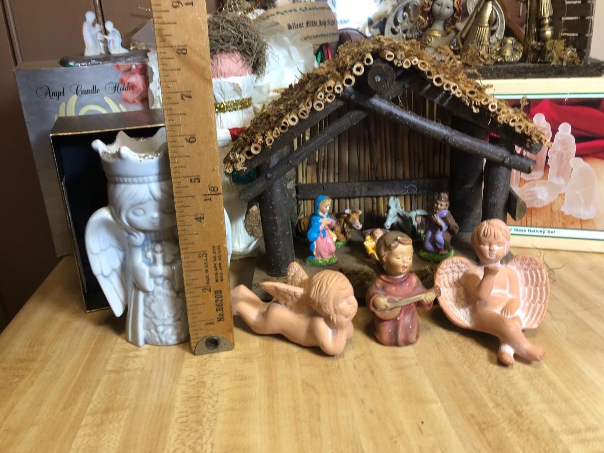 LOT 107L: Holiday Angels & Religious Decor - Glass Nativity, Goebel Figurine, Holy Family Statue & Creche Made in Italy, Hand Made Paper Angels & More