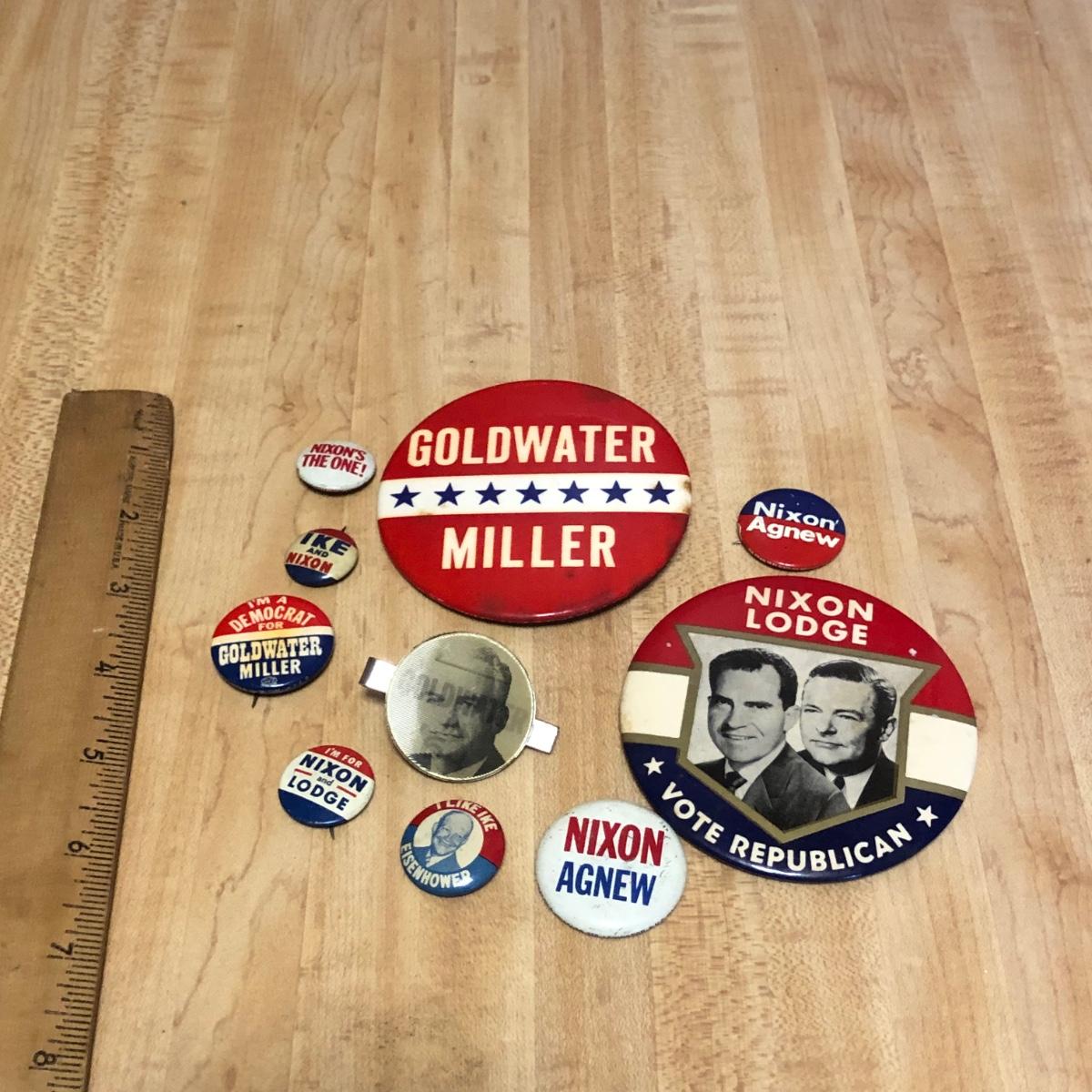 LOT 118K: Vintage Political Pins/Buttons - Nixon, Goldwater
