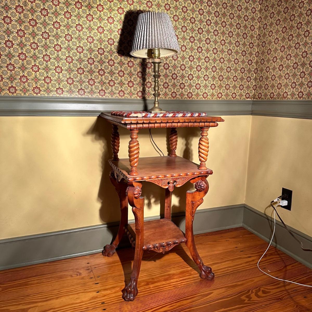 LOT 125B: Vintage 3 Tier Lamp Stand w/ Brass Lamp