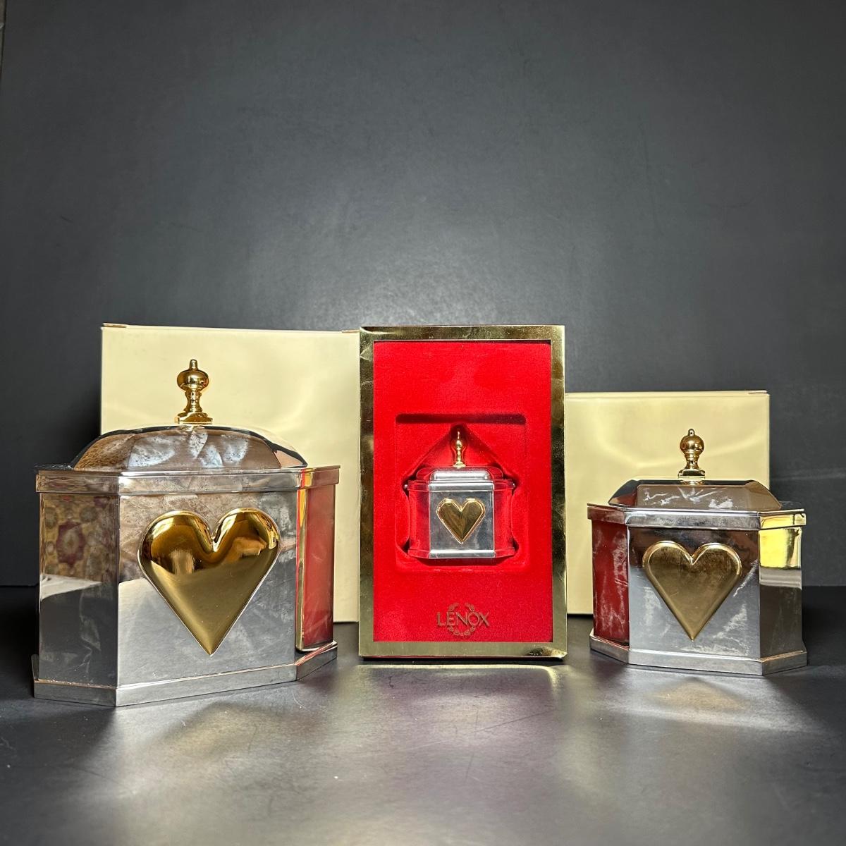 LOT 130B: Lenox Silver Plated Heart Boxes & Ornament