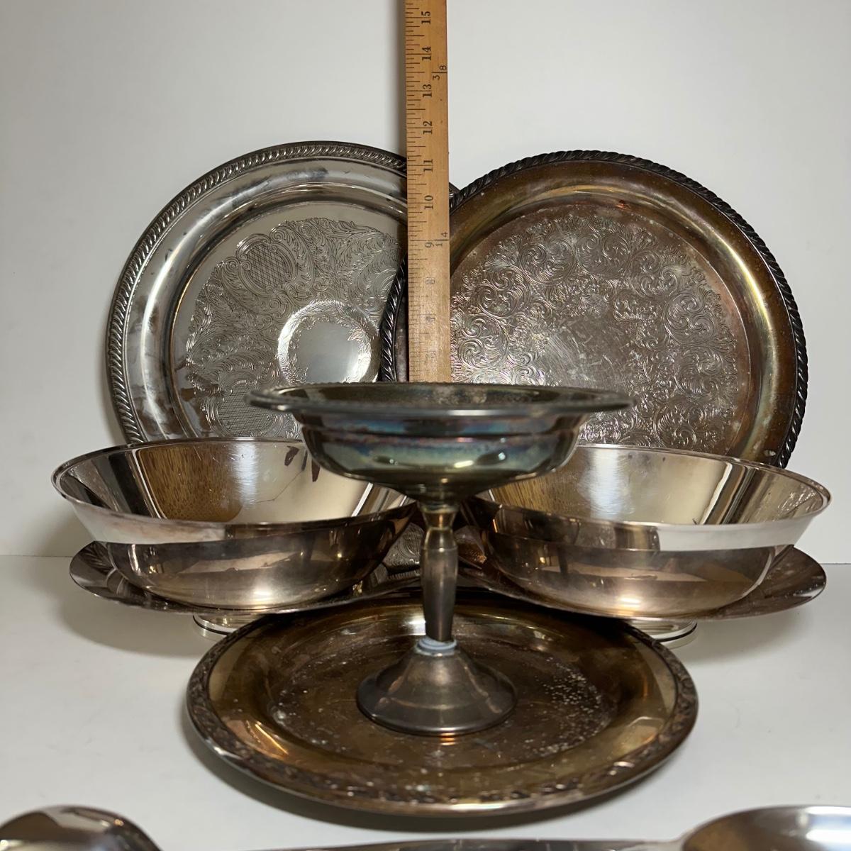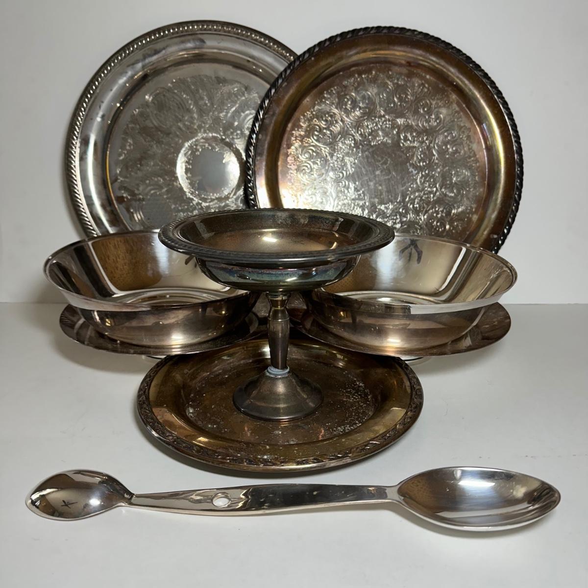 LOT 136B: Silver Plated Candy Dish, Tasting/Stirring Spoon, Serving Bowls & Trays