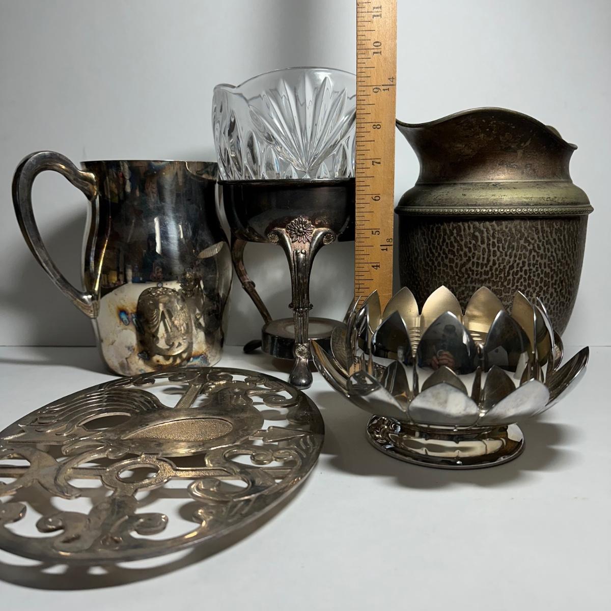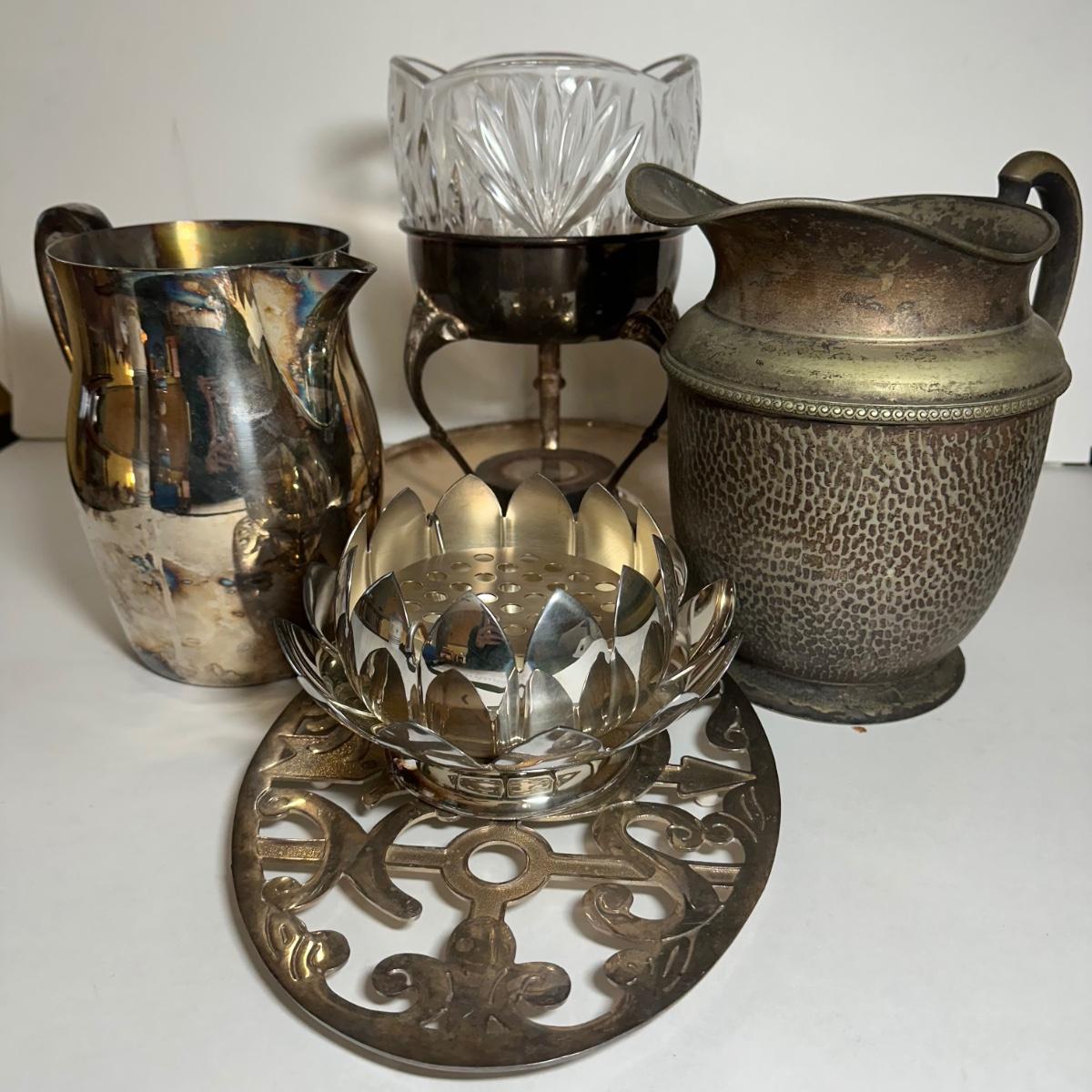 LOT 139B: Silver Plated Centerpieces, Pitchers & Trays
