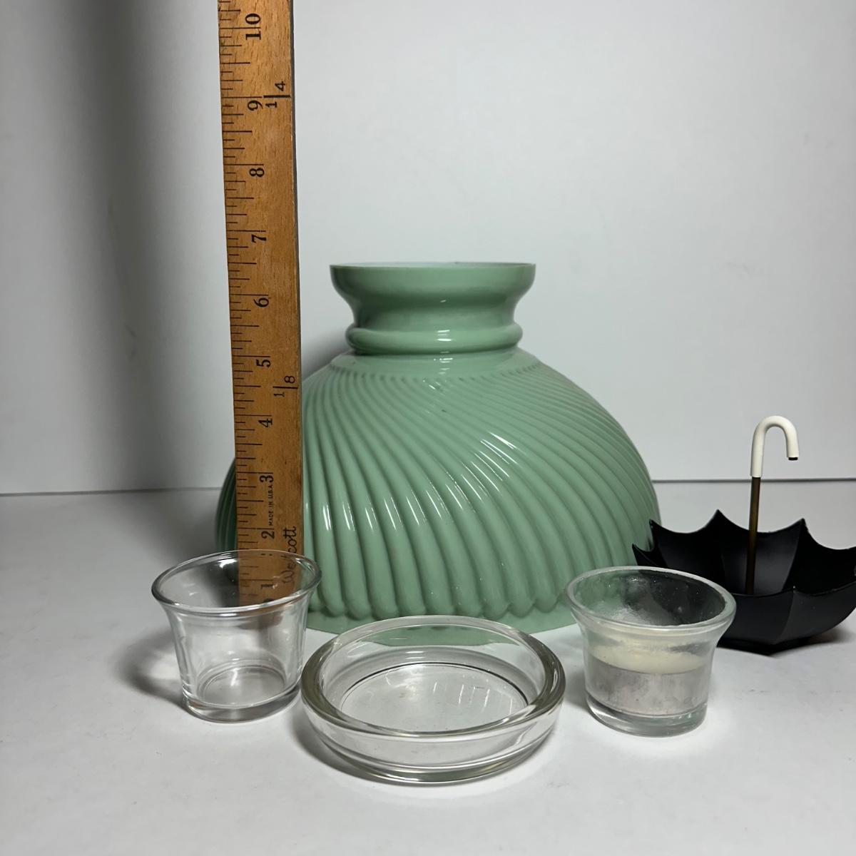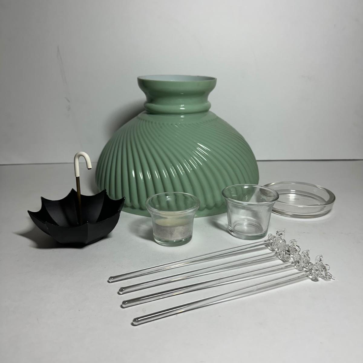 LOT 144B: Oil Lamp Shade, Umbrella Candy Dish, Stir Sticks & More