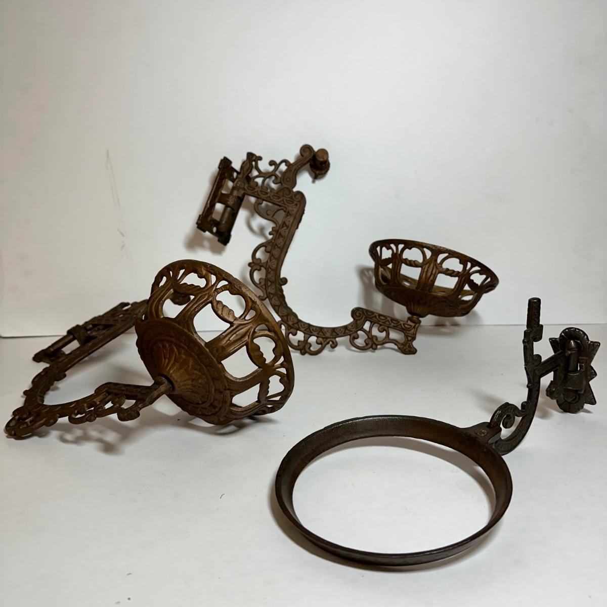 LOT 146B: Antique Cast Iron Wall Mount Sconce Oil Lamp Holders