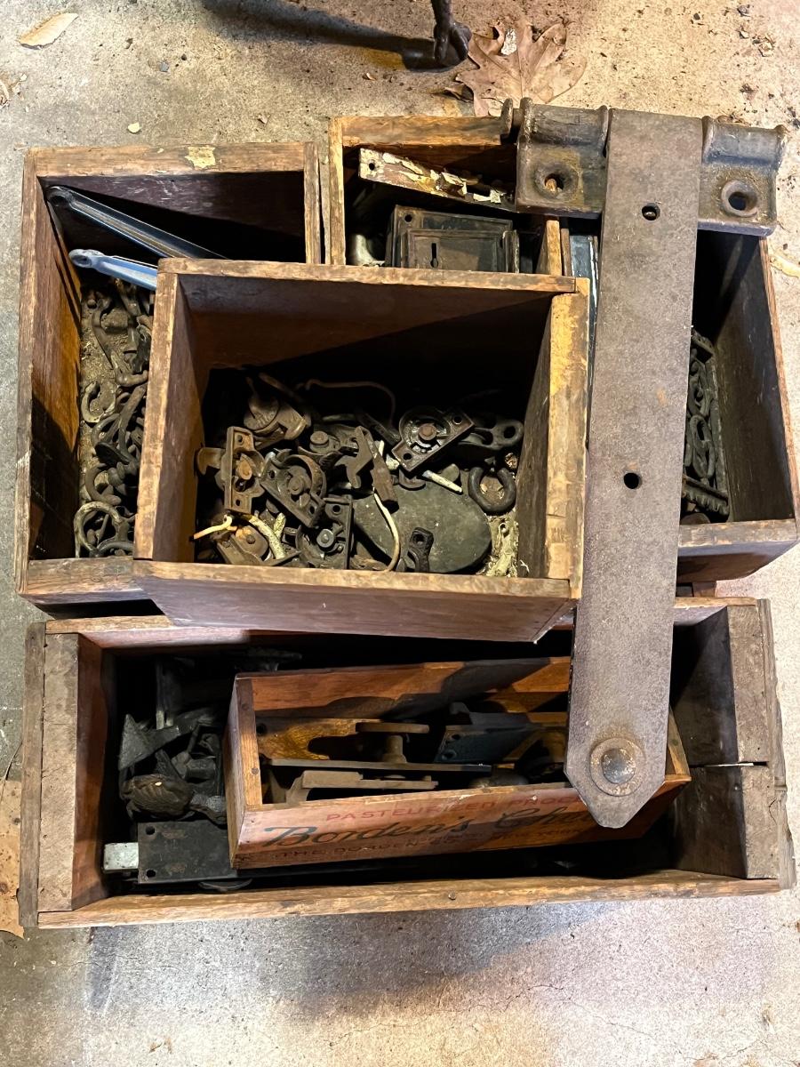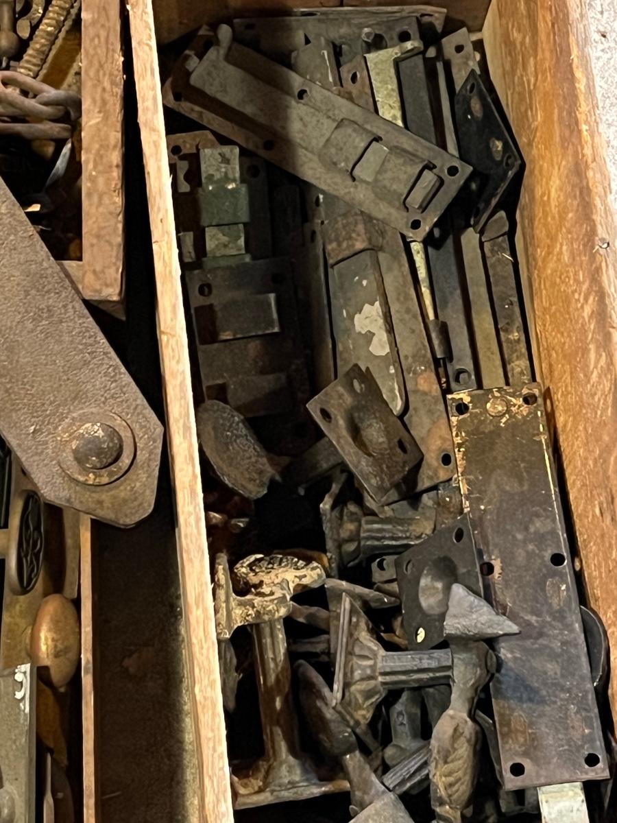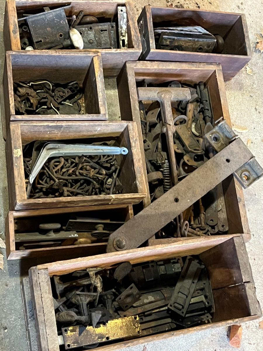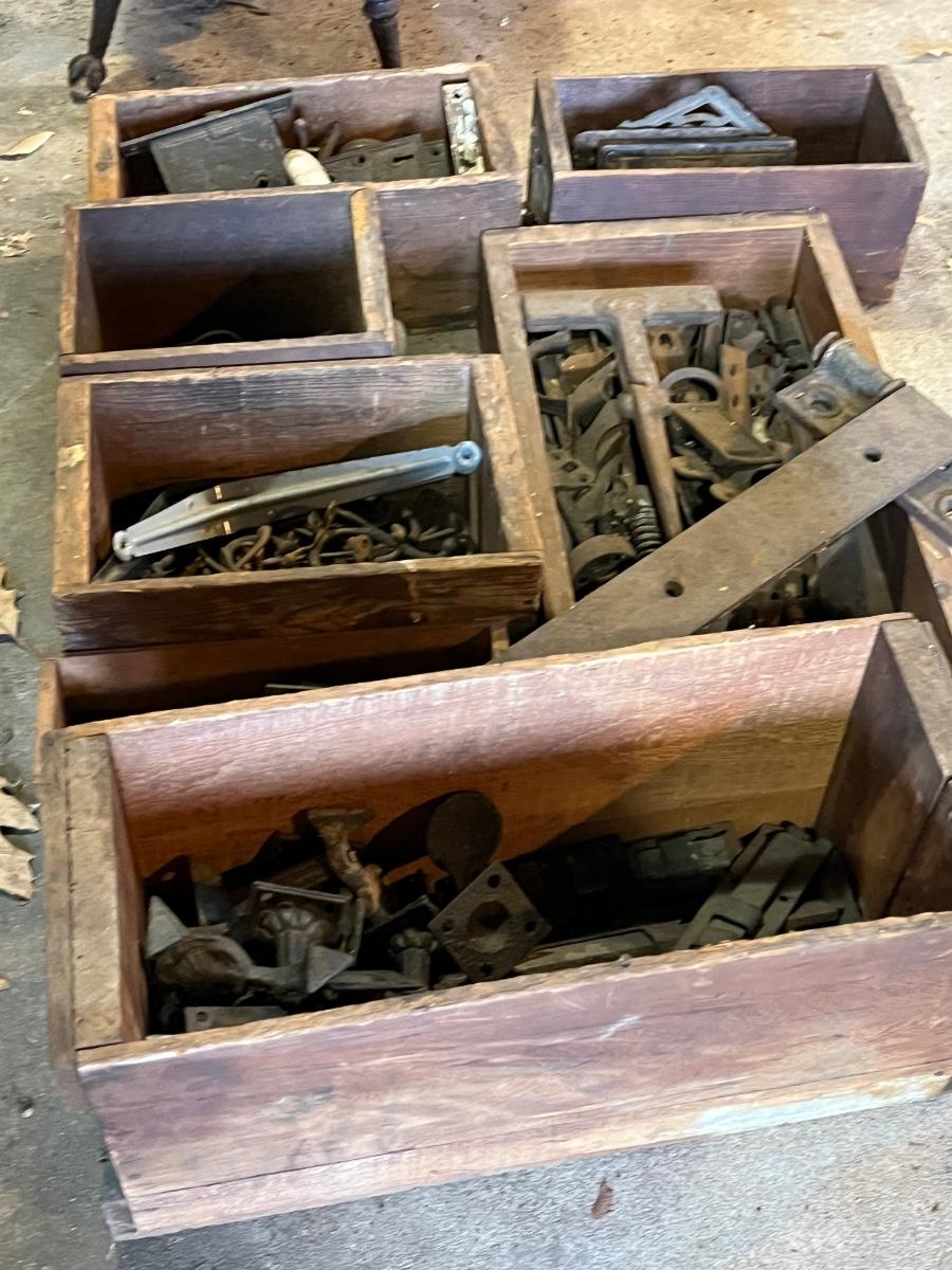 LOT 198G: Big Lot of Vintage / Antique Hardware in Wooden Bins