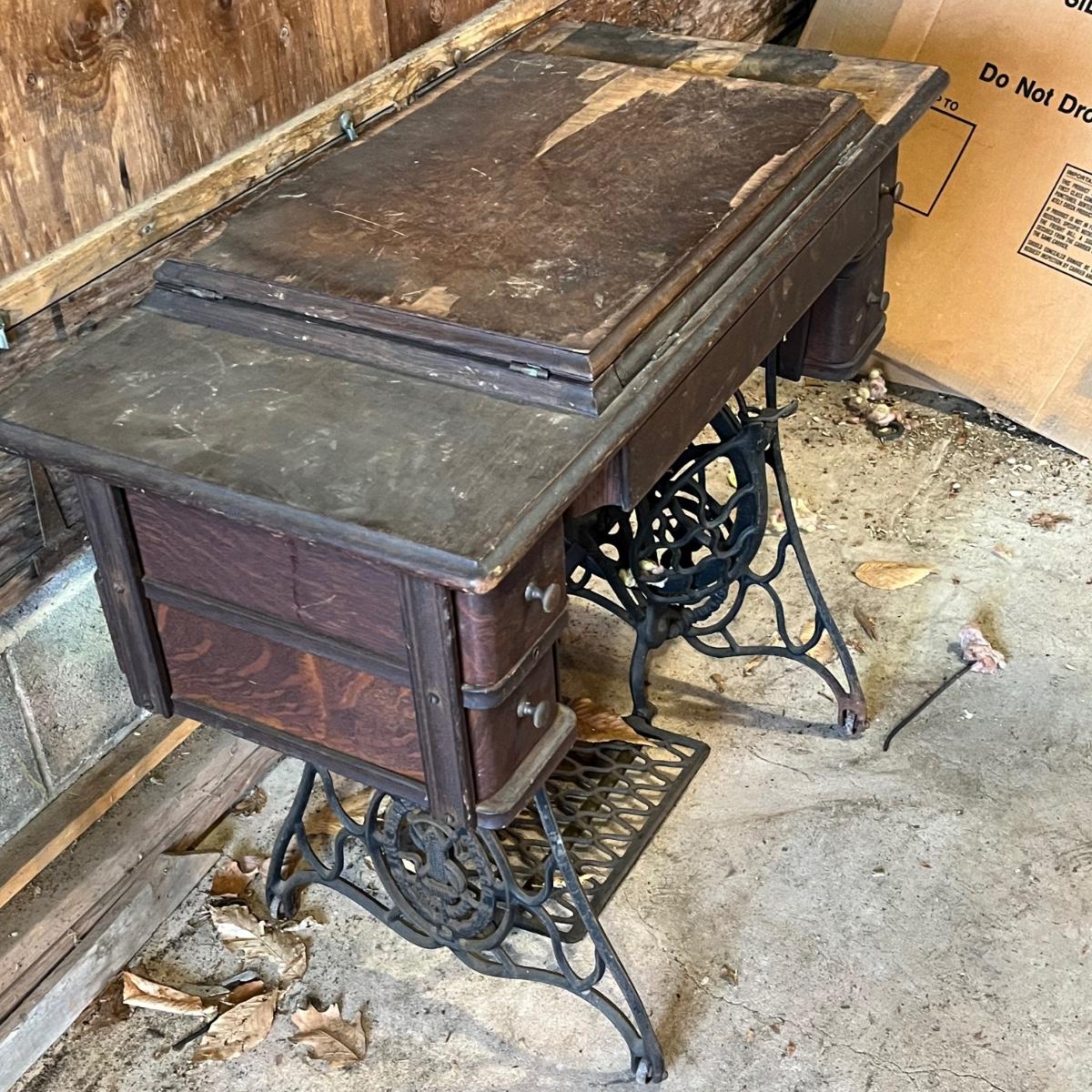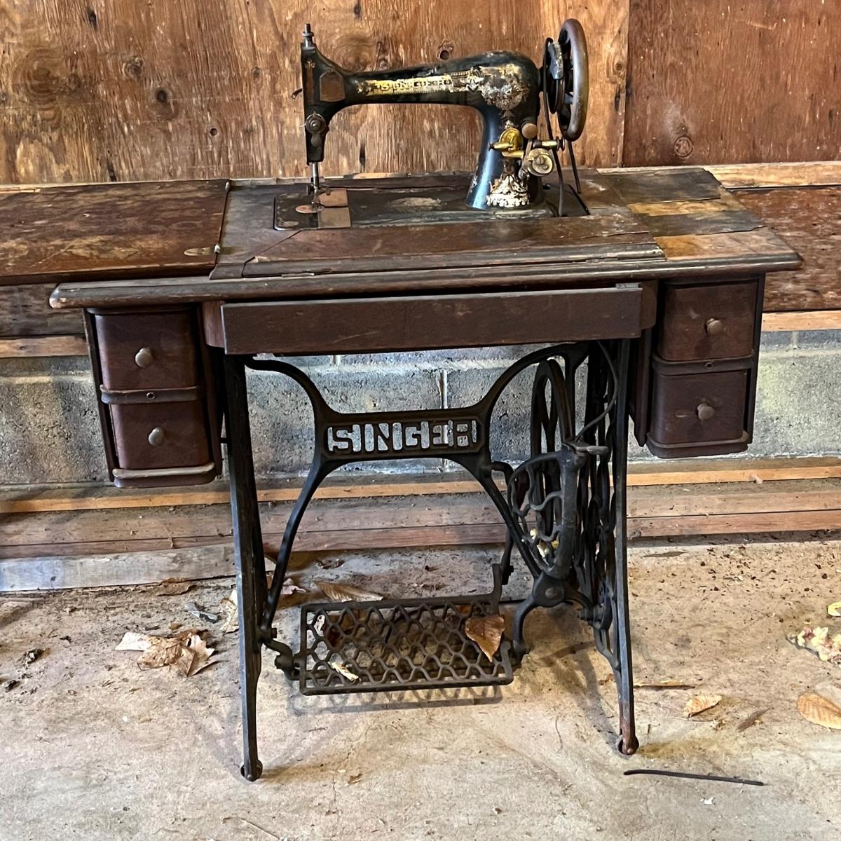 LOT 199G: Vintage / Antique Singer Sewing Machine with Treadle Table