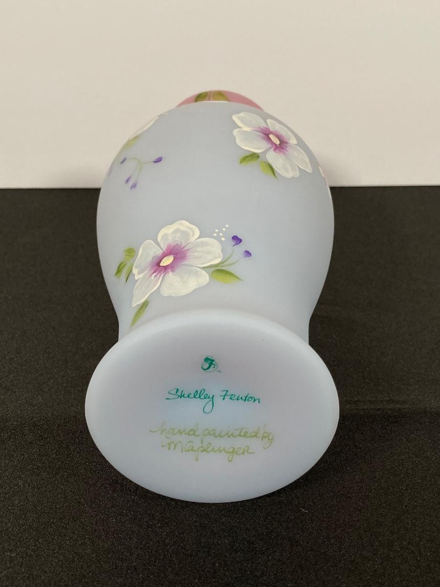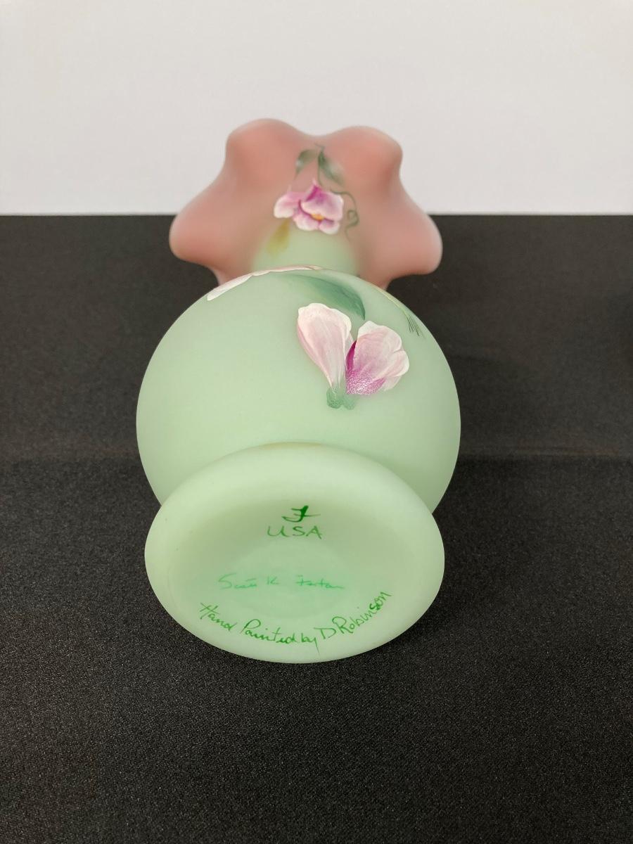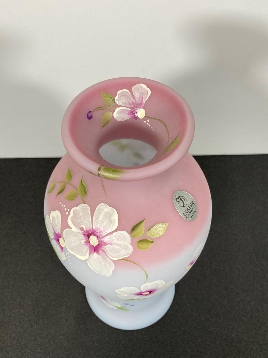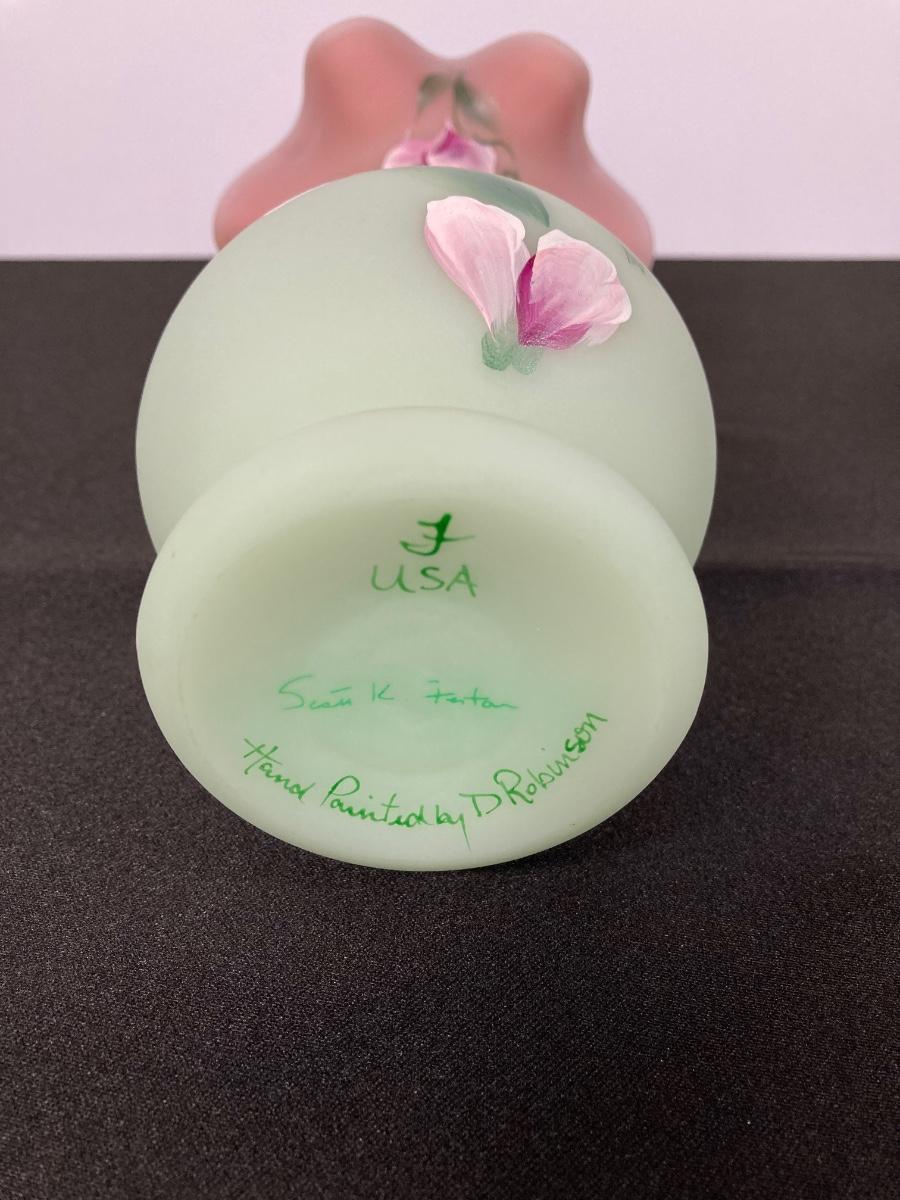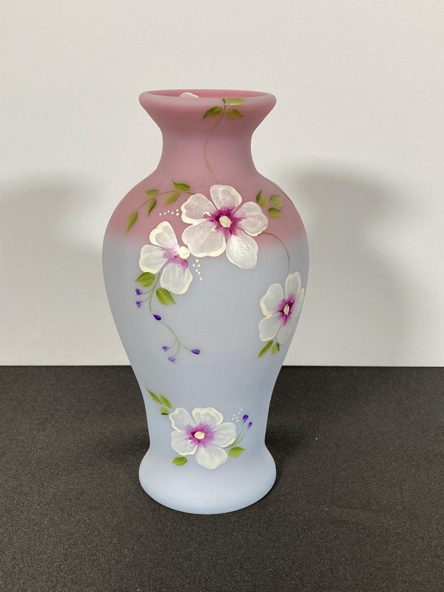 LOT 4J: Fenton Frosted Glass Vase Collection - Hand Painted Hummingbird and More