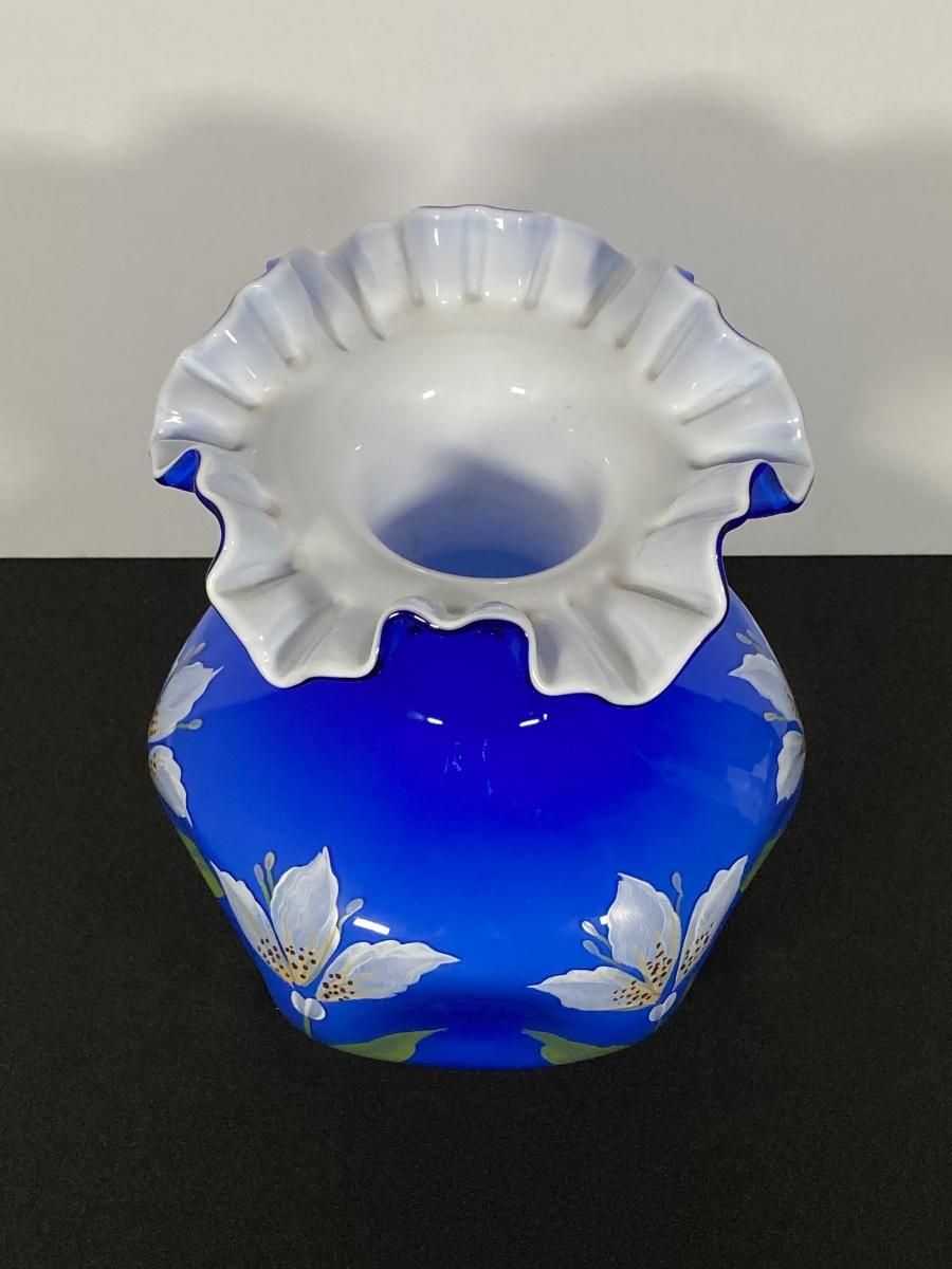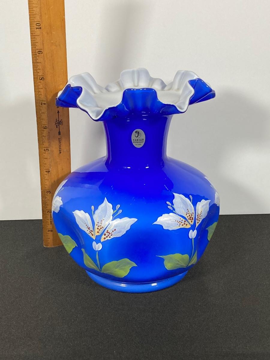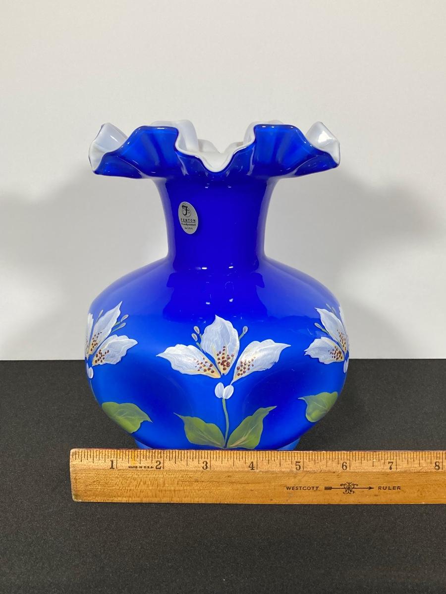 LOT 9J: Cobalt Blue Ruffled Fenton Vase