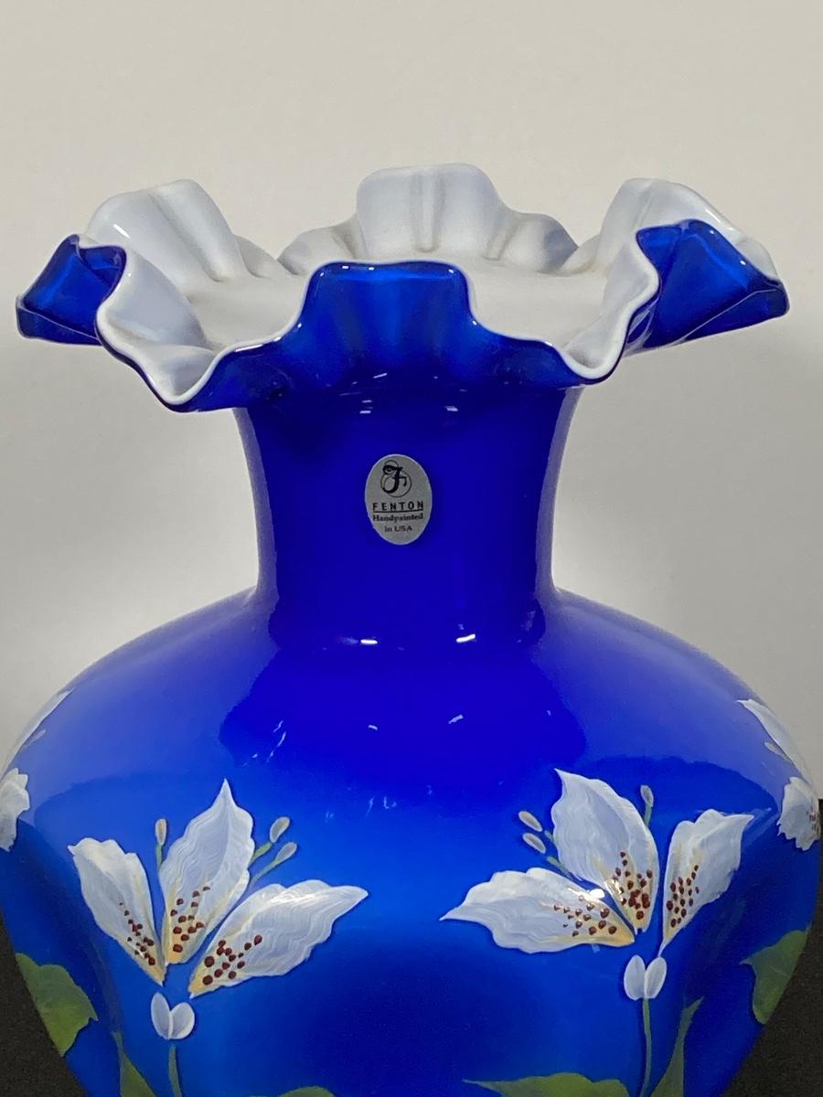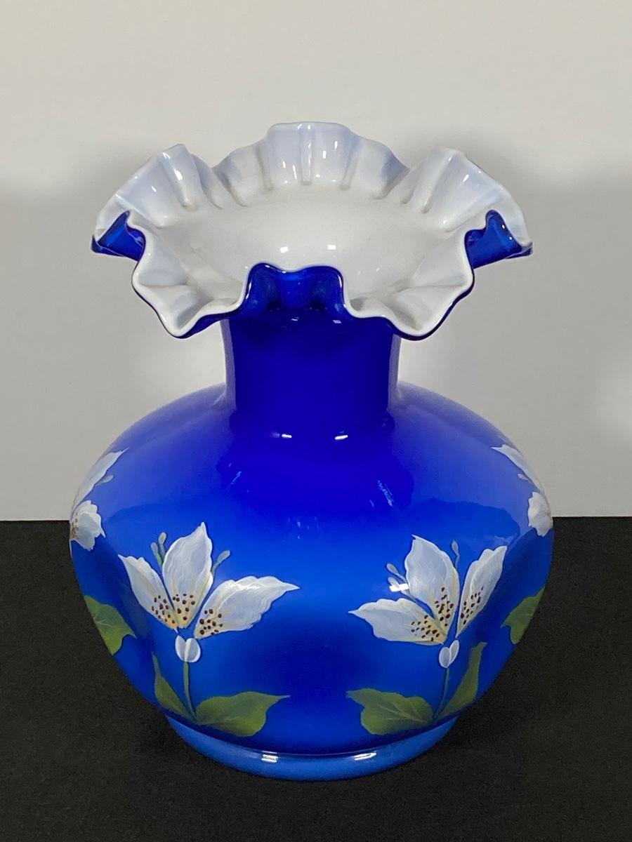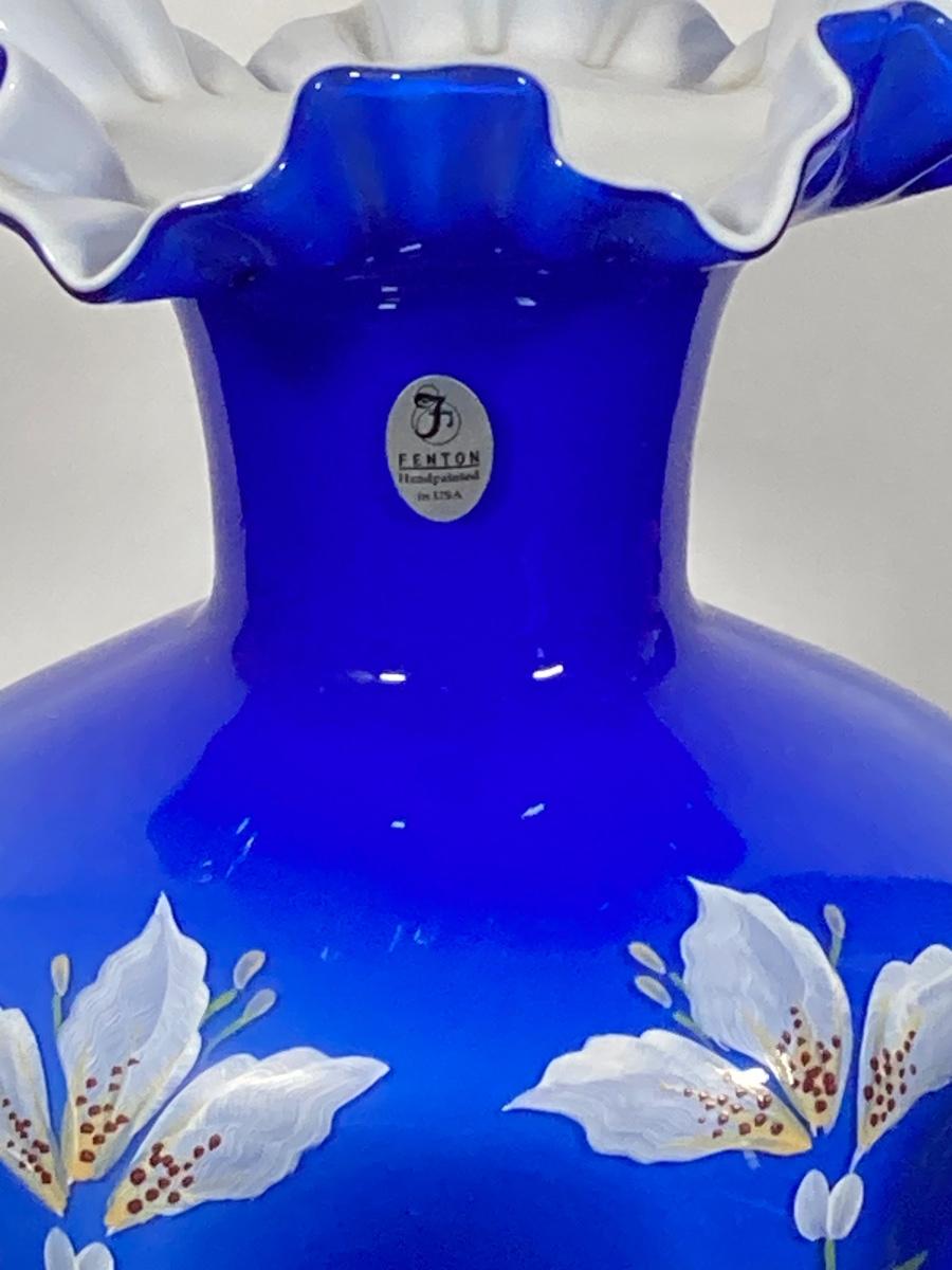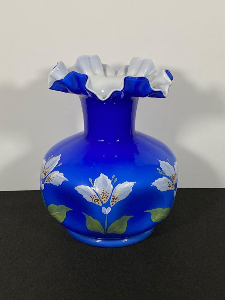 LOT 9J: Cobalt Blue Ruffled Fenton Vase