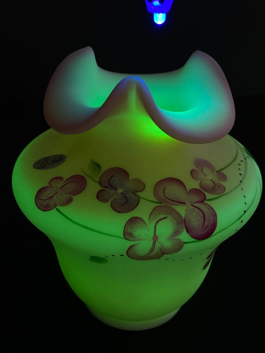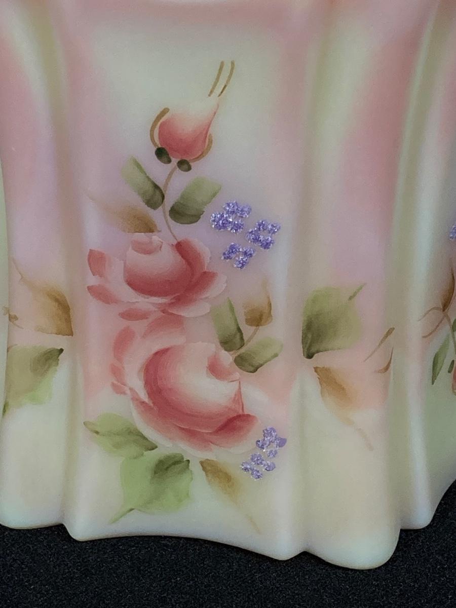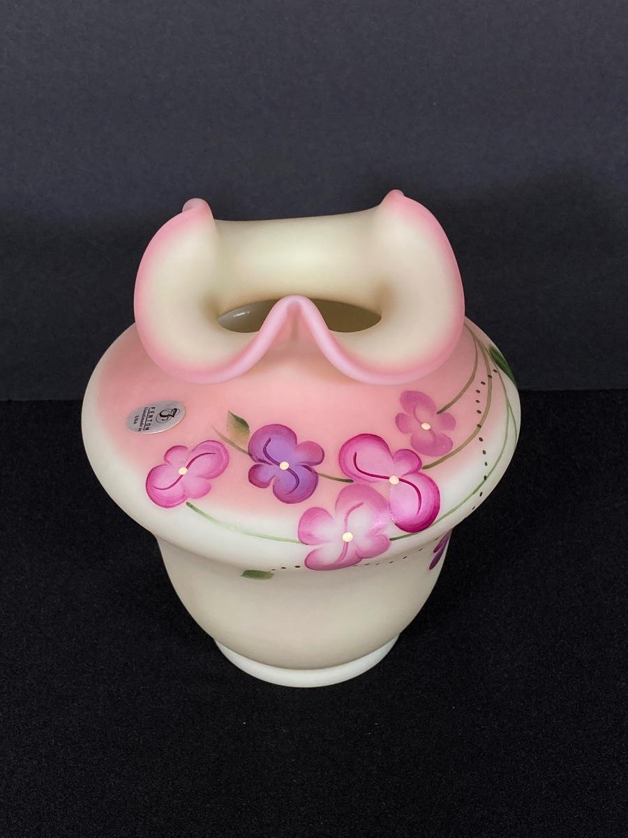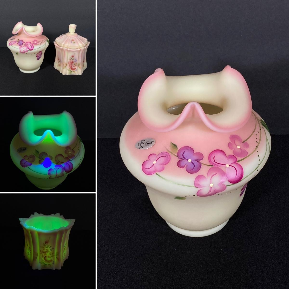 LOT 12J: Fenton Frosted Burmese Collection - Ruffled Vase and Lidded Candy Dish