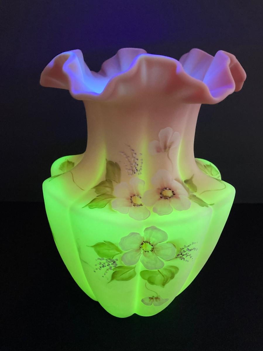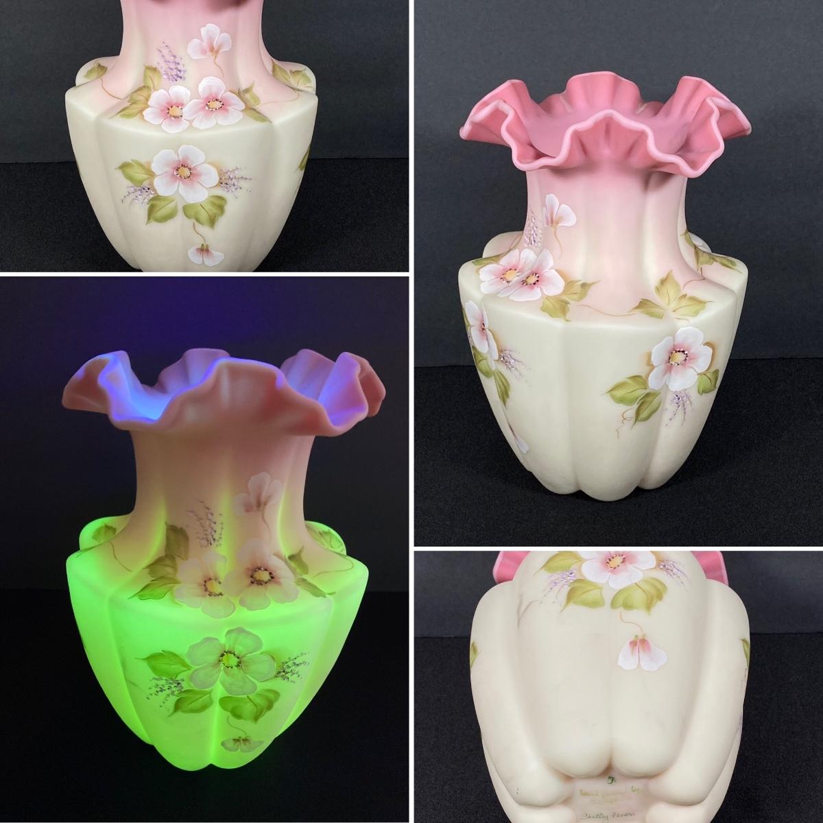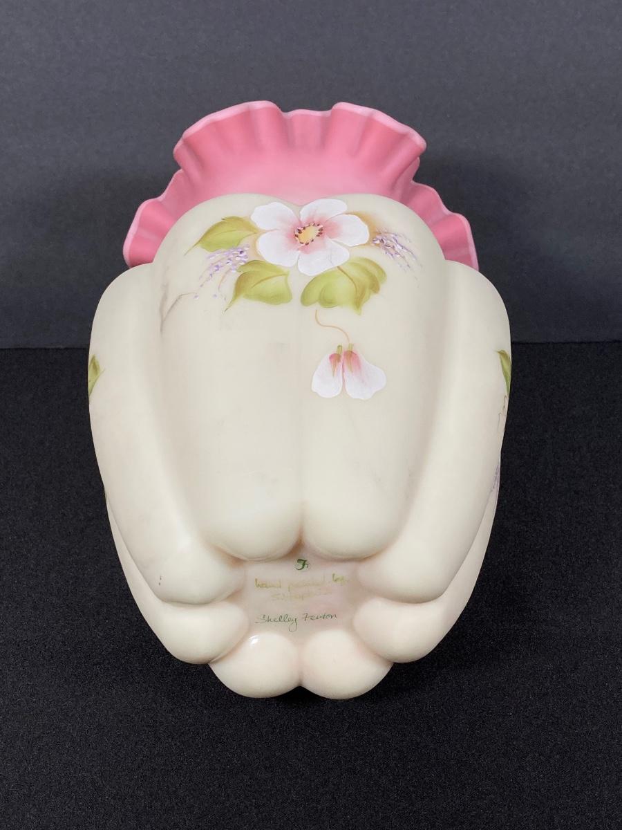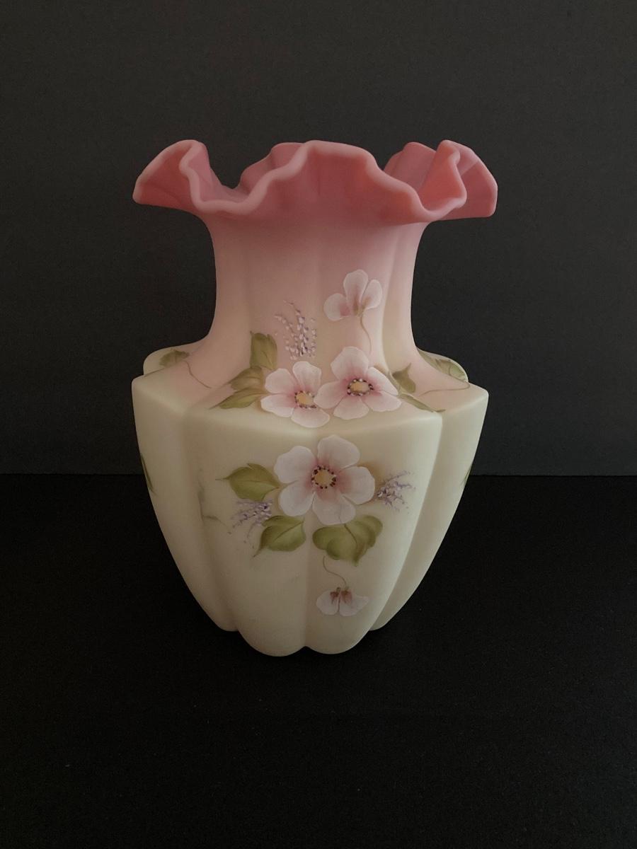 LOT 14J: Fenton Burmese Glass Ruffled Top Vase