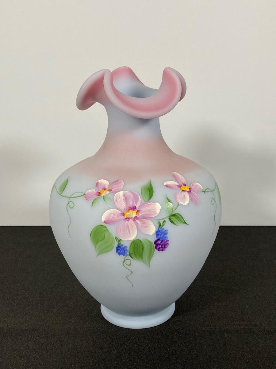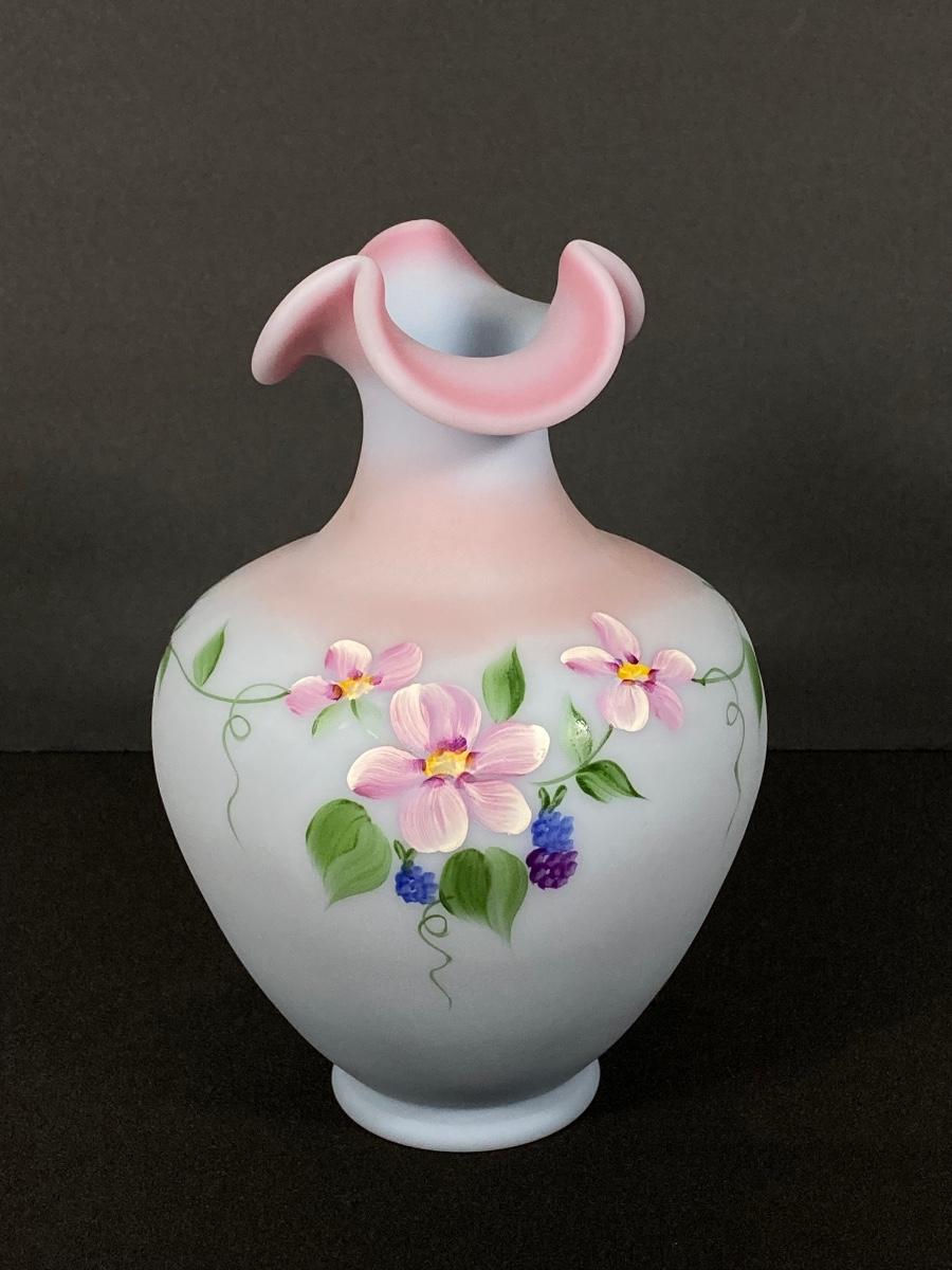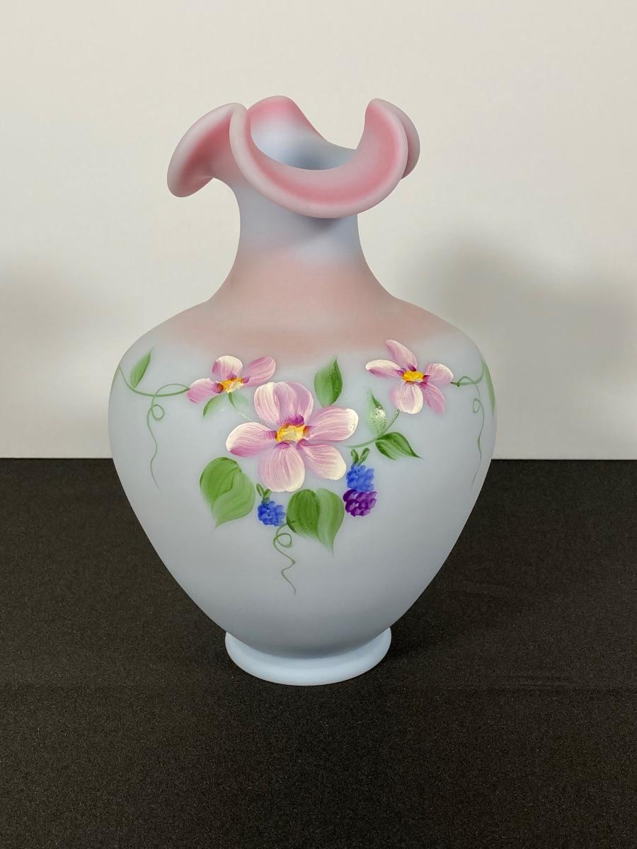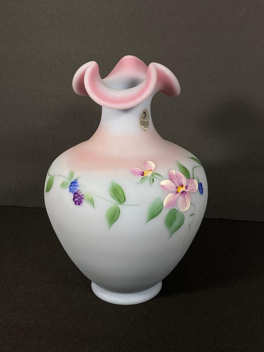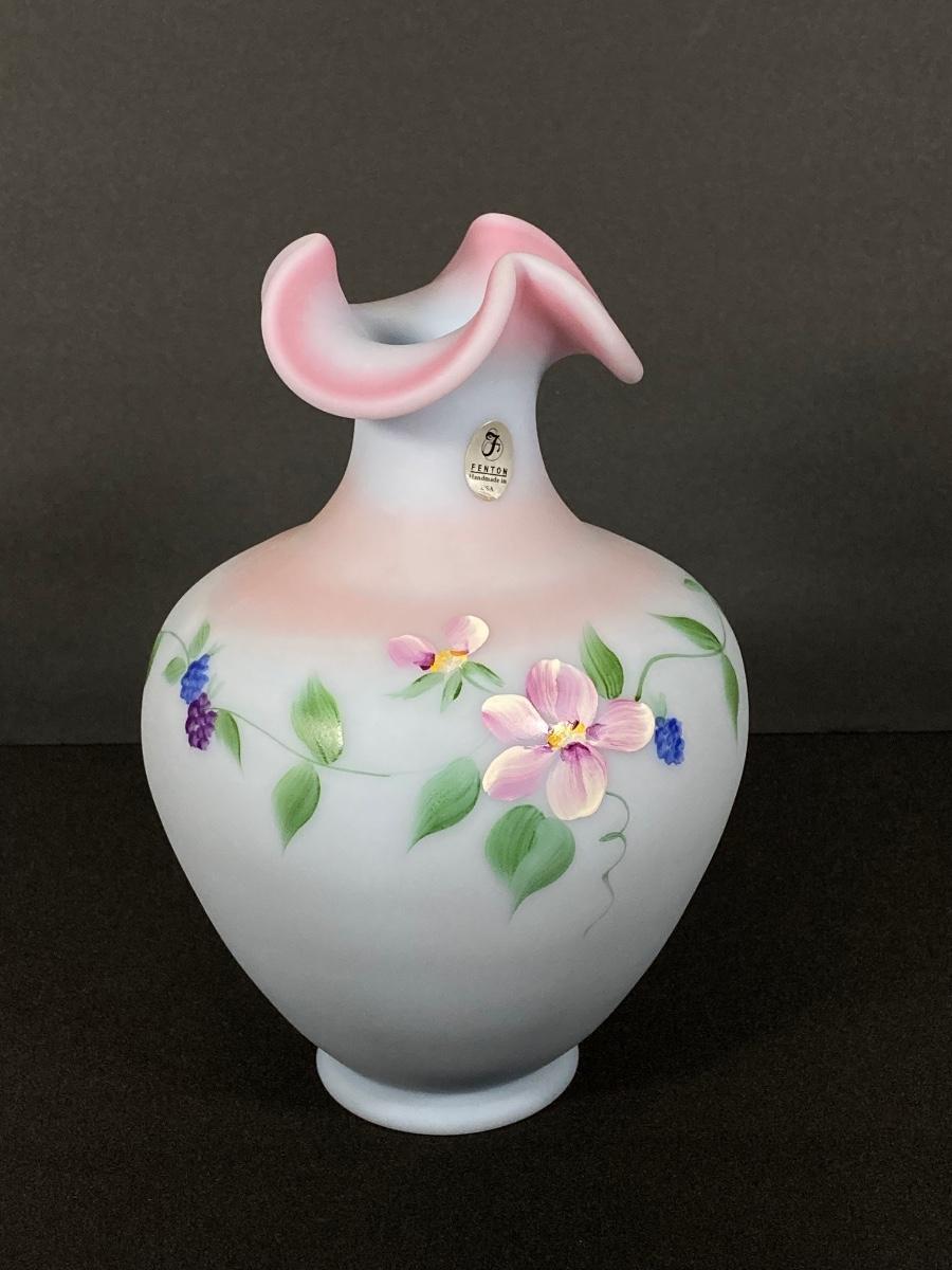 LOT 15J: Fenton Frosted Ruffled Top Vase
