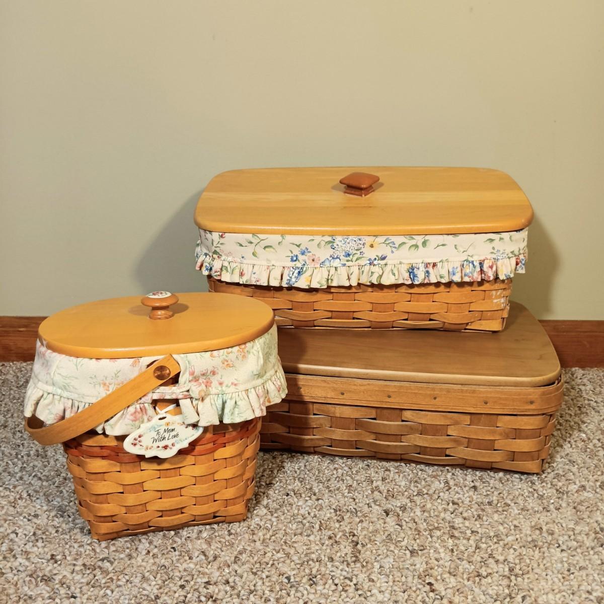 LOT 37K: Longaberger Mother's Day Basket with Tapered Floral and Letter Baskets