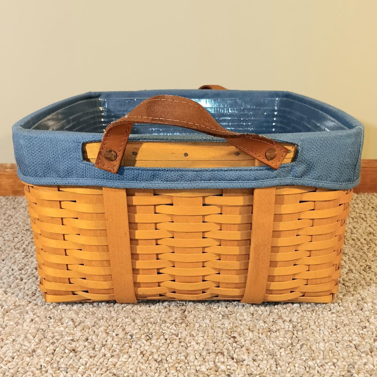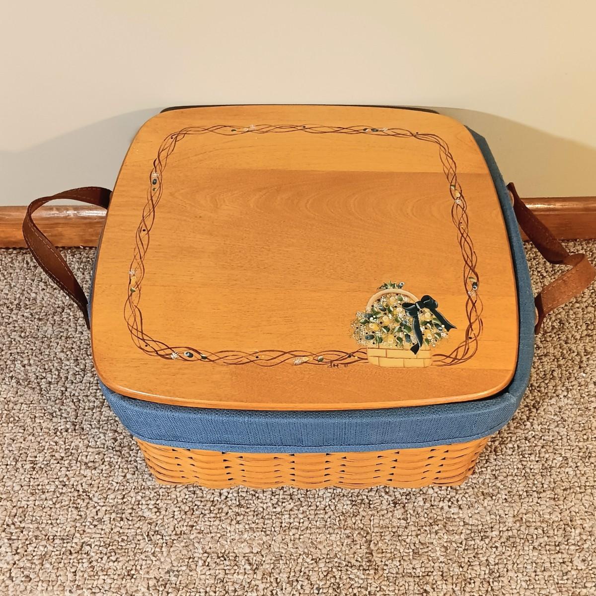 LOT 38K: Longaberger Blanket Basket with Painted Lid & More