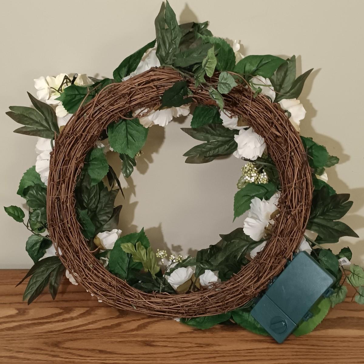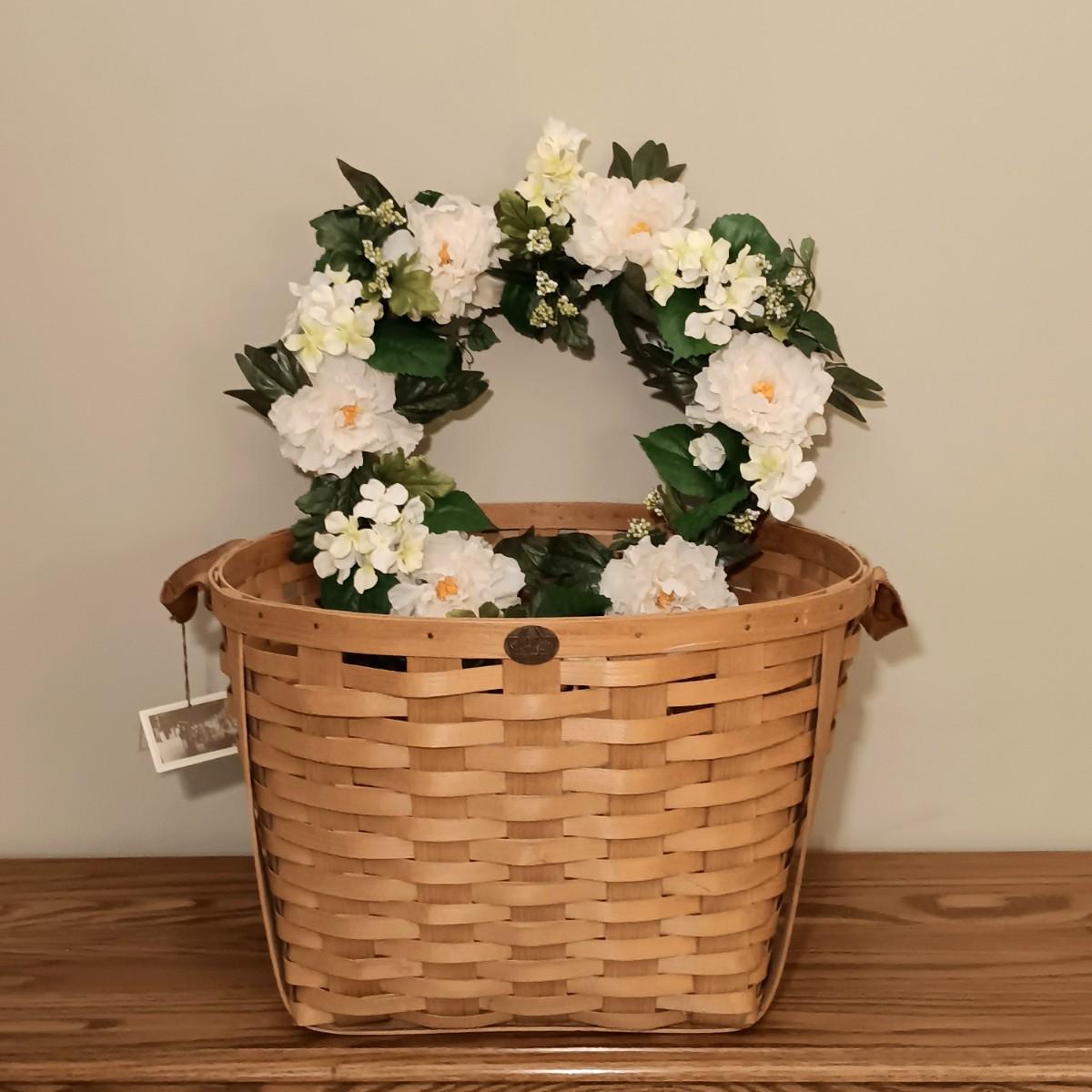 LOT 47K: Large Peterboro Storage Basket and Light-Up Wreath