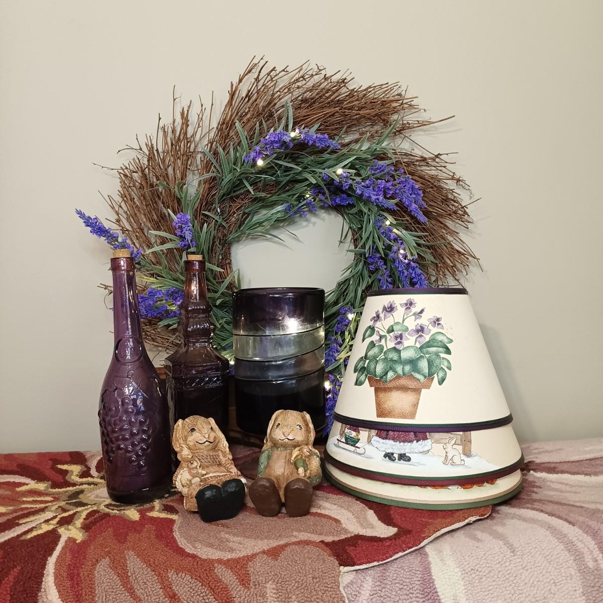 LOT 52K: Set of 2 Royal Palace Flower Rugs, Light-Up Wreath, Decorative Bottles & More