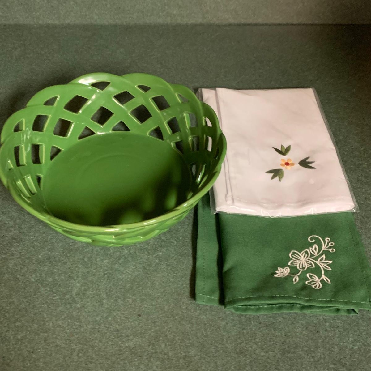 LOT 65R: Temp-tations: Cookie Jar, Lattice Bread Bowl, NIP Collapsible Shopping Bags, & More