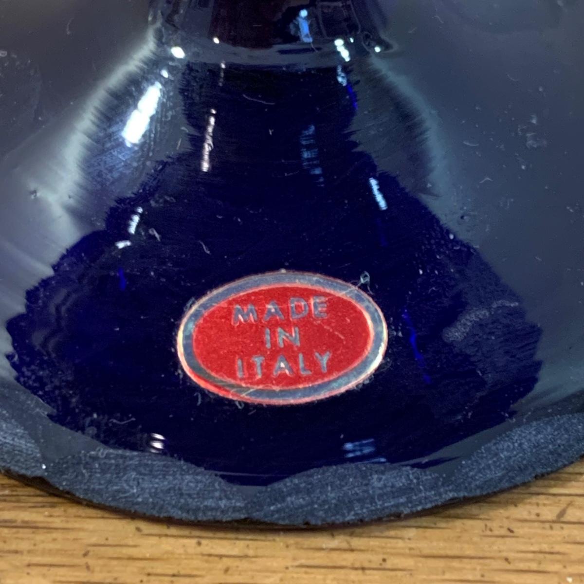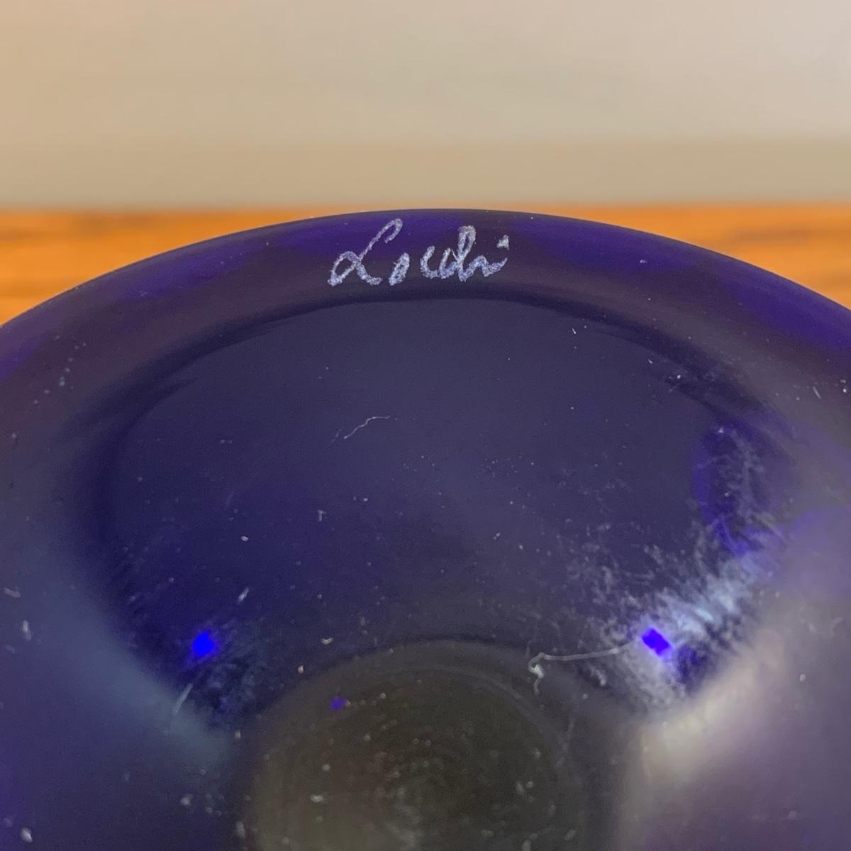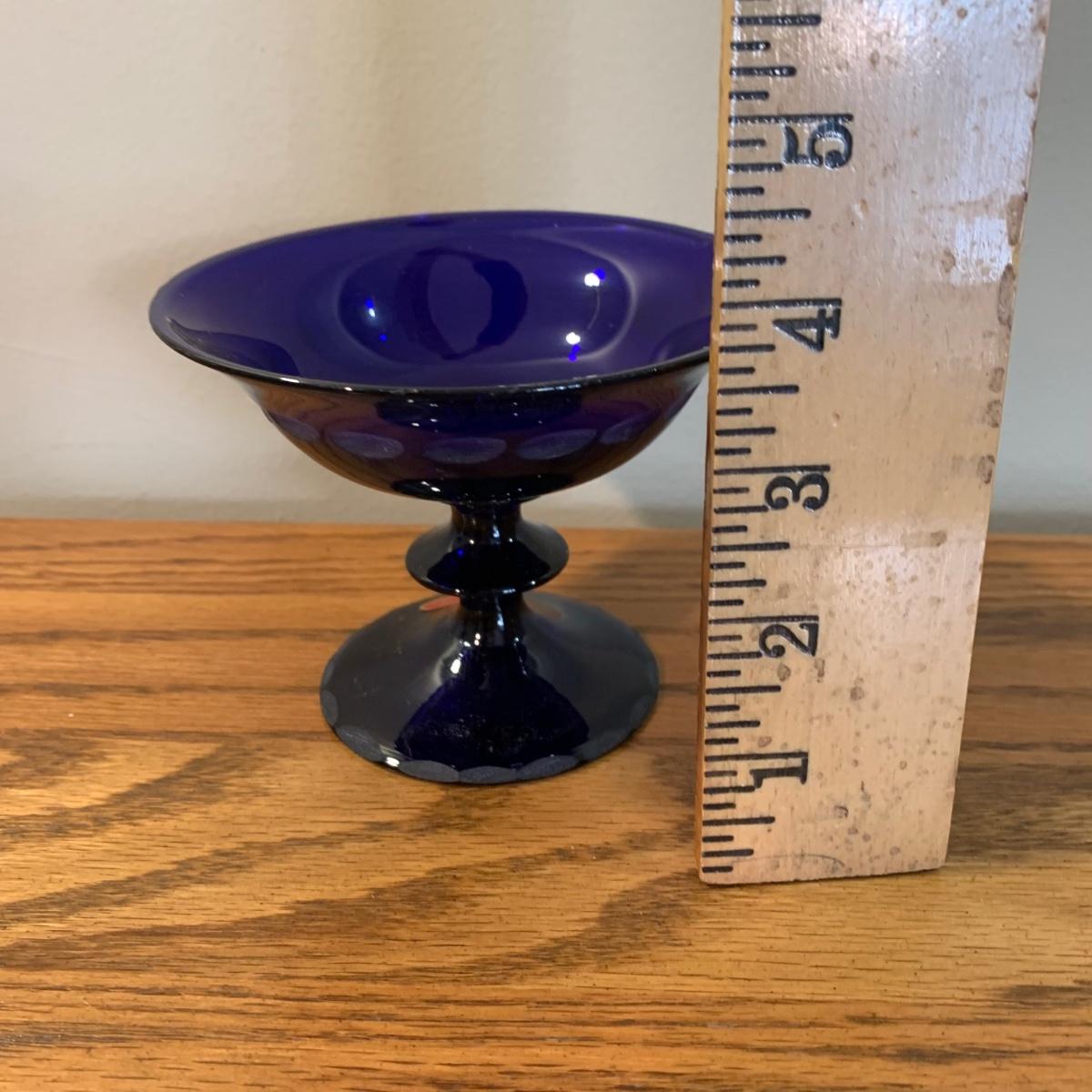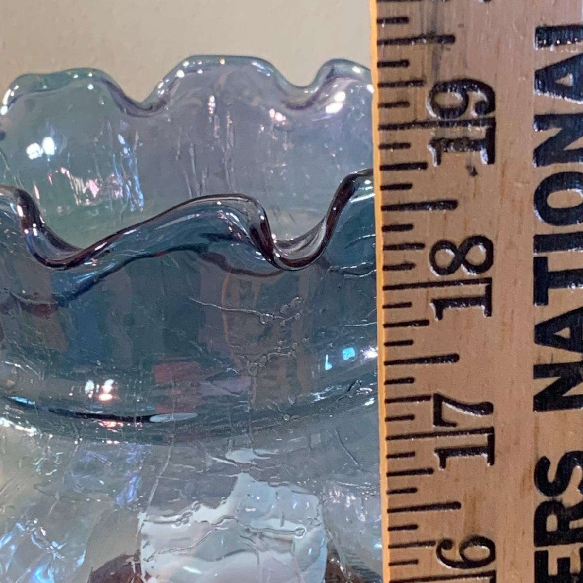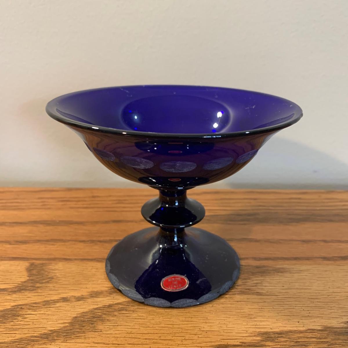 LOT 72R: Vintage Lamp w/Blue Crackle Glass Shade, Signed Cobalt Blue Compote Dish, Handcrafted Stained Glass Shelf