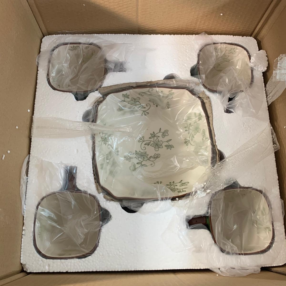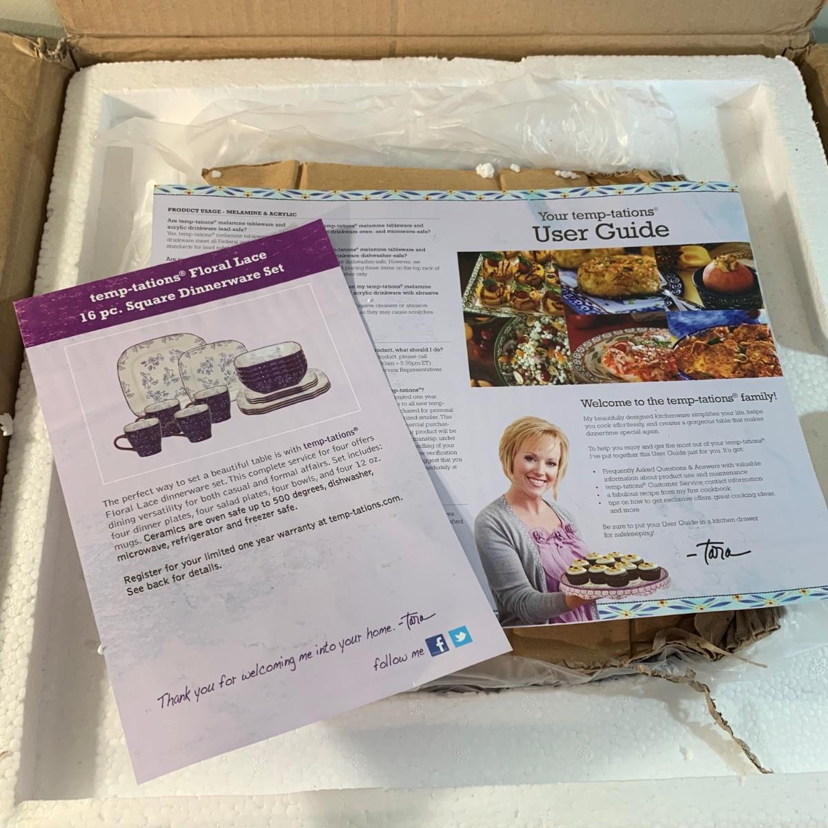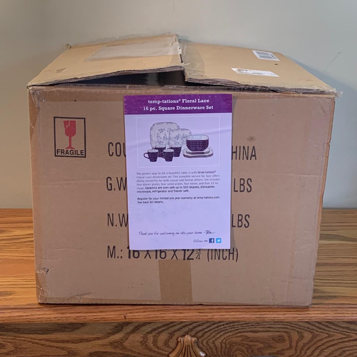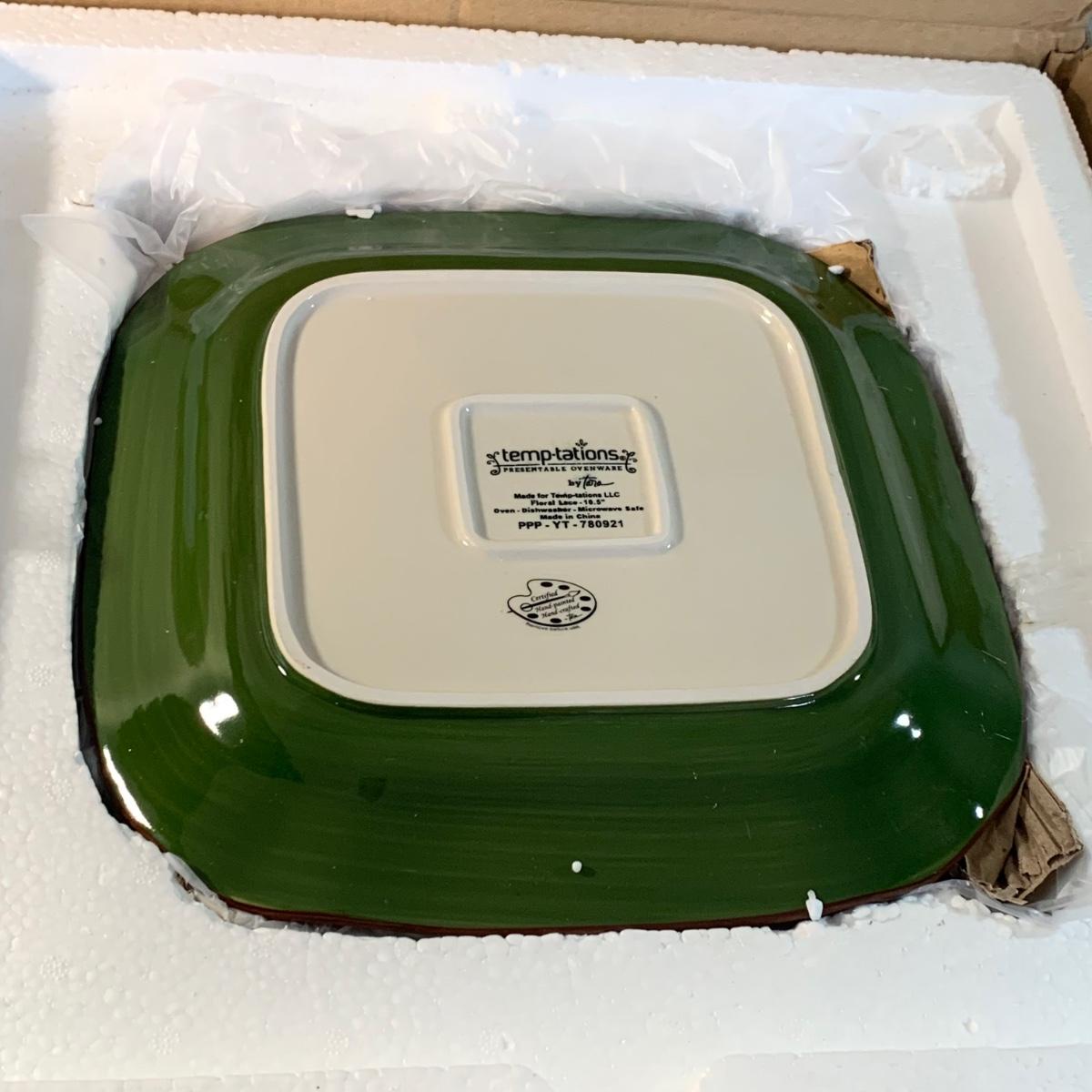 LOT 73R: New in Box Temp-tations Green Floral Lace 16pc. Square Dinnerware Set