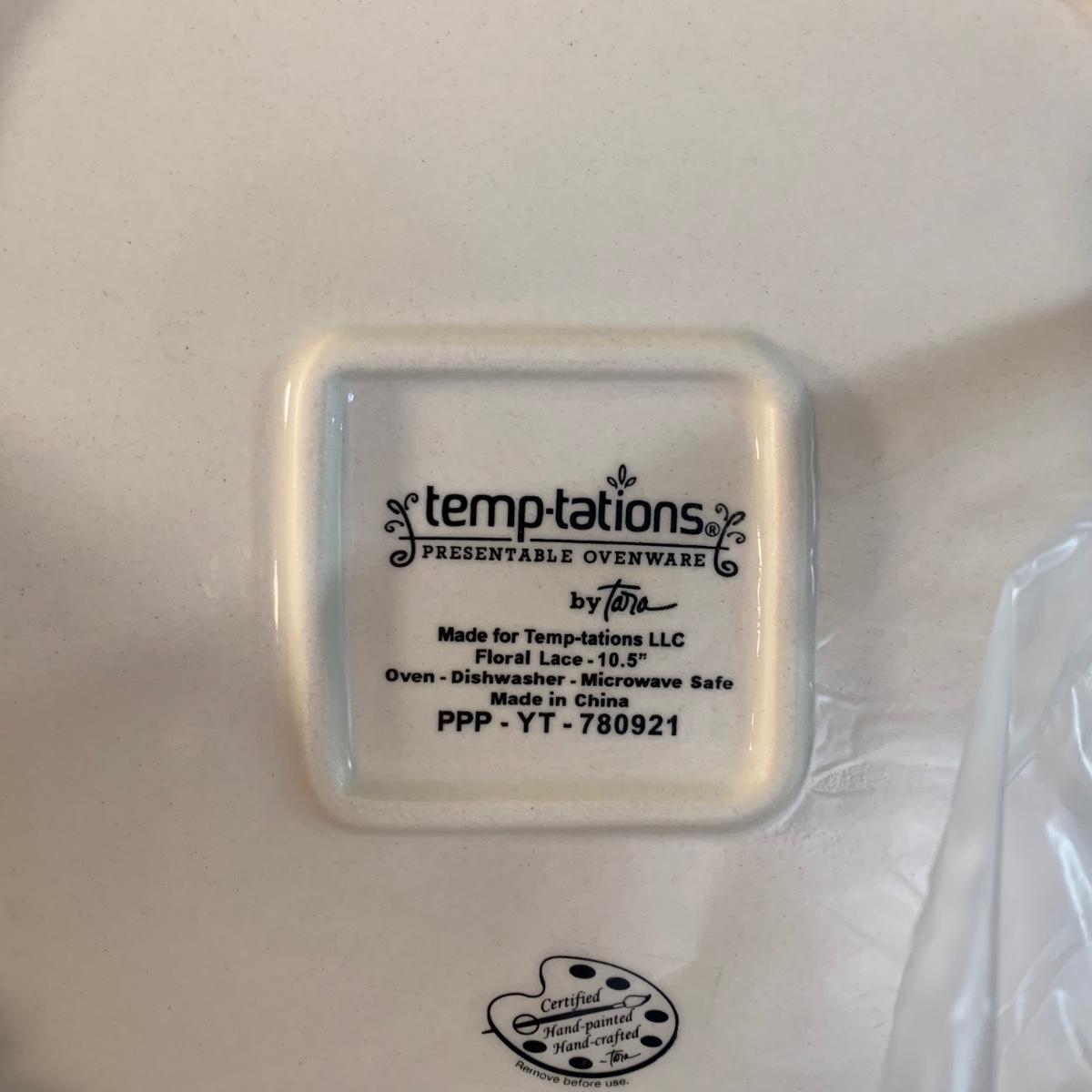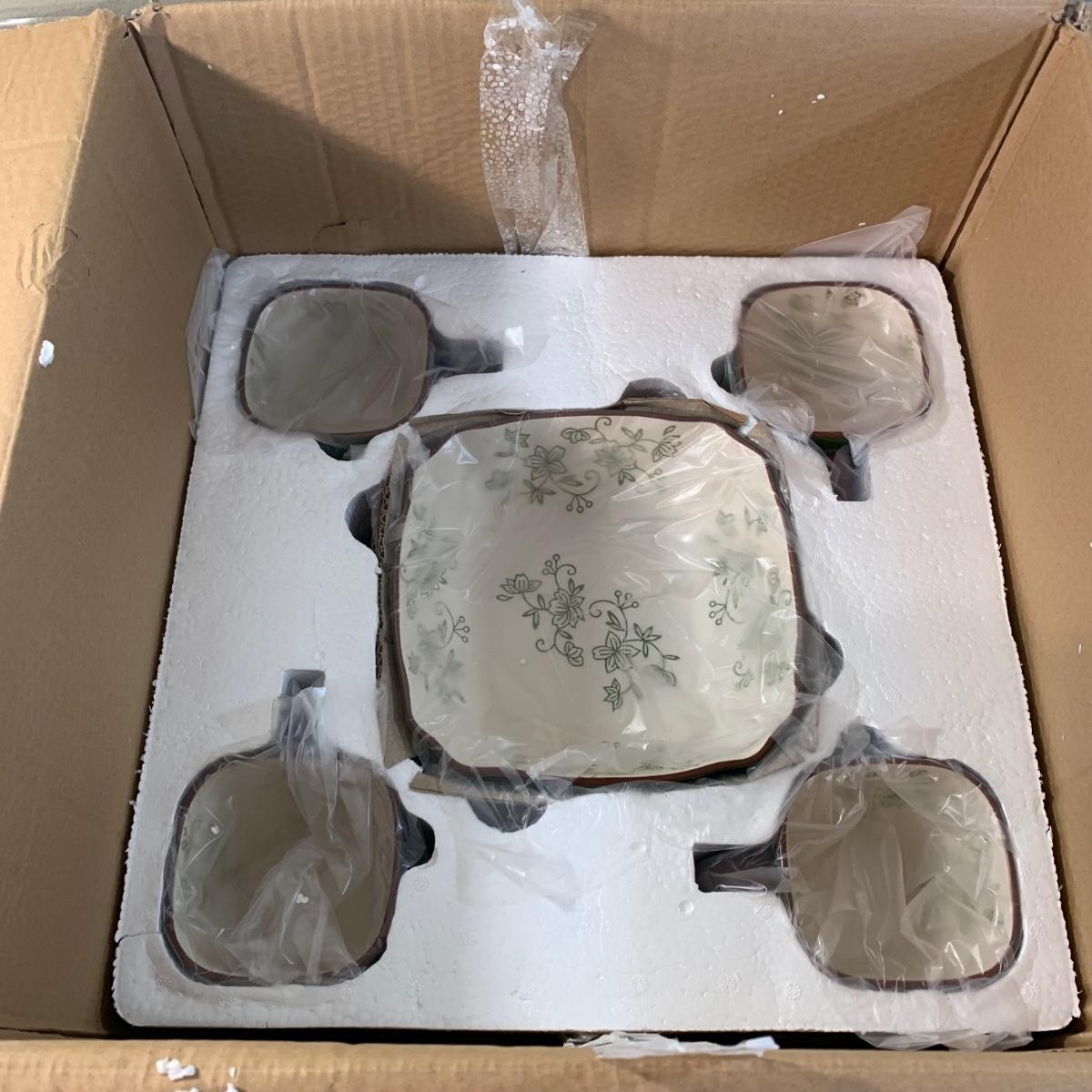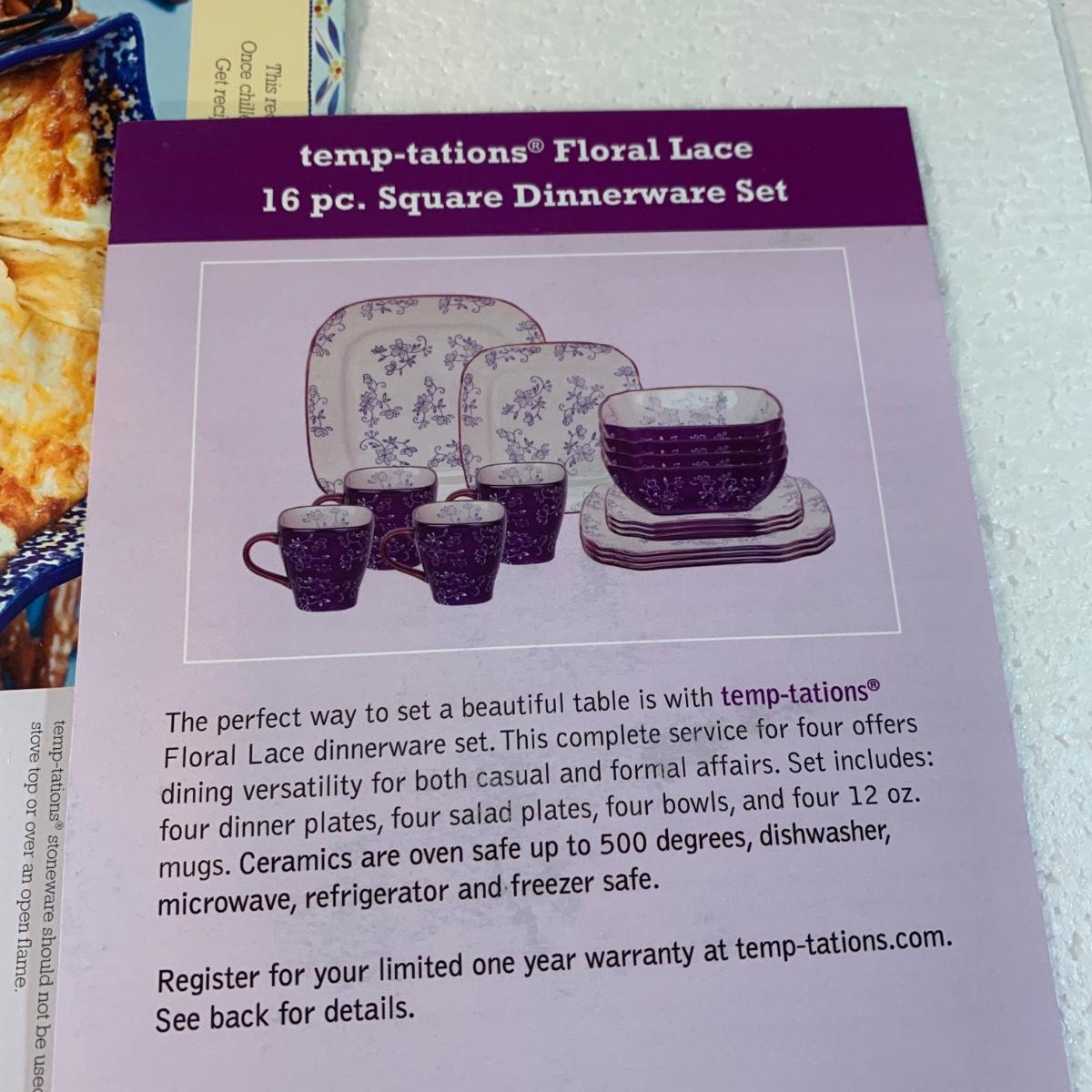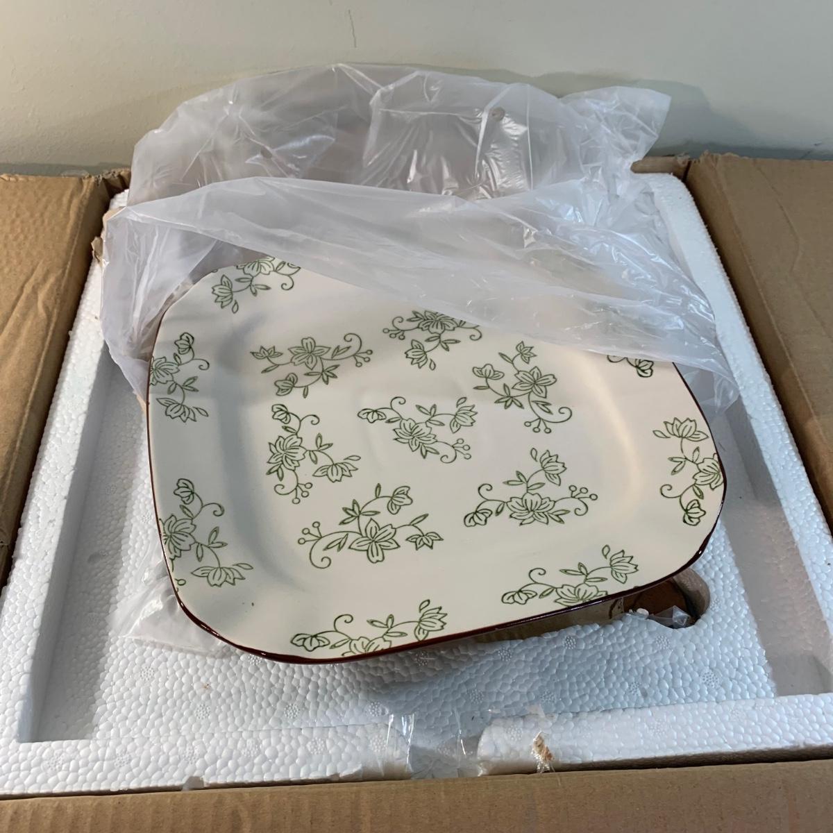LOT 74R: New in Box Temp-tations Green Floral Lace 16pc. Square Dinnerware Set