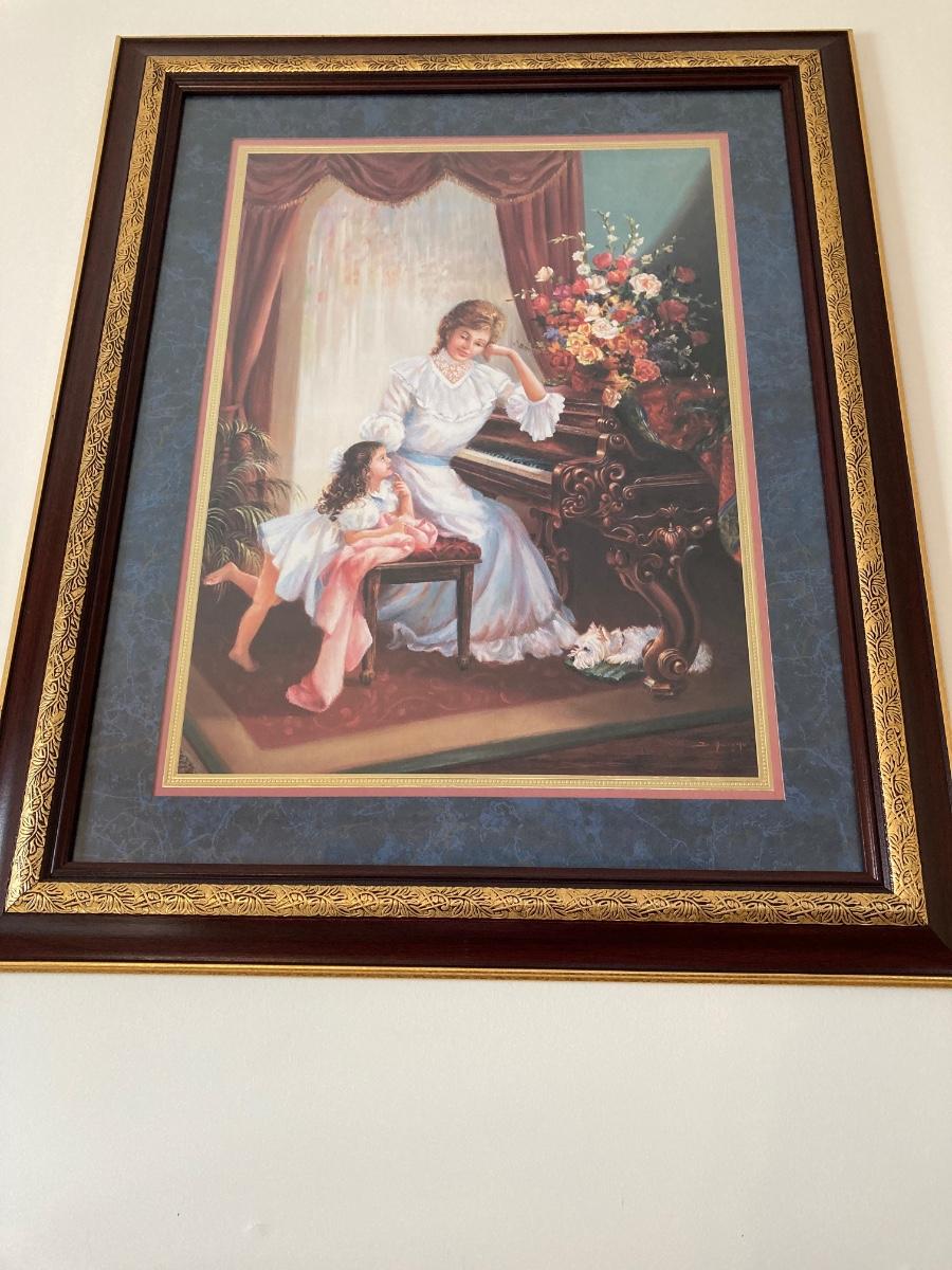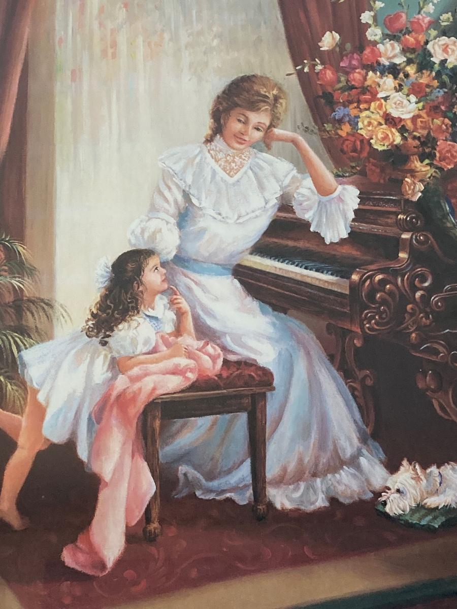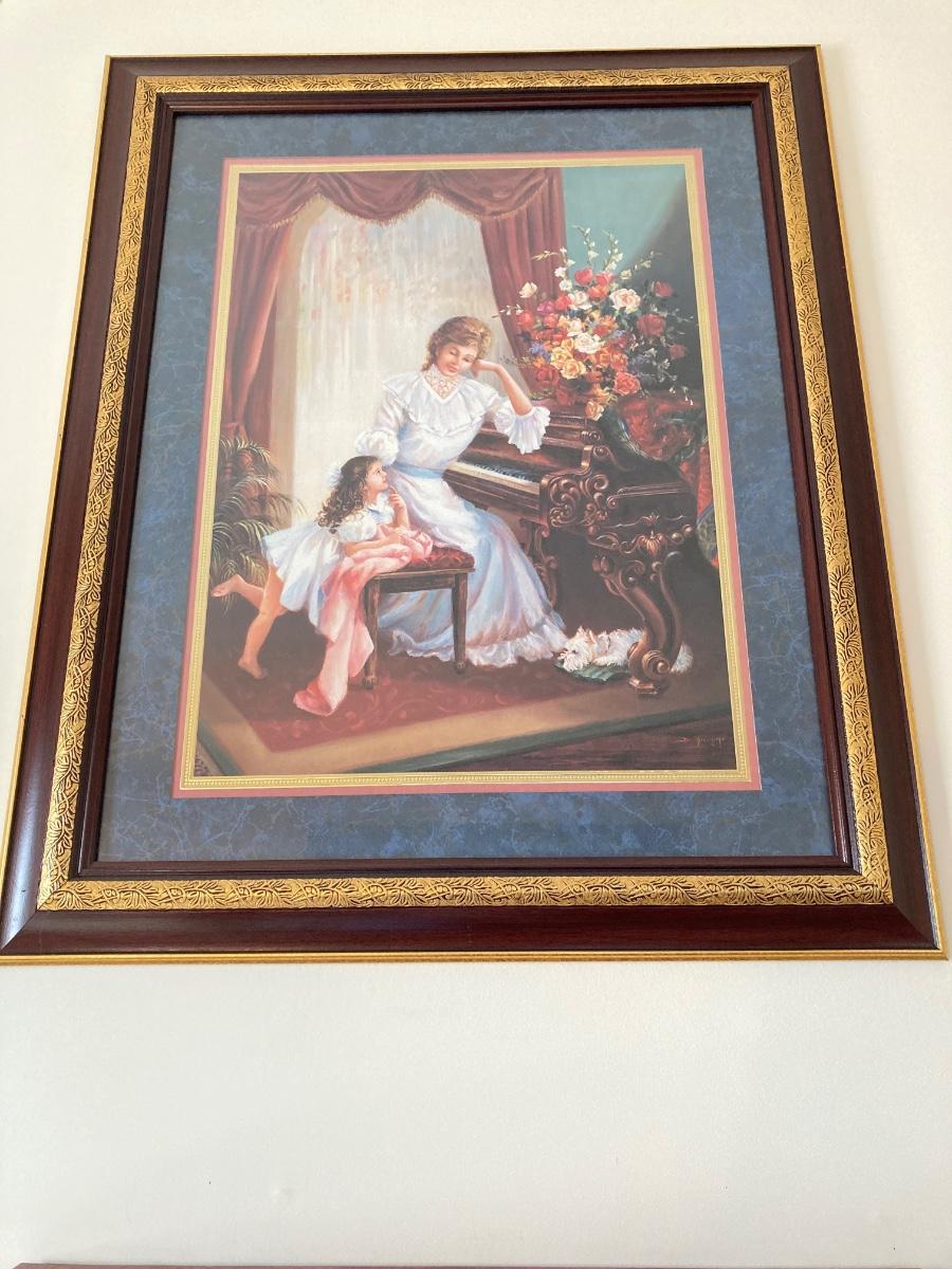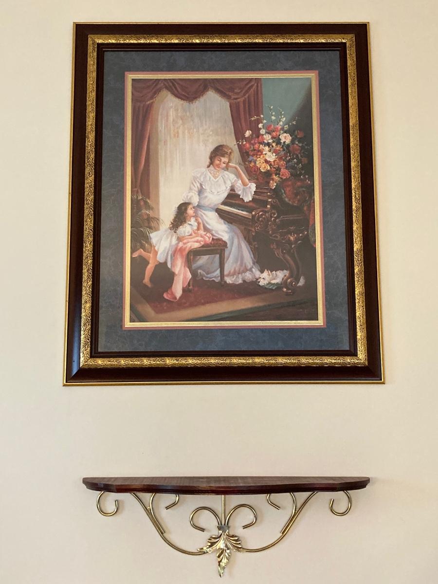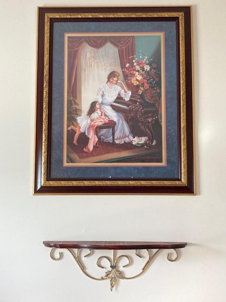 LOT 85J: Home Interiors Victorian Piano Picture - "May I Play" with Decorative Shelf