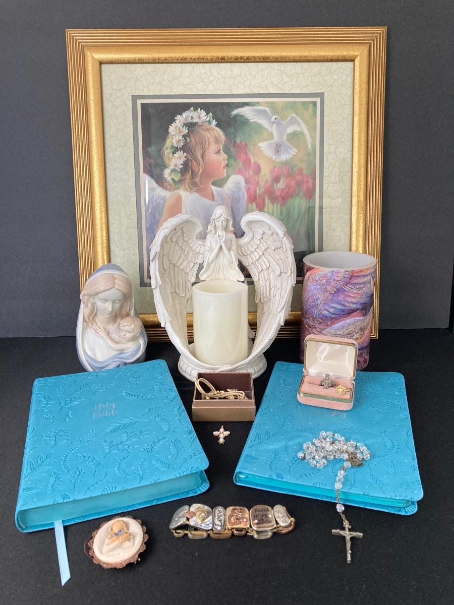 LOT 91J: Religious Collection - Home Interiors Wall Hanging, Candles, Jewelry and More