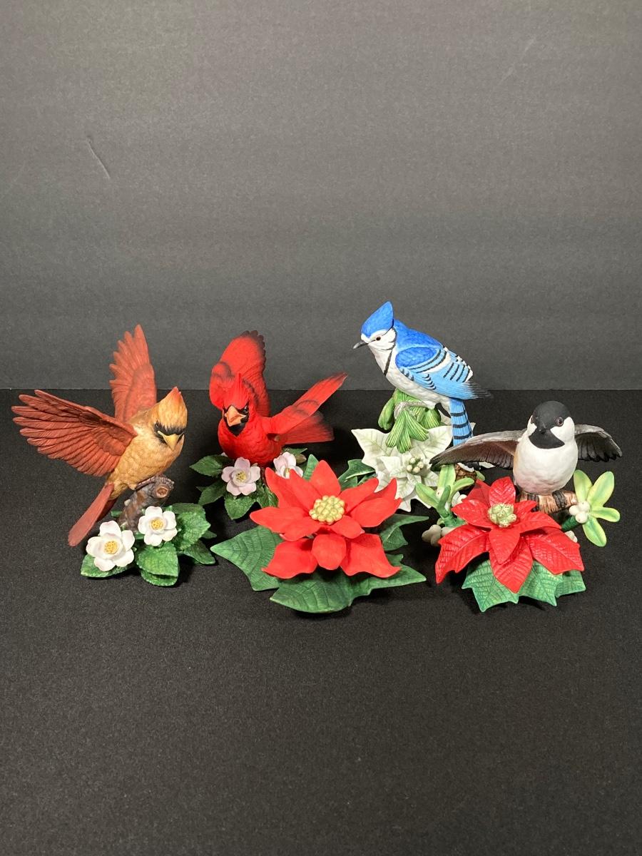 LOT 92J: Lenox Porcelain Bird Figurines and Flowers - Holiday Theme