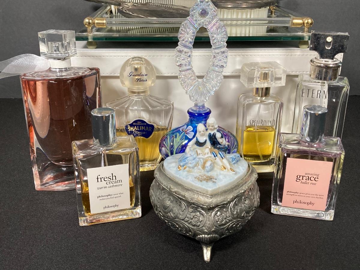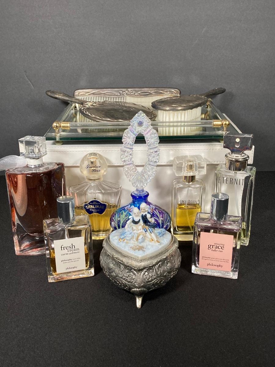 LOT 98J: Ladies Collection - Beautiful Glass Perfume Decanter, Shalimar, La Vie Est Belle and More