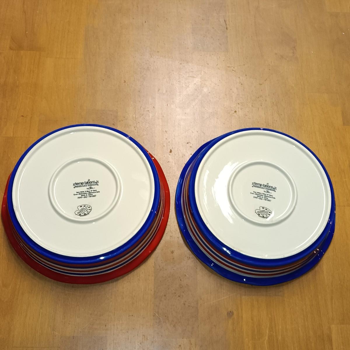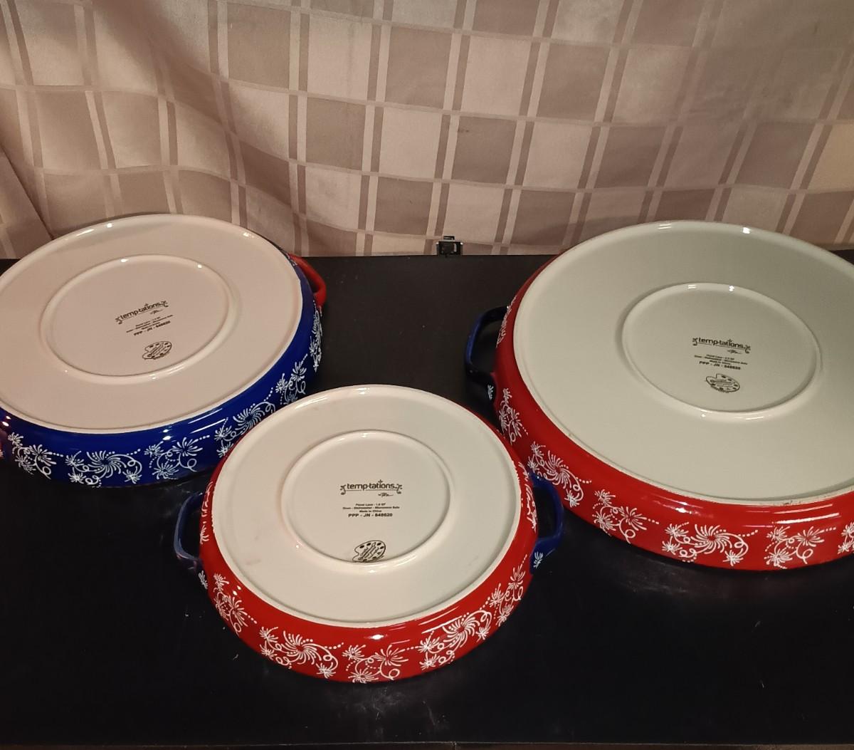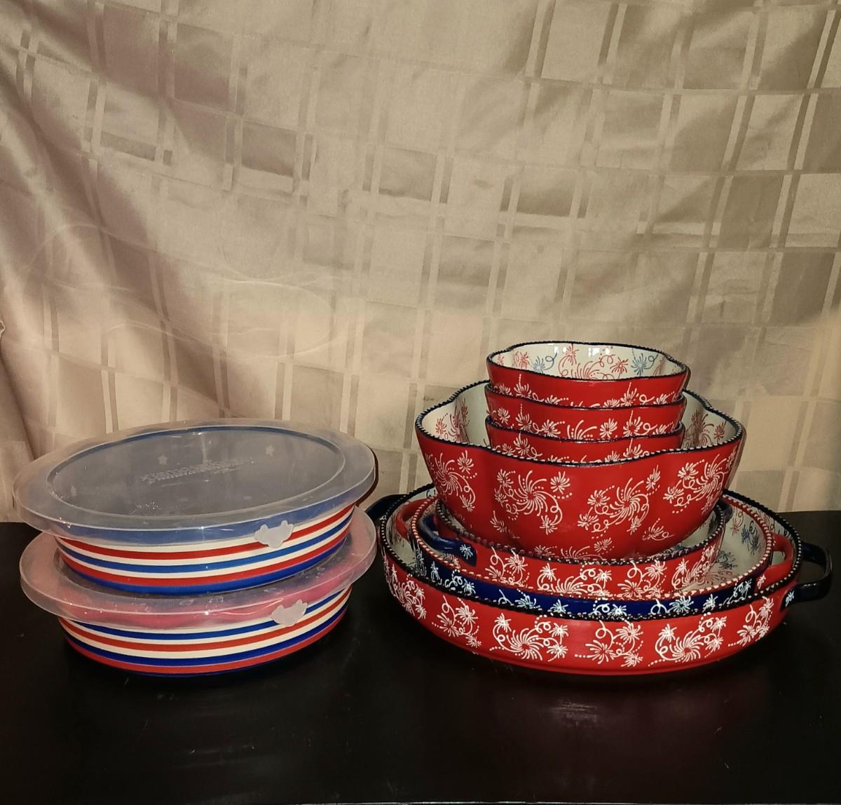 LOT 125K: Temp-Tations "Floral Lace" & "Red White and Blue" Bowls and Pie Dishes