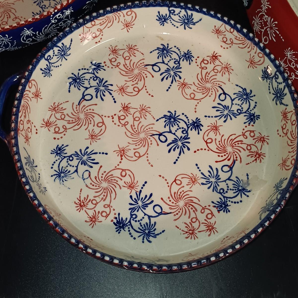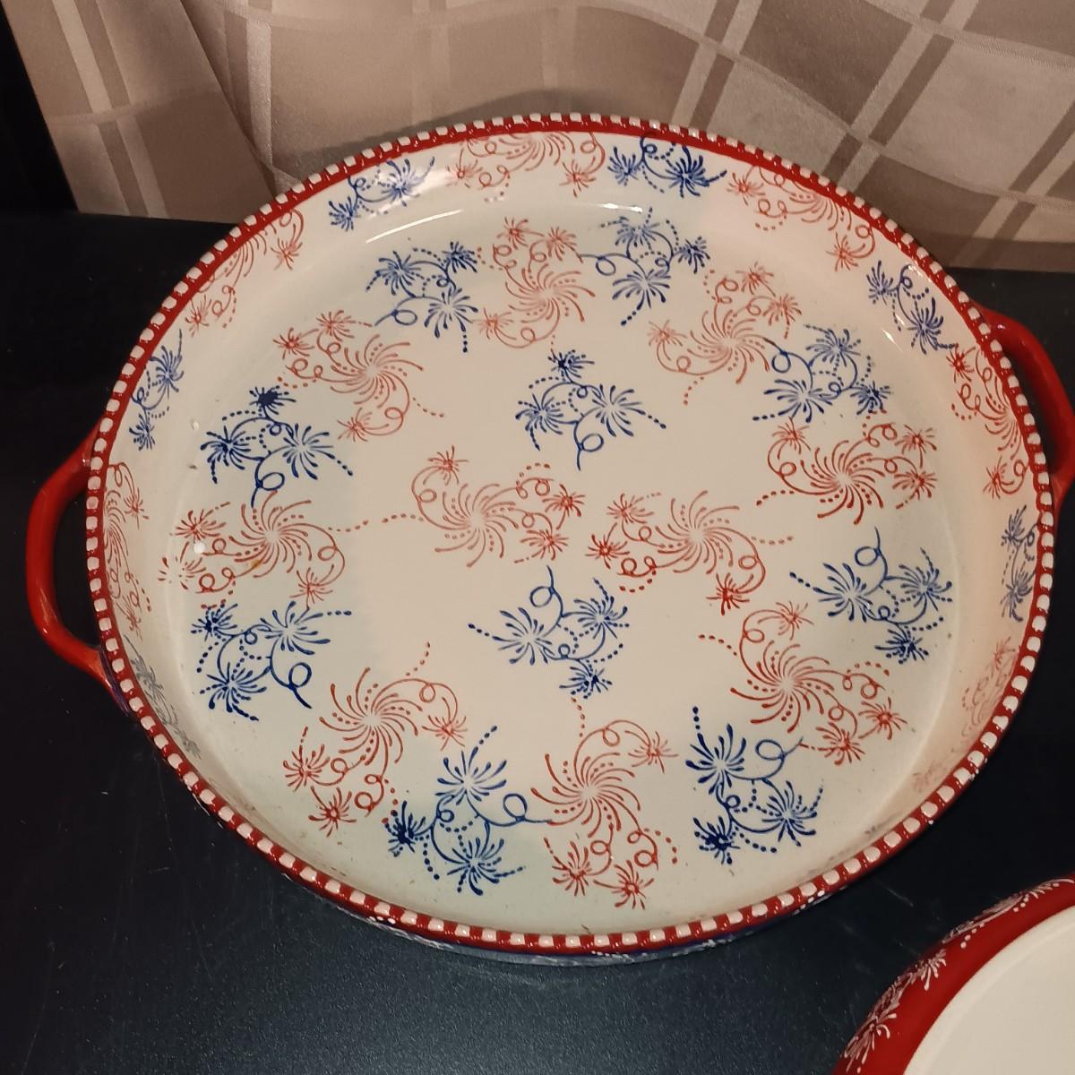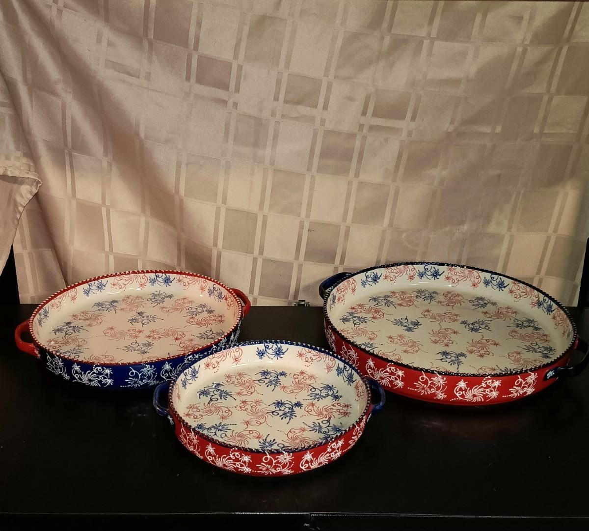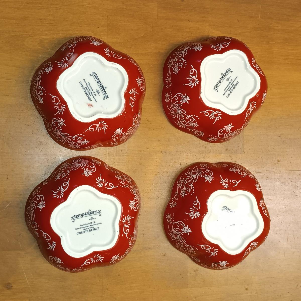 LOT 125K: Temp-Tations "Floral Lace" & "Red White and Blue" Bowls and Pie Dishes