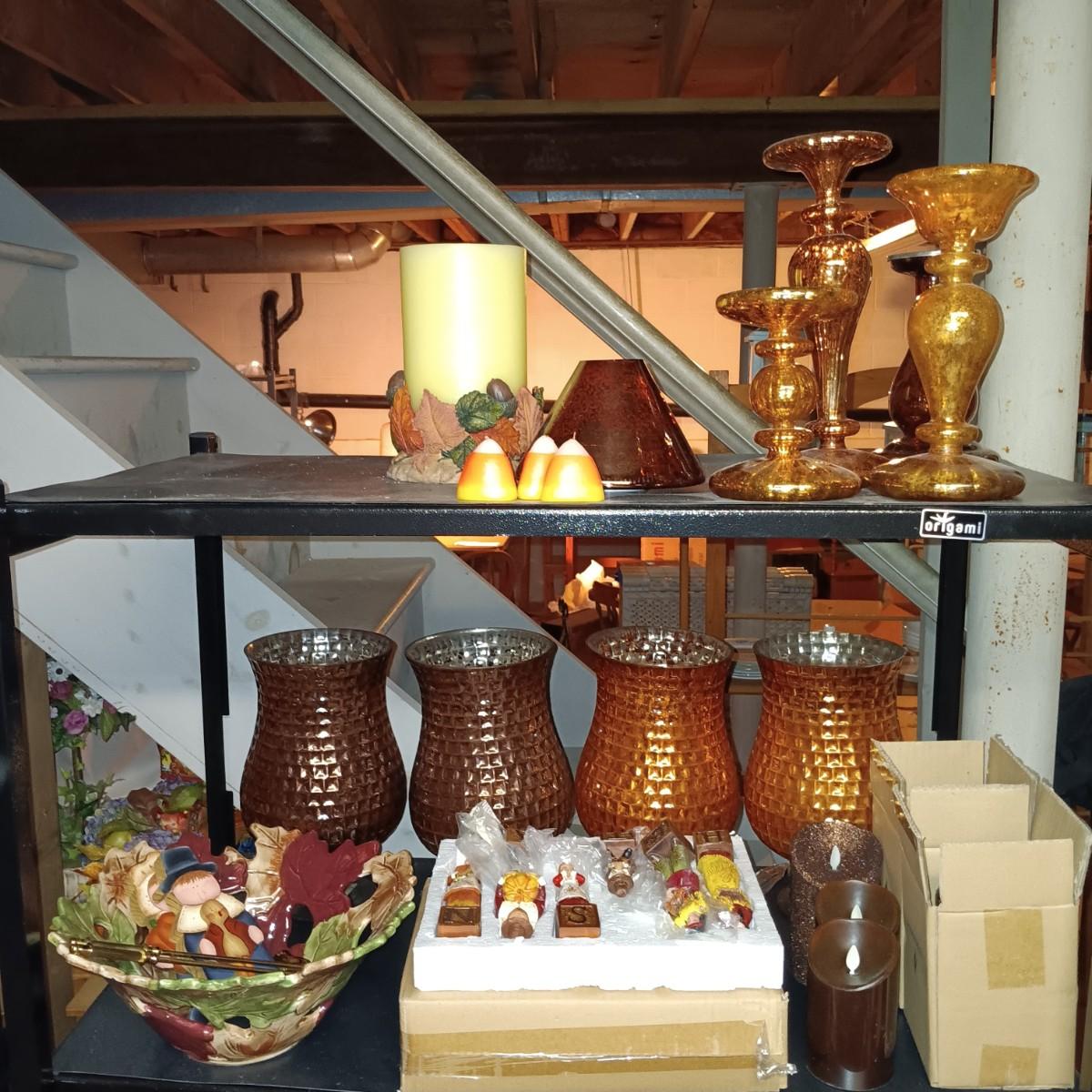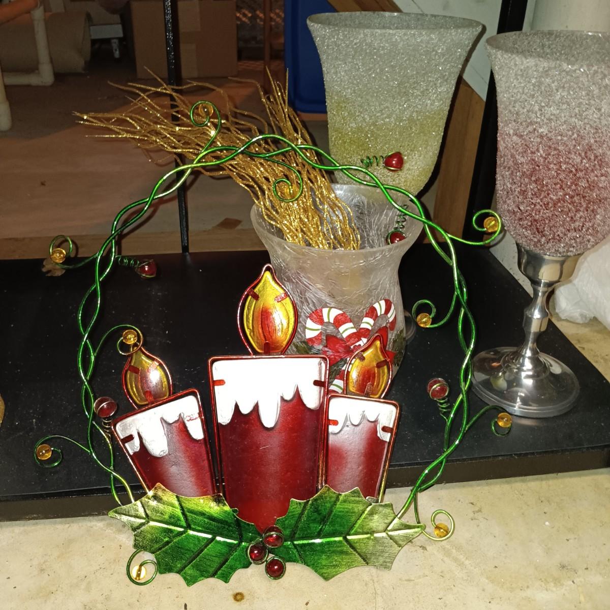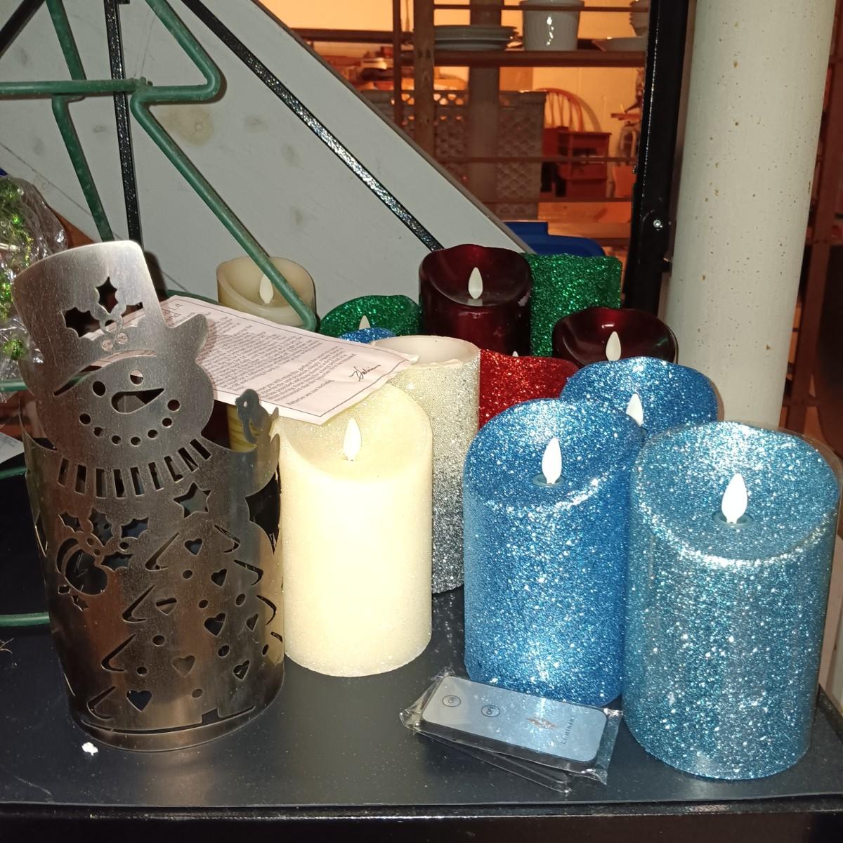 LOT 130K: Holiday Collection- Mercury Glass Pedestals, QVC Gingerbread House, Flameless Candles & More