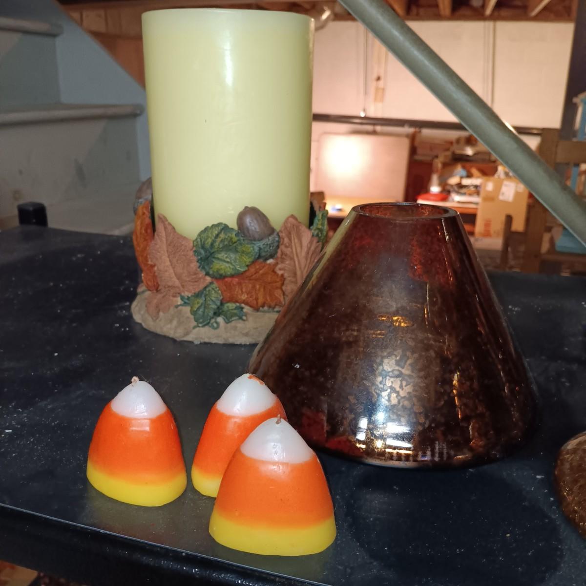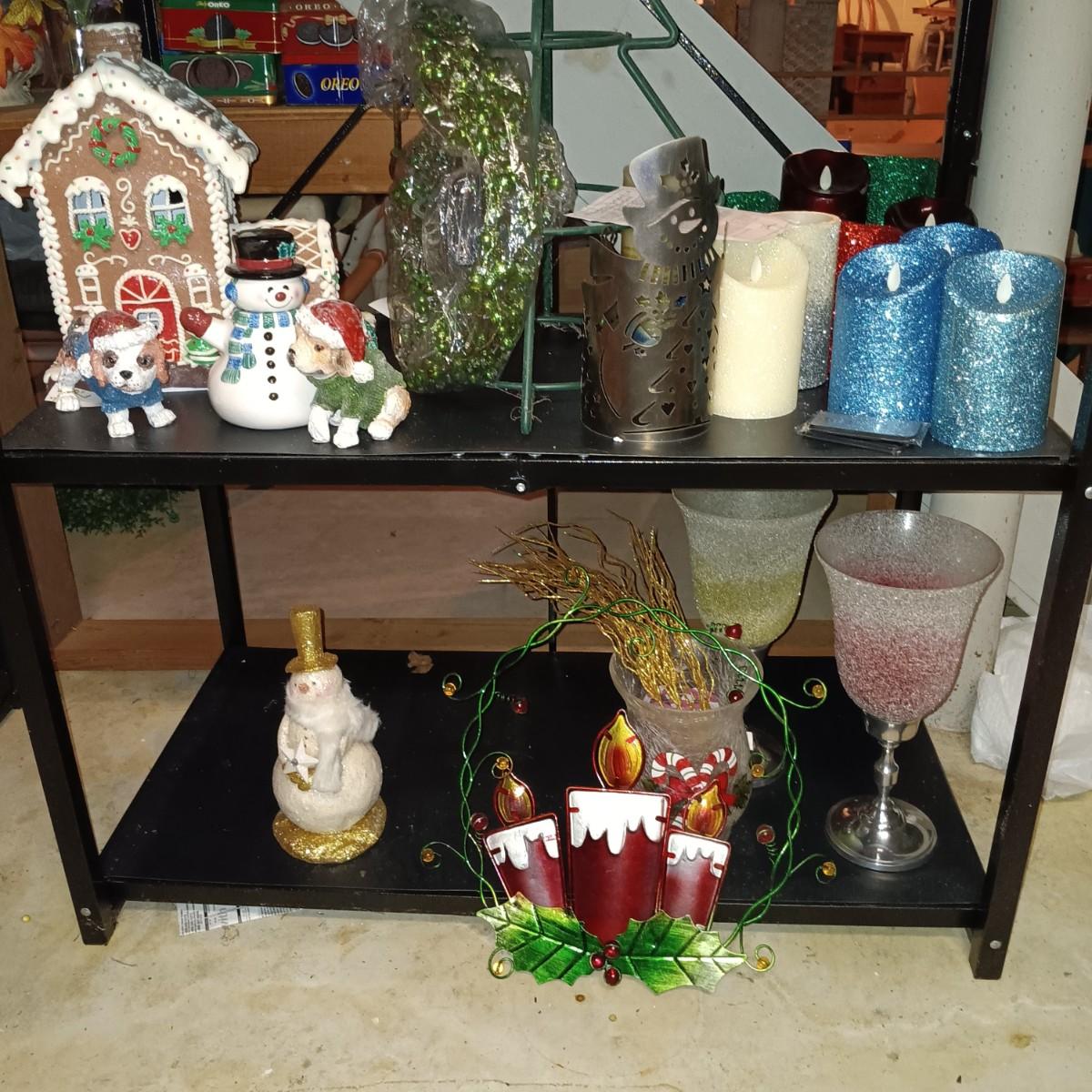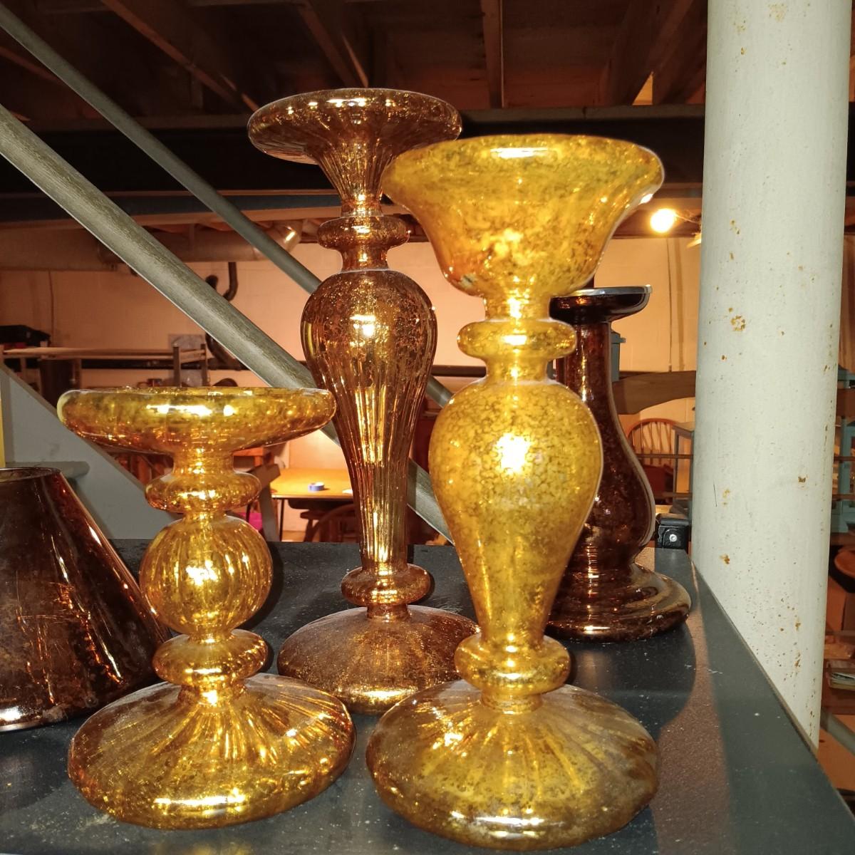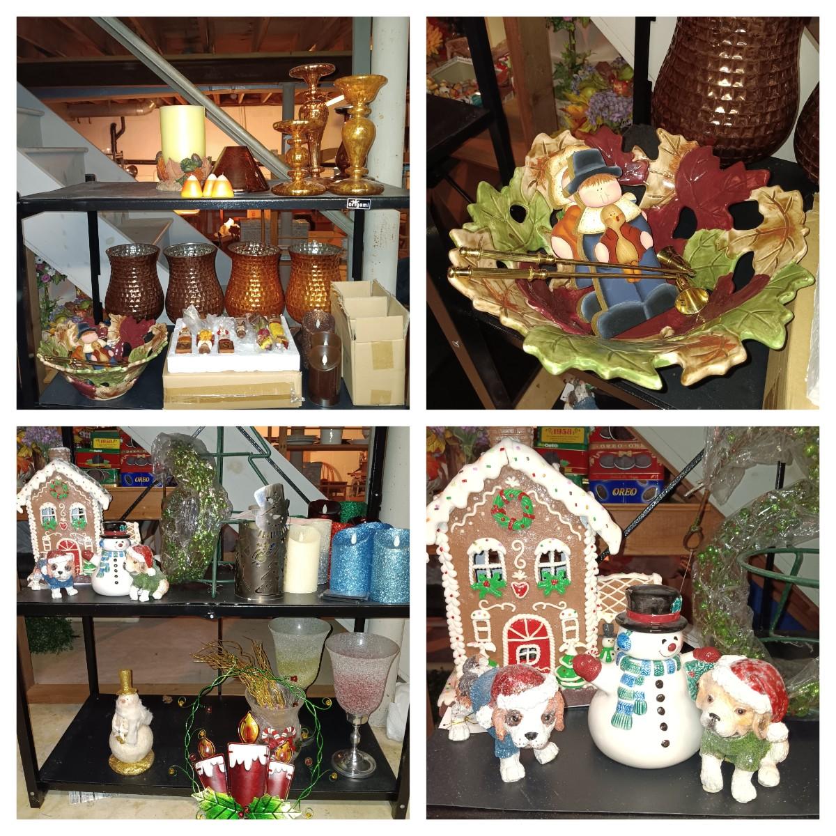 LOT 130K: Holiday Collection- Mercury Glass Pedestals, QVC Gingerbread House, Flameless Candles & More