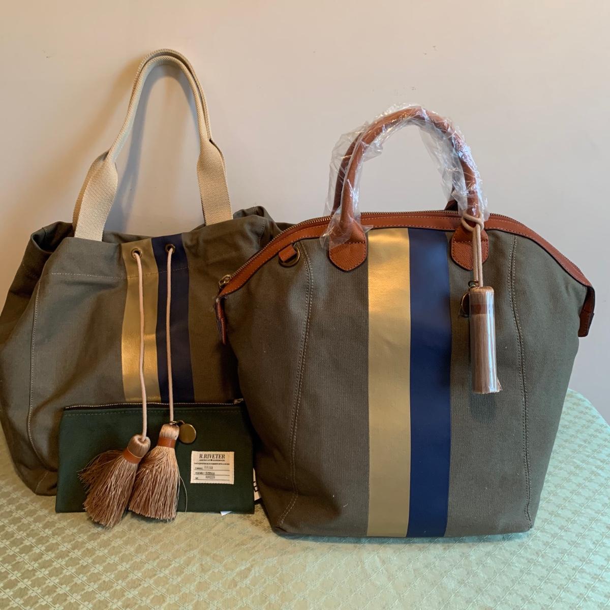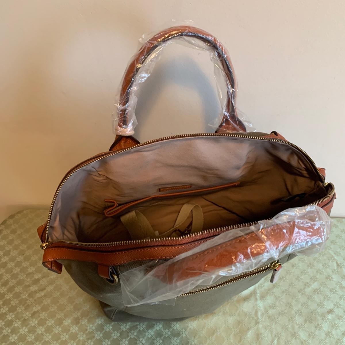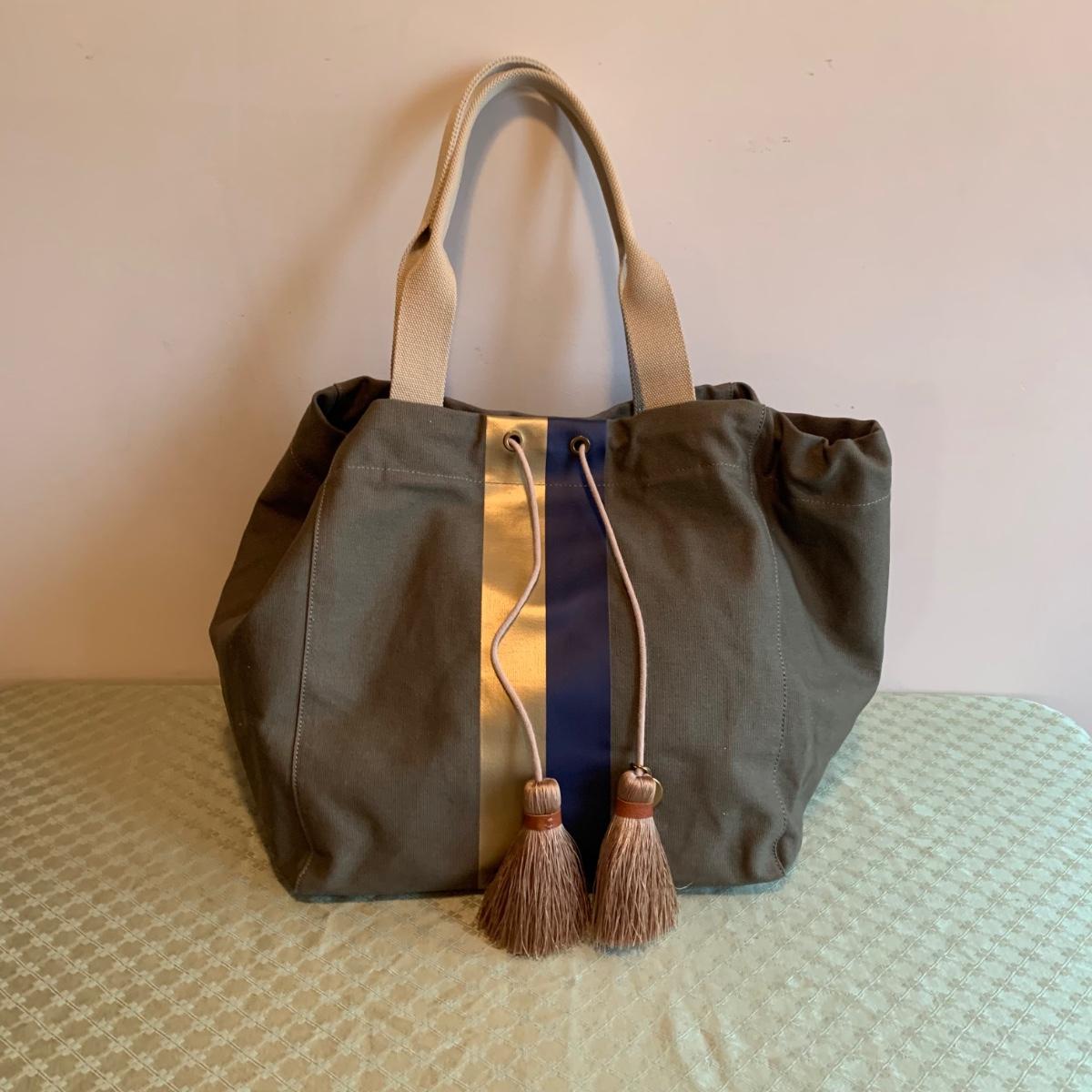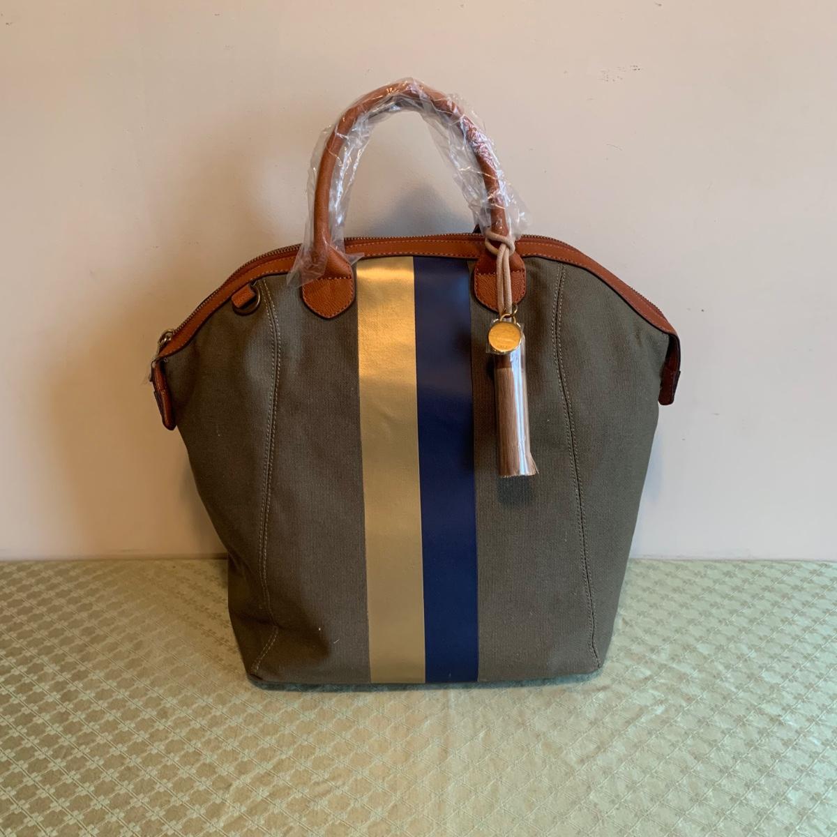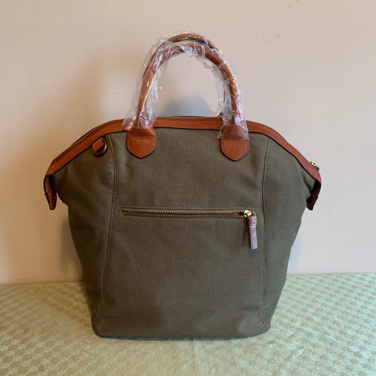 LOT 148R: G.I.L.I. Canvas Tote Bag Green New Tassels Leather Trim Handbag & Tote