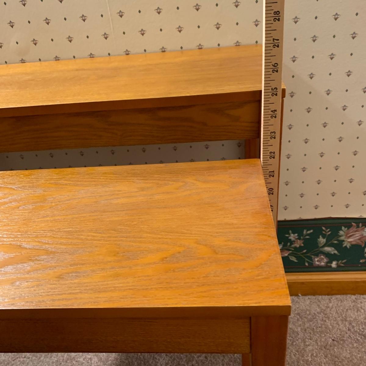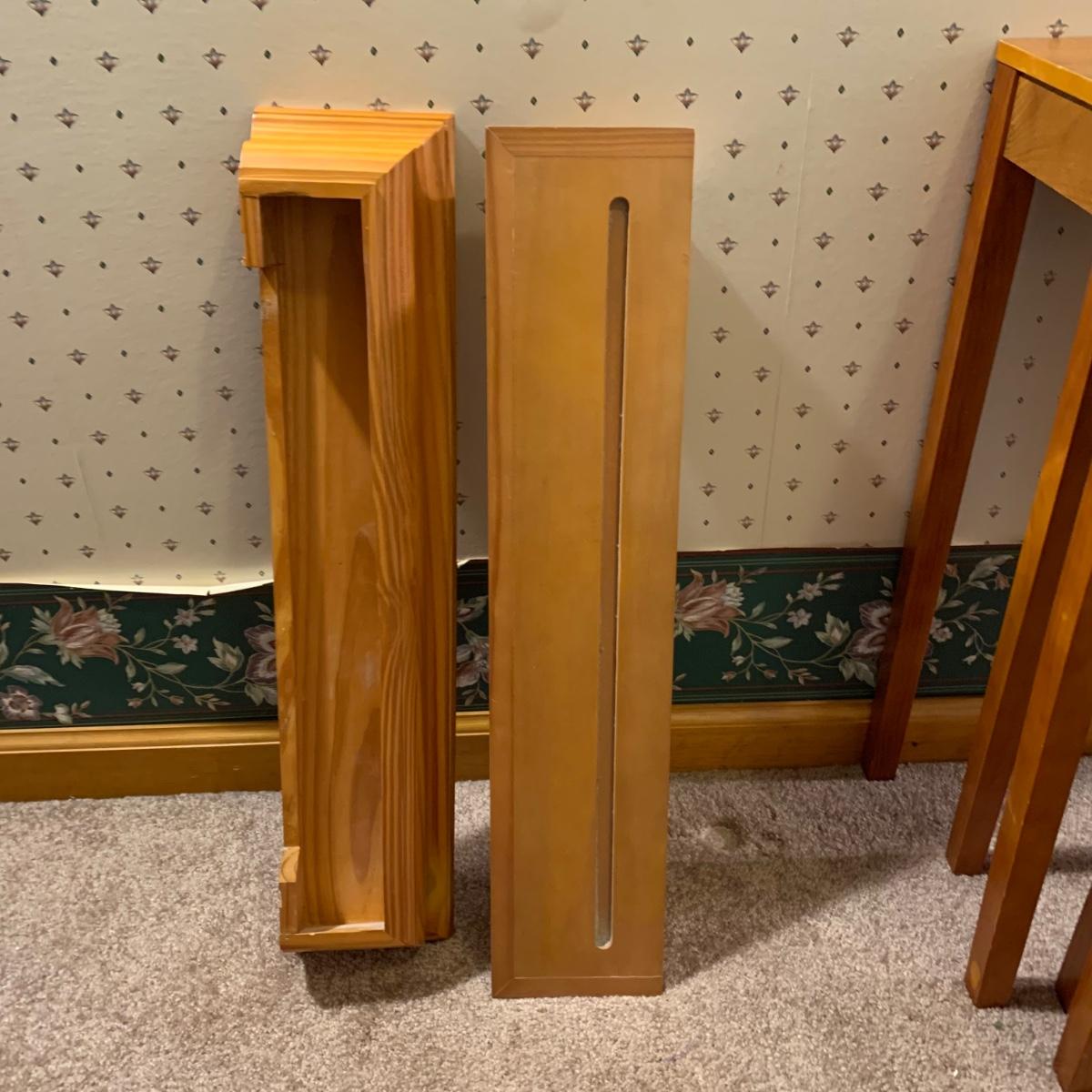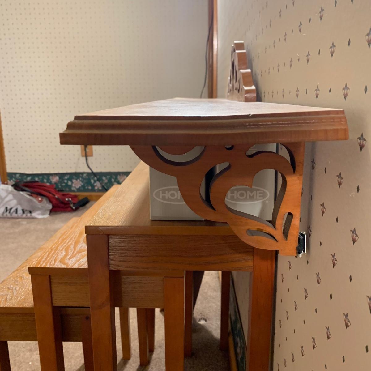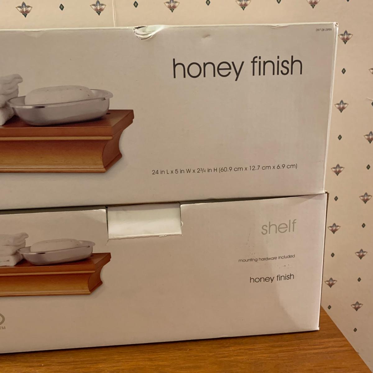 LOT 153R: Nesting Accent Tables, Picking Flowers Print, Cut-Out Shelf & 4 Honey Finish Shelves (2-new in box)