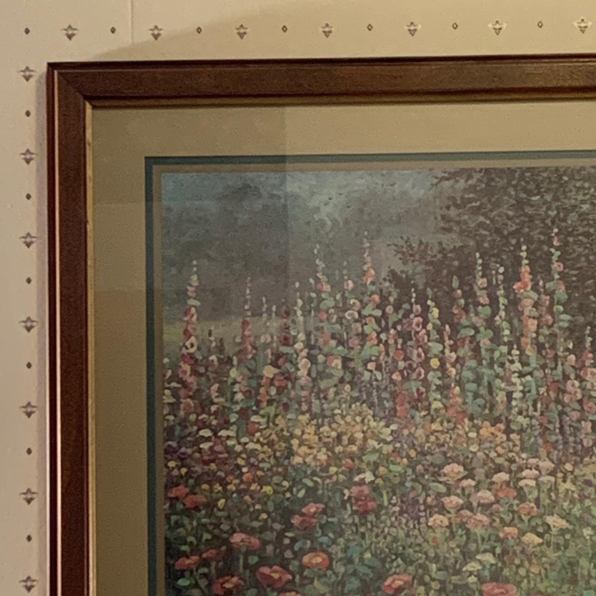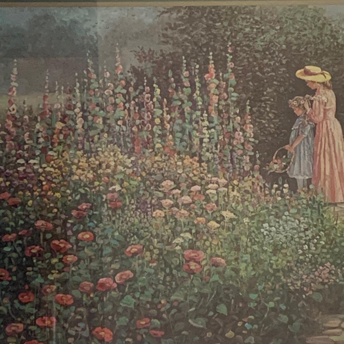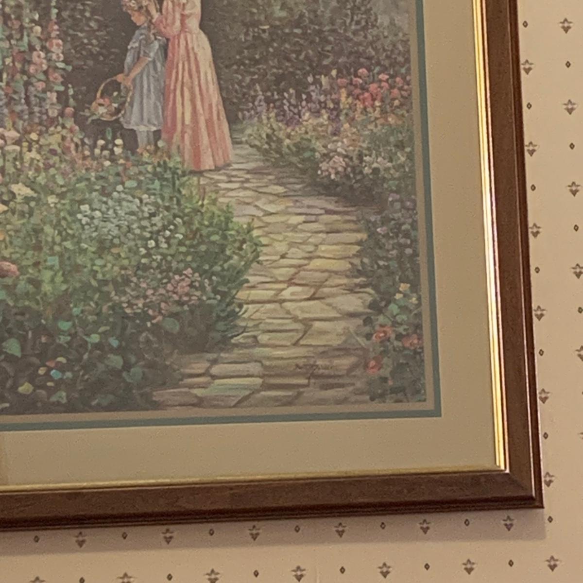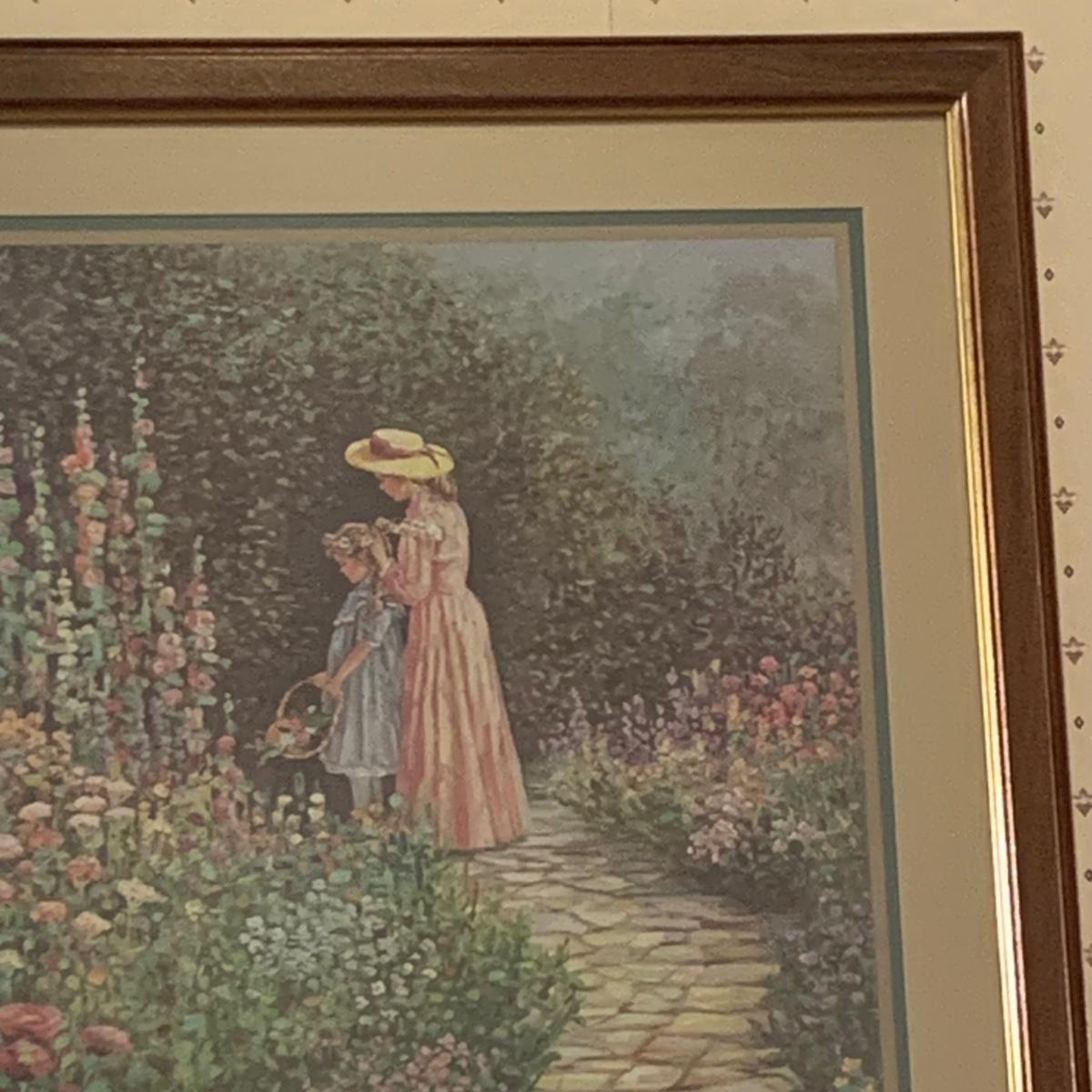 LOT 153R: Nesting Accent Tables, Picking Flowers Print, Cut-Out Shelf & 4 Honey Finish Shelves (2-new in box)