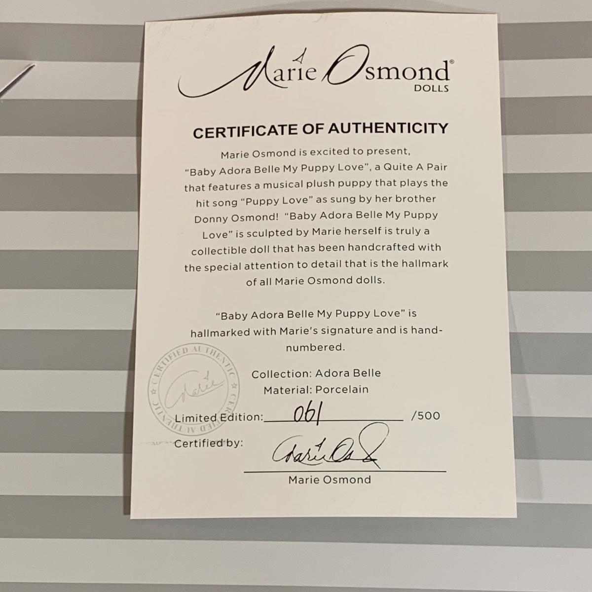 LOT 156R: Marie Osmond: My Puppy Love & My Angel